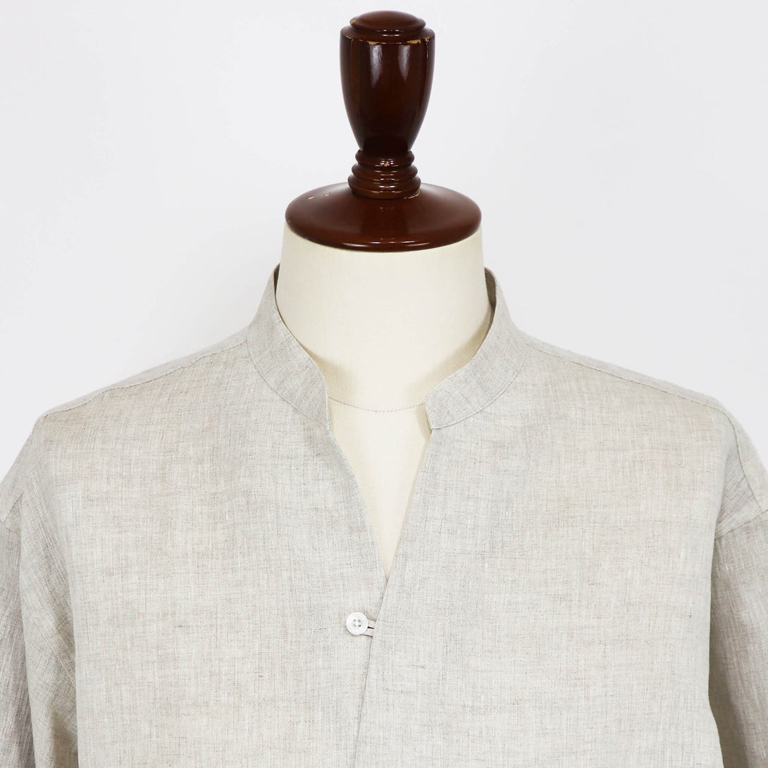 ブランドのコンセプトでもある「LUXURY RESORT」をまさしく表現したリゾート感溢れるプルオーバータイプのリネンシャツです。広い前開きのゆったりとしたバランスのボディはリラックスした着心地とサイジングを実現しています。