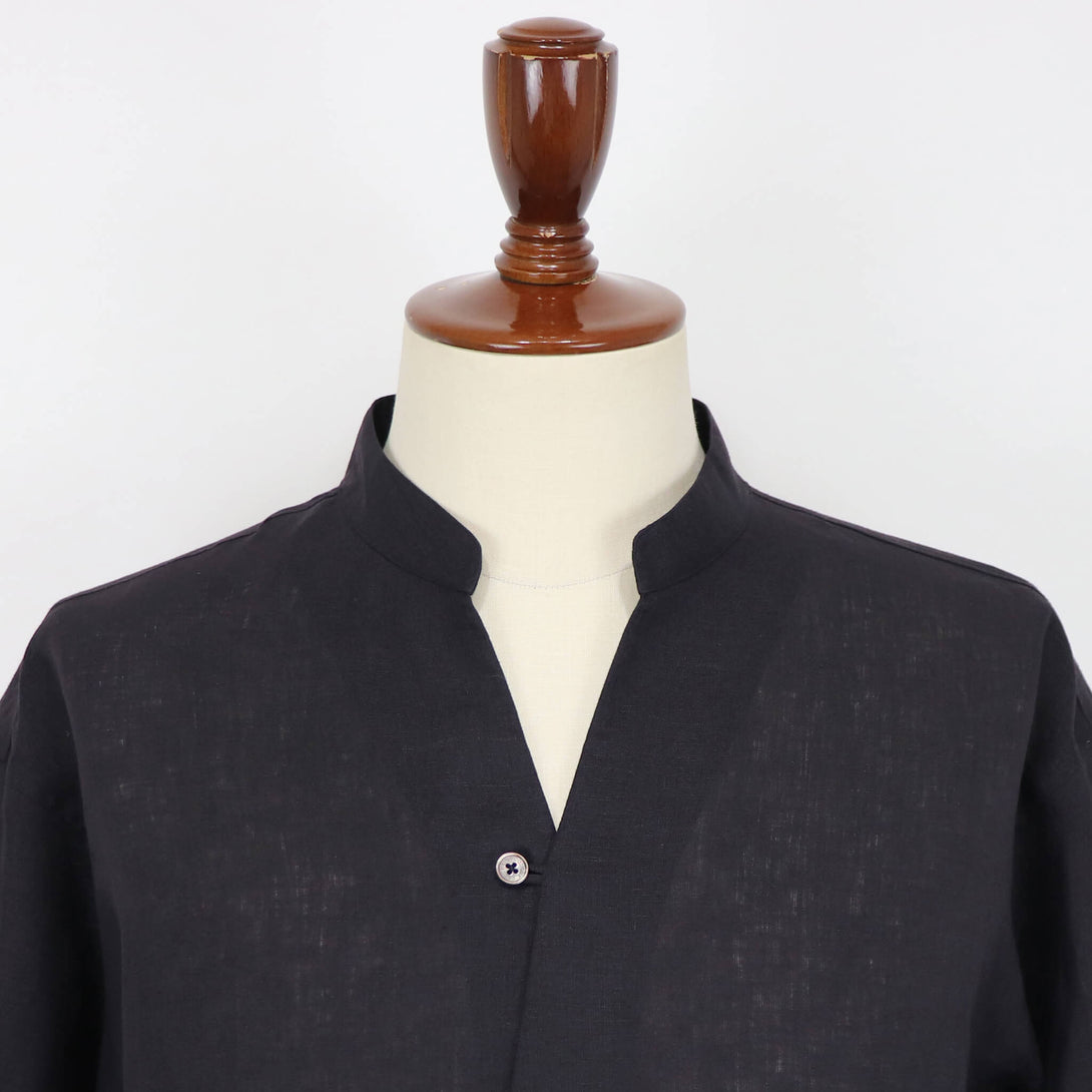 ブランドのコンセプトでもある「LUXURY RESORT」をまさしく表現したリゾート感溢れるプルオーバータイプのリネンシャツです。広い前開きのゆったりとしたバランスのボディはリラックスした着心地とサイジングを実現しています。