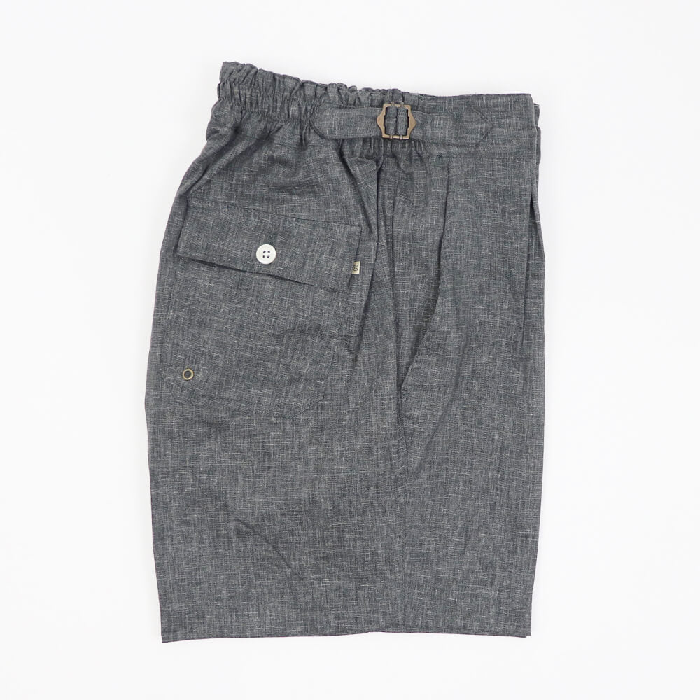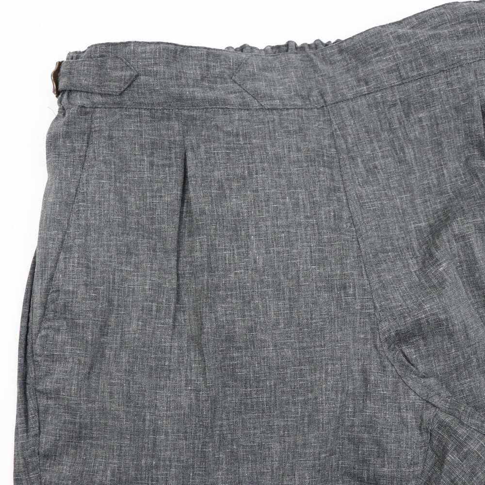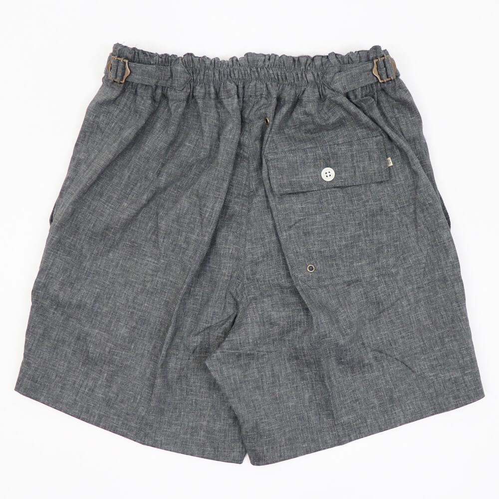 フェイクフロントとサイドアジャスターは今季のモデルでも健在で、このディテールがこのアイテムのアイコニックとなっています。非常に軽量のストレッチポリエステル素材とリネンを使用し夏らしい軽快な穿き心地とダメージに強いコシのある素材感が魅力です。