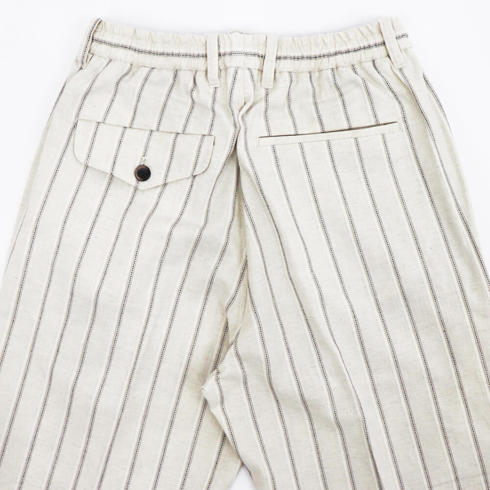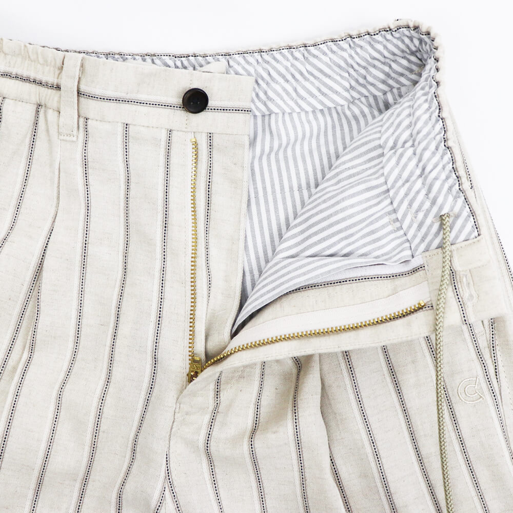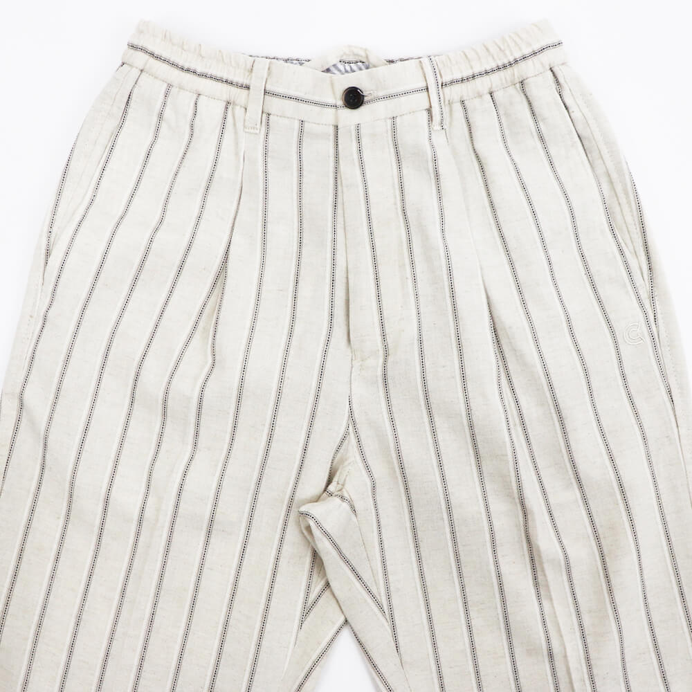 夏に向けてリゾート感満載のCOLONY CLOTHINGの新型パンツ。ウエストシャーリングでリラックスした着心地を実現し、程よいテーパードシルエットでスタイリッシュに演出します。ホワイトストライプは爽やかな印象を与え、ビーチやリゾートでの着用はもちろん、タウンユースとしてもおすすめです。