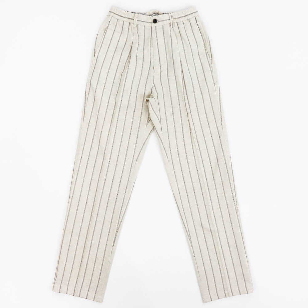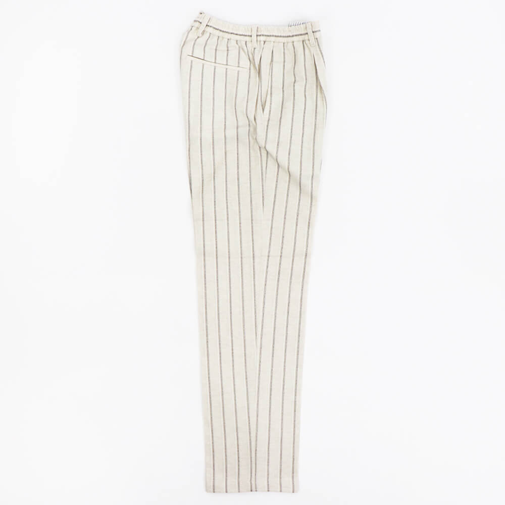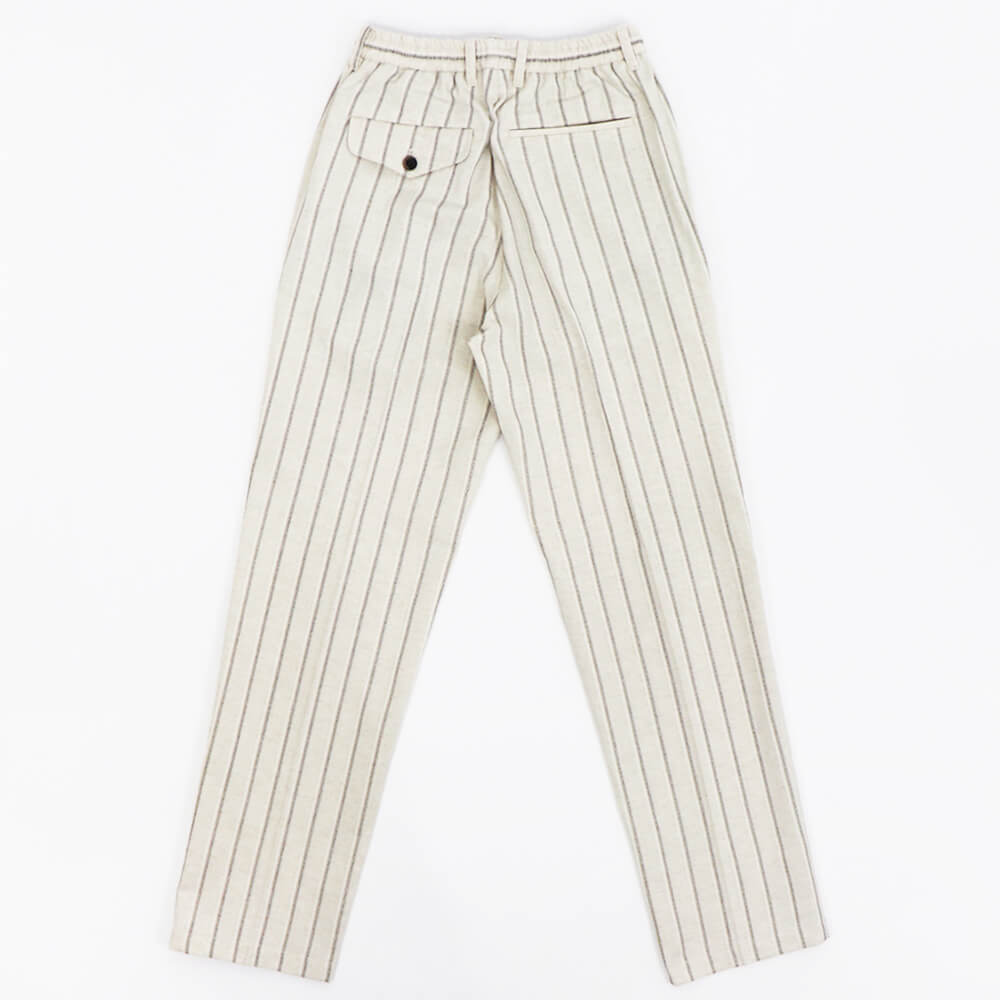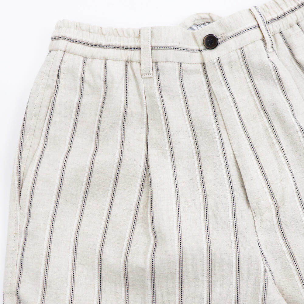夏に向けてリゾート感満載のCOLONY CLOTHINGの新型パンツ。ウエストシャーリングでリラックスした着心地を実現し、程よいテーパードシルエットでスタイリッシュに演出します。ホワイトストライプは爽やかな印象を与え、ビーチやリゾートでの着用はもちろん、タウンユースとしてもおすすめです。