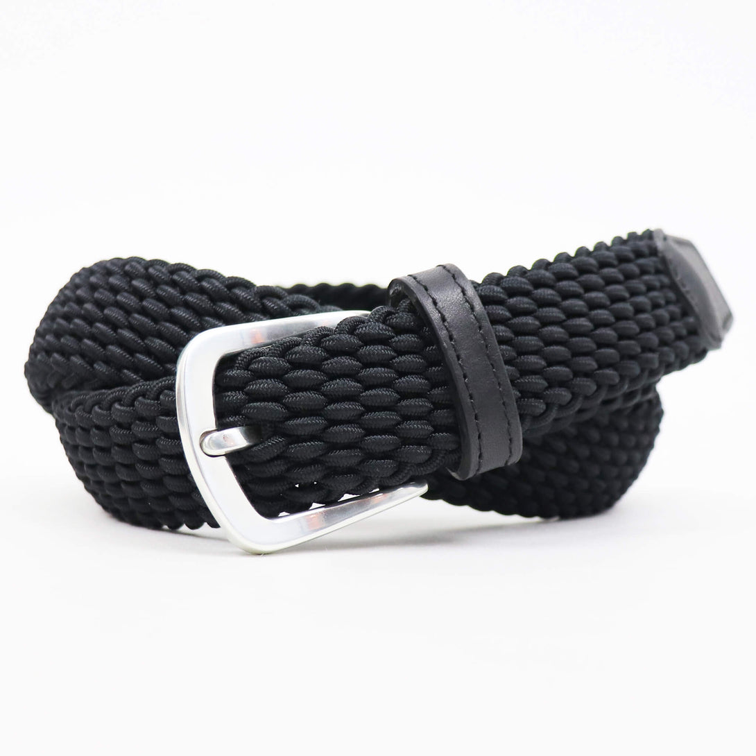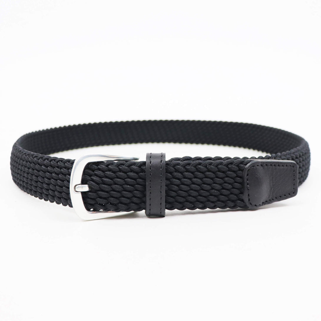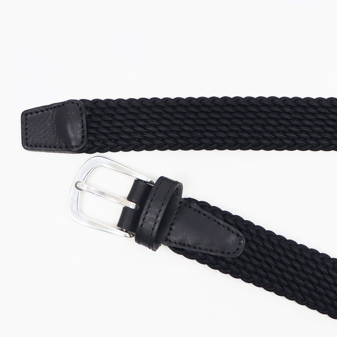バックル部分と剣先部分にはスムースレザーを使い、メイン部分には伸縮性に優れたメッシュ素材(エラスタン)を合わせたベルトとなります。立ったり座ったり、動き回る時などにはこの伸縮性が非常にありがたく、とてもコンフォートなベルトです。控えめで上品なバックルと、程よい光沢のあるレザー、独特のメッシュ、異素材の組み合わせもまとまりの良い仕上がりです。幅も30mmと、パンツのボリュームやシルエットに関わらず合わせやすいバランスの良さも魅力です。
