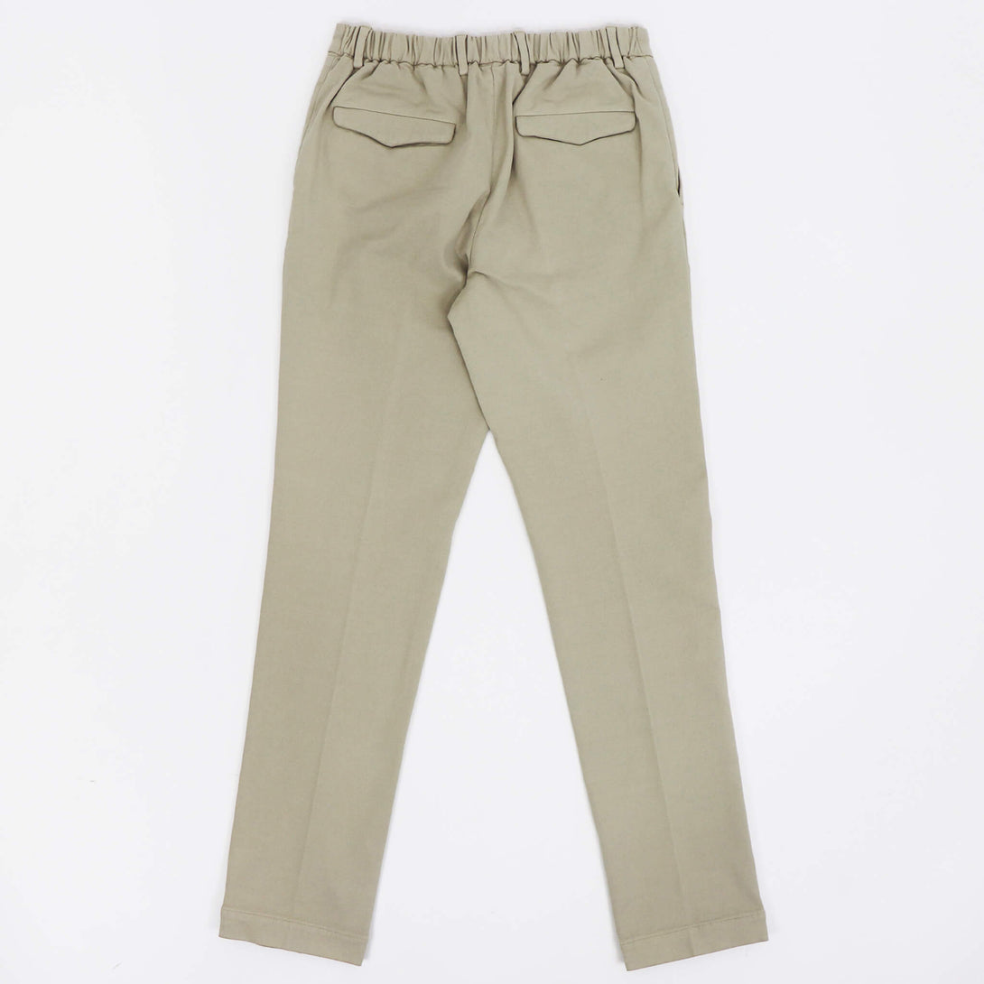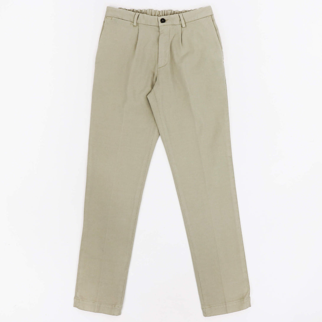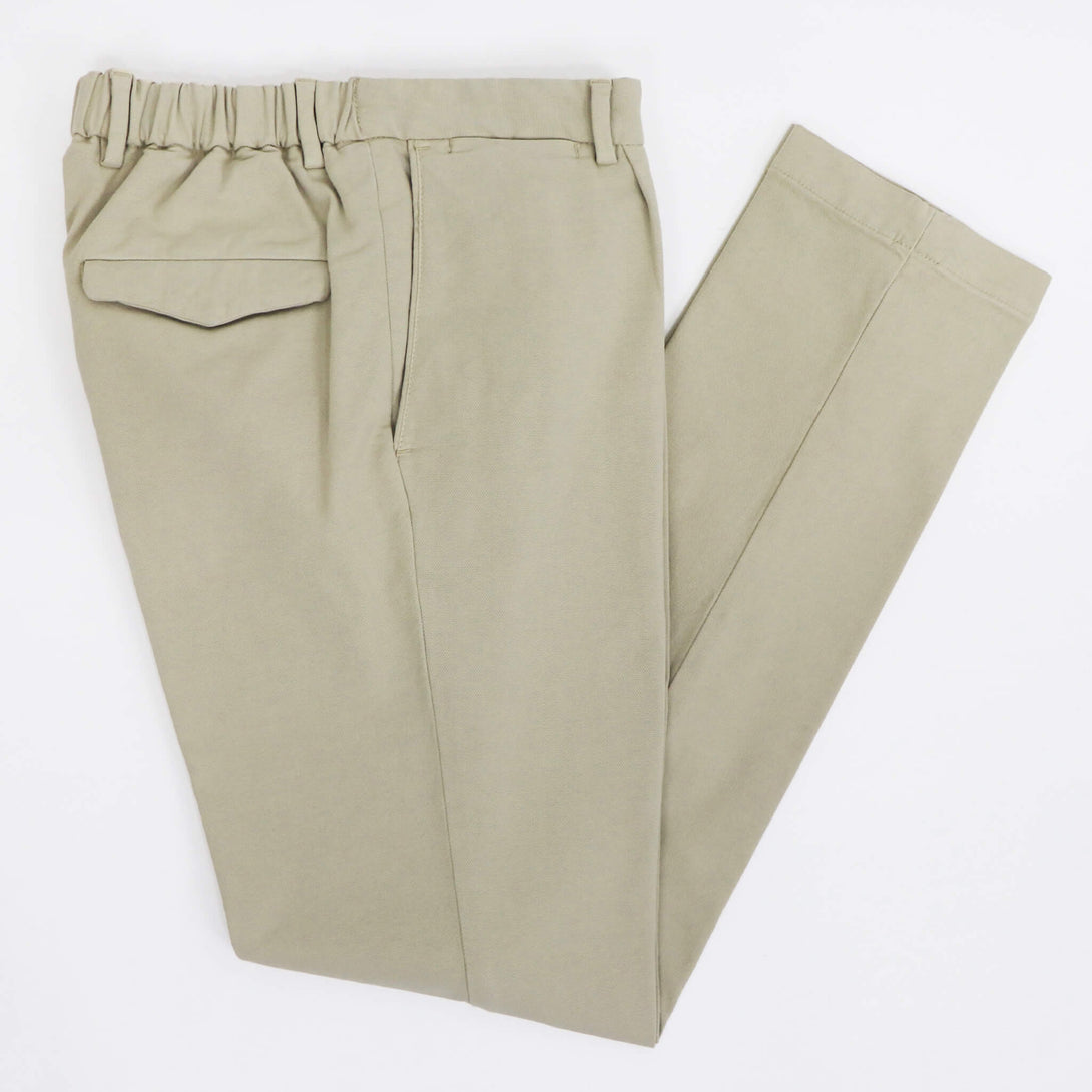 DEVORE(デヴォレ)の新作のパンツは秋冬を意識したコットンベースの物をセレクト。ウエスト部分は背面部分にゴムを仕込み、腰回りにゆとりを持たせ、自然なテーパードが魅力のモデルです。素材はコットン×エラスティックで、ストレッチも効いているのでストレスなく着用していただけます。