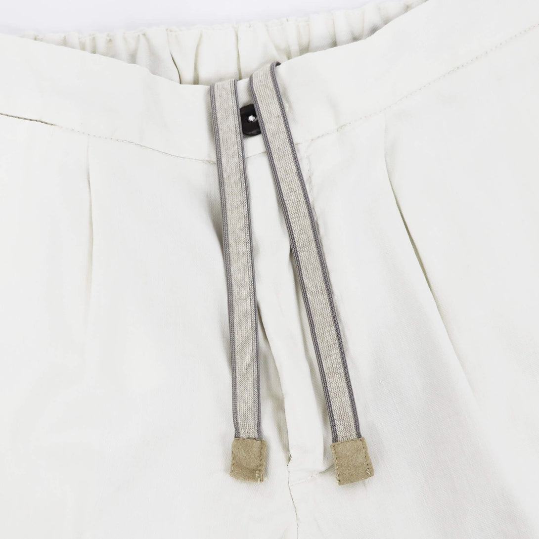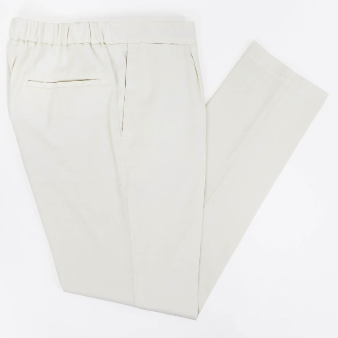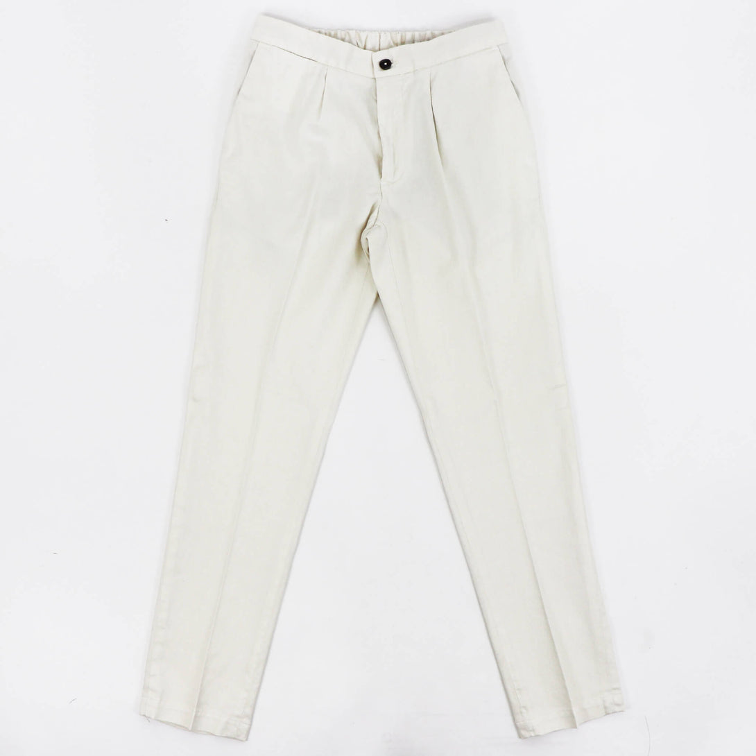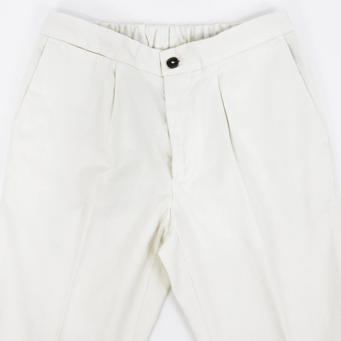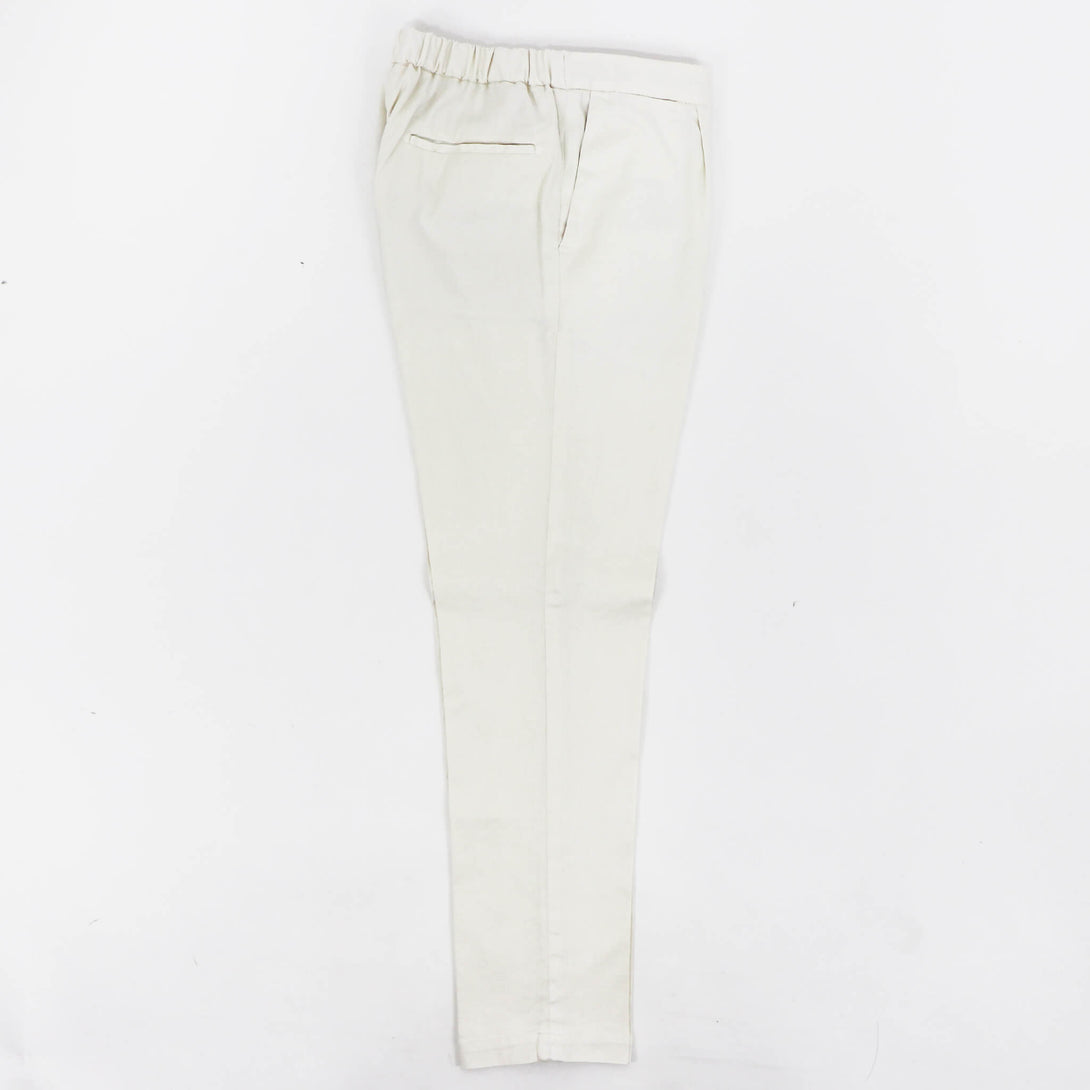 DEVORE(デヴォレ)の新作のパンツは春夏を意識したディテールの物をセレクト。ウエスト部分にドローストリングスと背面部分にゴムを仕込み、腰回りにゆとりを持たせ、自然なテーパードが魅力のモデルです。素材はコットンリネンで、ストレッチも効いているので春夏にピッタリ。スタイリングのポイントとしては、スニーカーはもちろんですが、エスパドリーユや、レザーサンダルなどでのコーディネートが理想的なパンツになります。