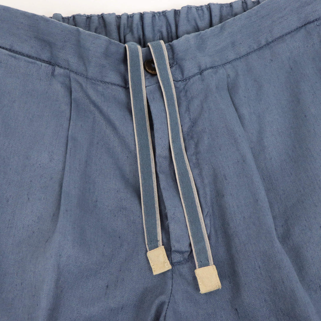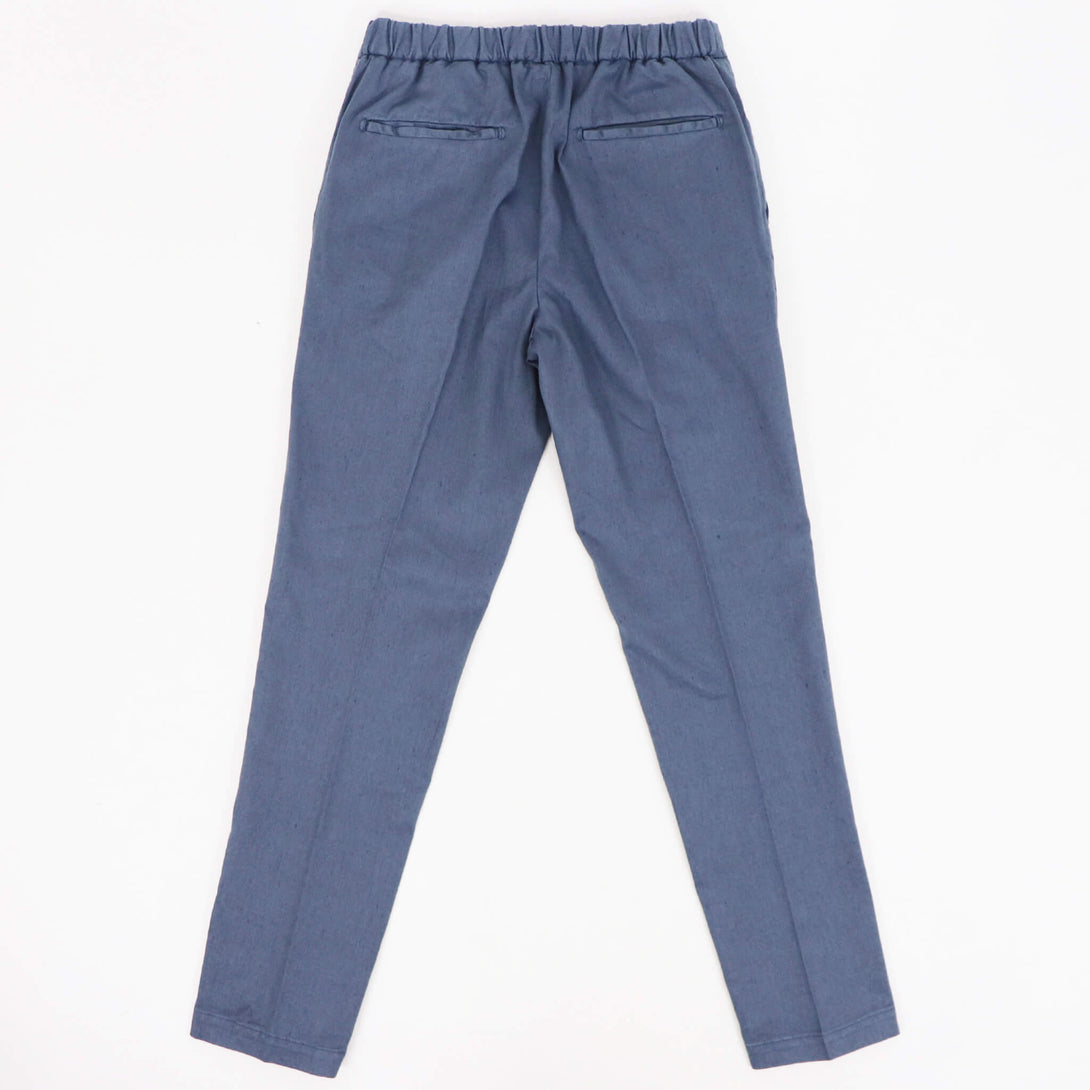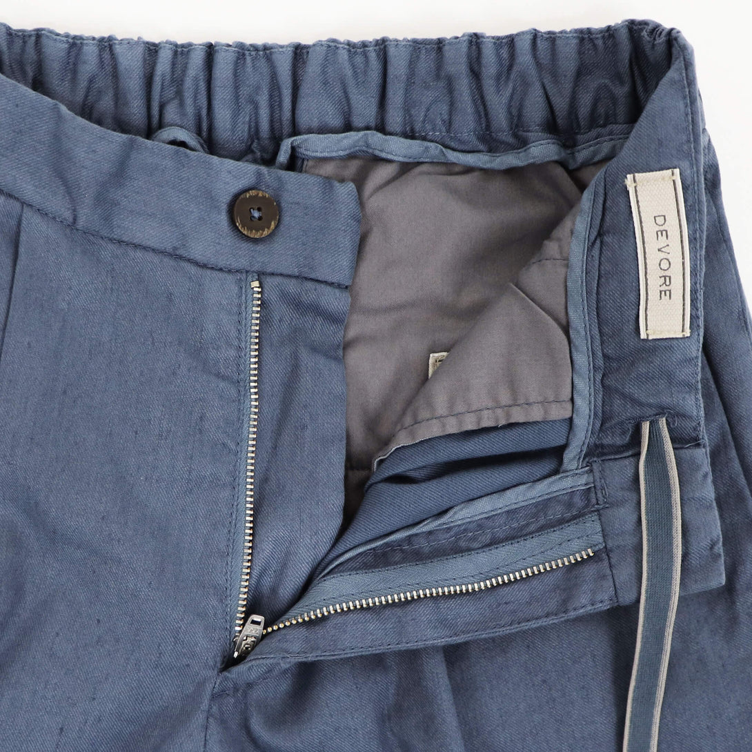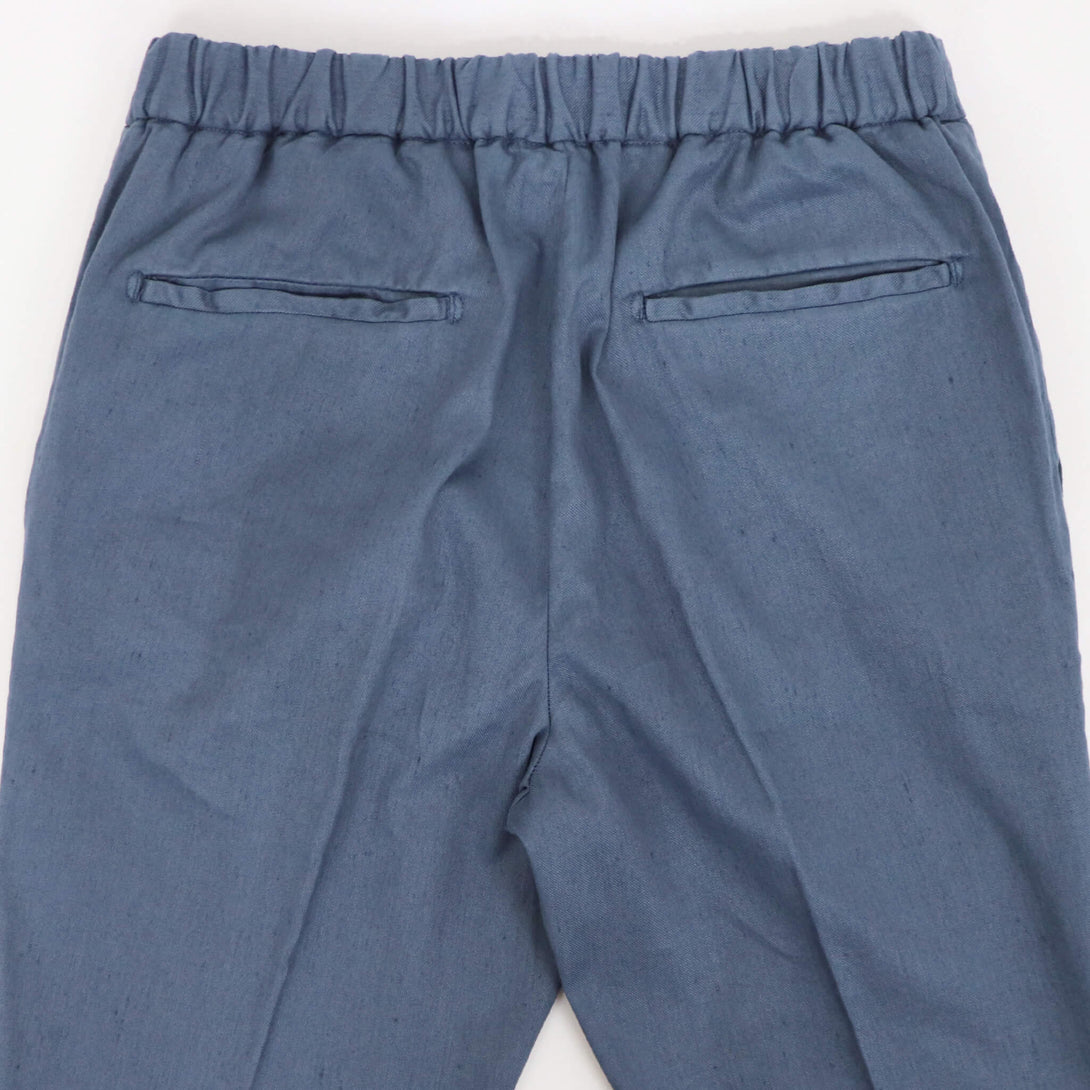 DEVORE(デヴォレ)の新作のパンツは春夏を意識したディテールの物をセレクト。ウエスト部分にドローストリングスと背面部分にゴムを仕込み、腰回りにゆとりを持たせ、自然なテーパードが魅力のモデルです。素材はコットンリネンで、ストレッチも効いているので春夏にピッタリ。スタイリングのポイントとしては、スニーカーはもちろんですが、エスパドリーユや、レザーサンダルなどでのコーディネートが理想的なパンツになります。