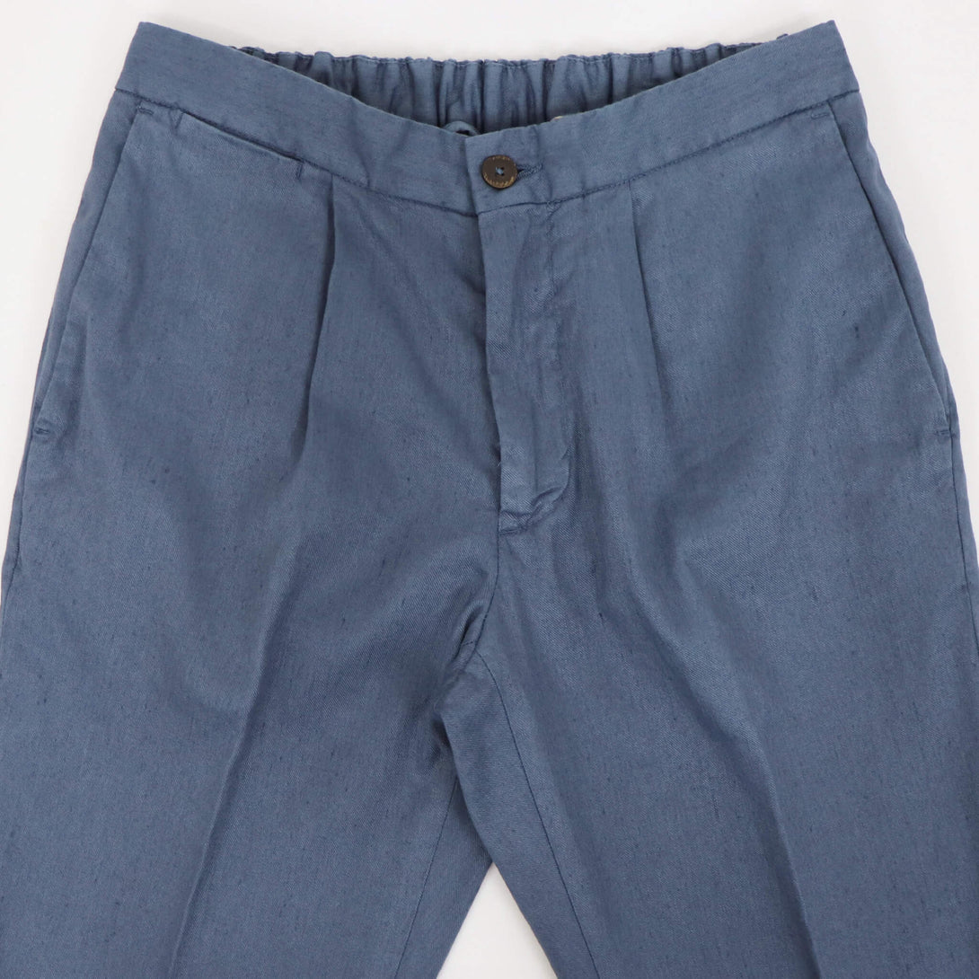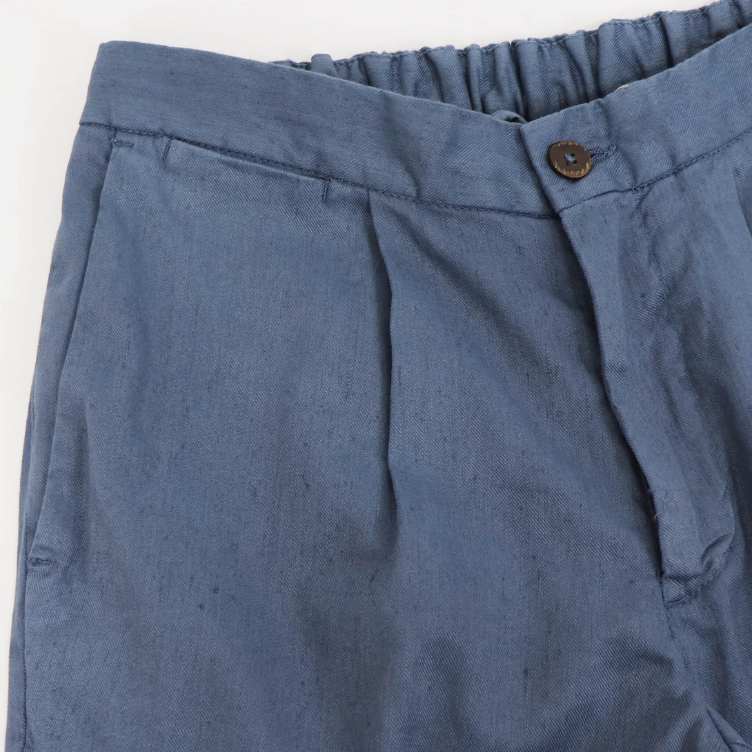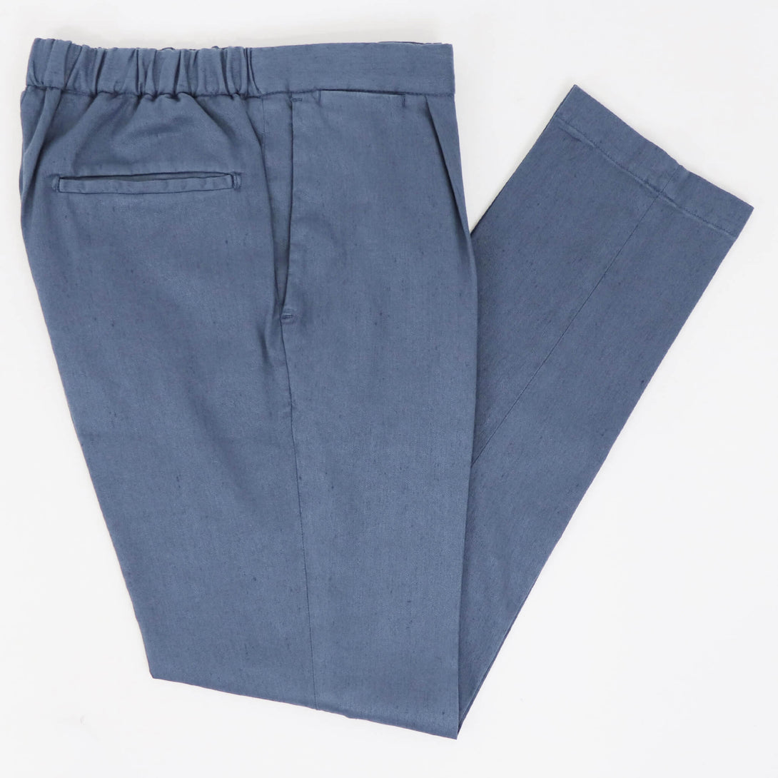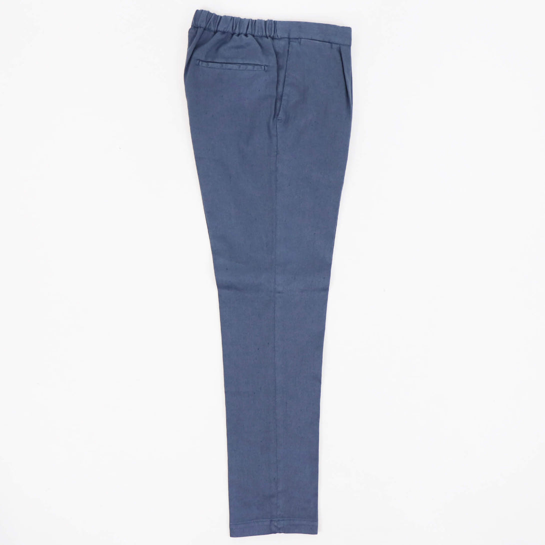 DEVORE(デヴォレ)の新作のパンツは春夏を意識したディテールの物をセレクト。ウエスト部分にドローストリングスと背面部分にゴムを仕込み、腰回りにゆとりを持たせ、自然なテーパードが魅力のモデルです。素材はコットンリネンで、ストレッチも効いているので春夏にピッタリ。スタイリングのポイントとしては、スニーカーはもちろんですが、エスパドリーユや、レザーサンダルなどでのコーディネートが理想的なパンツになります。