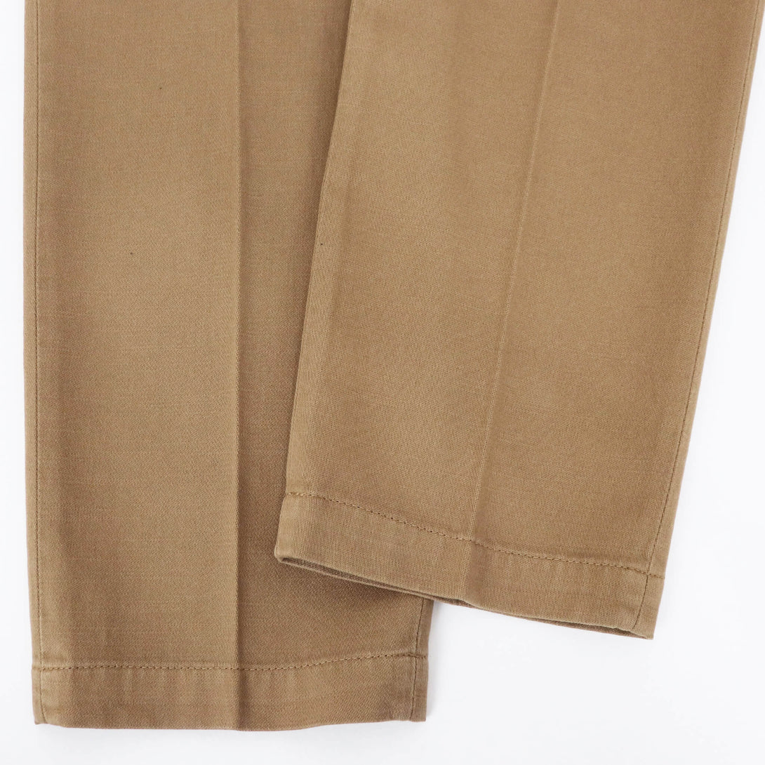 細過ぎず太過ぎずな絶妙なシルエットのナポリの美脚パンツ。洗いをかけ少し枯れた印象の後染め感はこれぞイタリアといった雰囲気ムンムンです。サイドの斜めポケットに沿ったカッティングが特徴的で無駄なものを削ぎ落とした正に美を追求したパンツに仕上がっています。