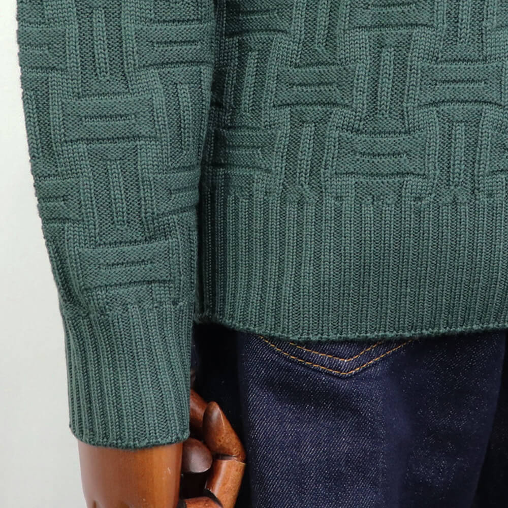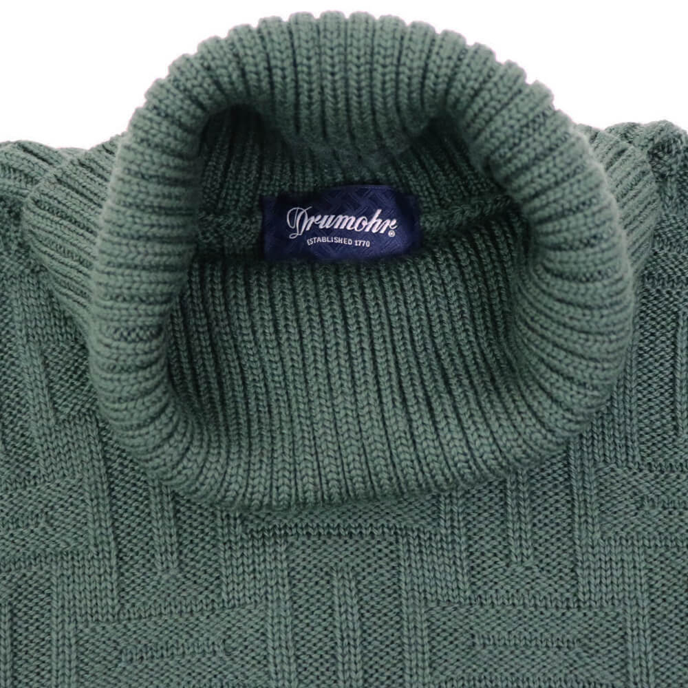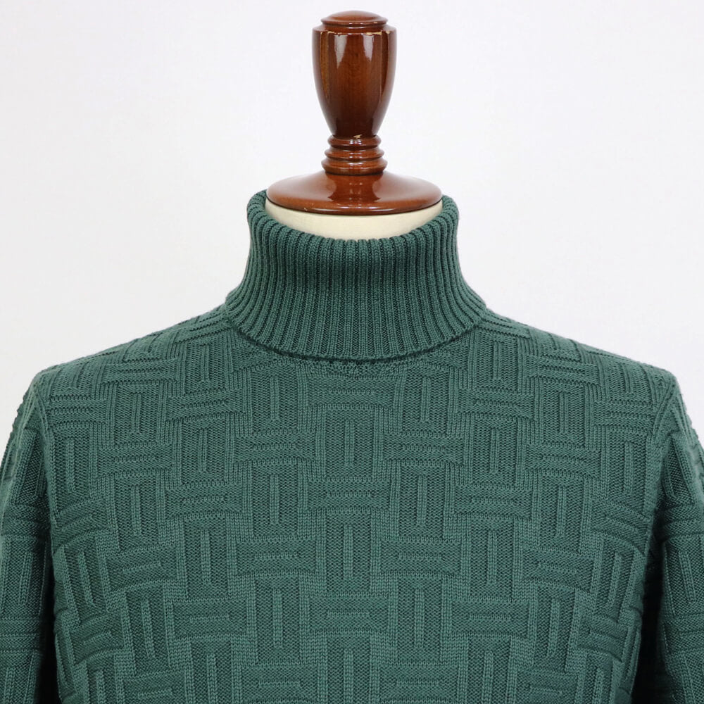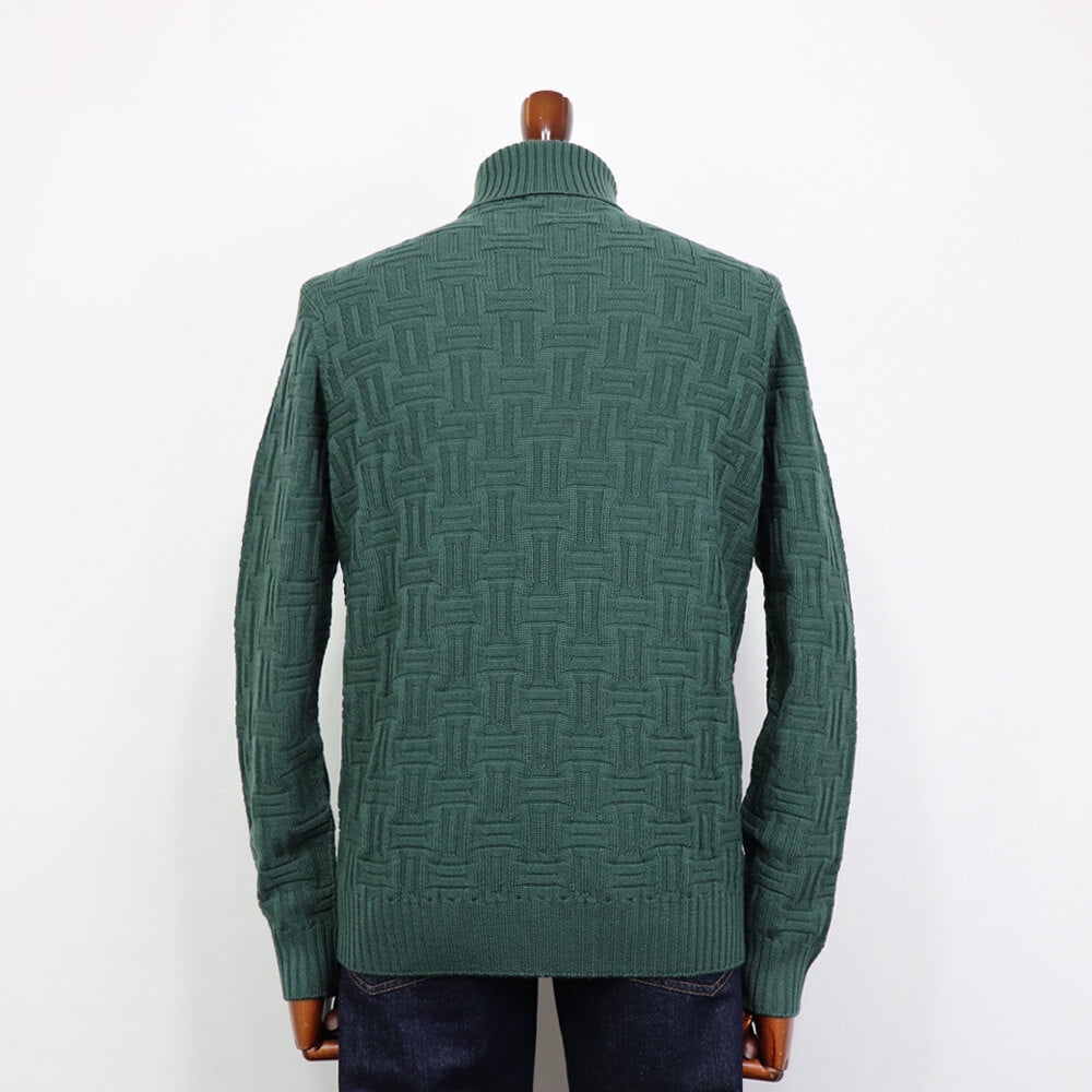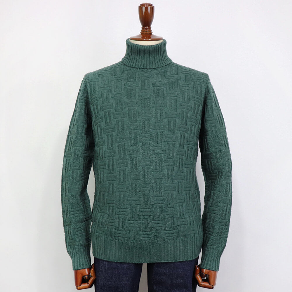 Drumohr(ドルモア)から今季も織り柄のタートルネックウールニットがイタリアから届きました。ふんわりとした柔らかな肌触りのメリノウール素材を丁寧に編み込み、抜群の保温性とニット特有の伸縮性を実現しています。さらに軽量でありながら抜群の保温性を発揮するのが特徴です。秋冬シーズンの王道アイテムであるタートルネックは様々なコーディネートにしっくりとハマり、取り入れるだけでグッと落ち着いた雰囲気をプラスしてくれます。すっきりとしたボディのシルエットは着用時にはキレイなラインを表現し、ニットにありがちな野暮ったいシルエットを一切感じることなく、アウターを脱いだ時の存在感は抜群です。コーディネートの邪魔をしない織り柄で上品なスタイリングを楽しんでいただけます。