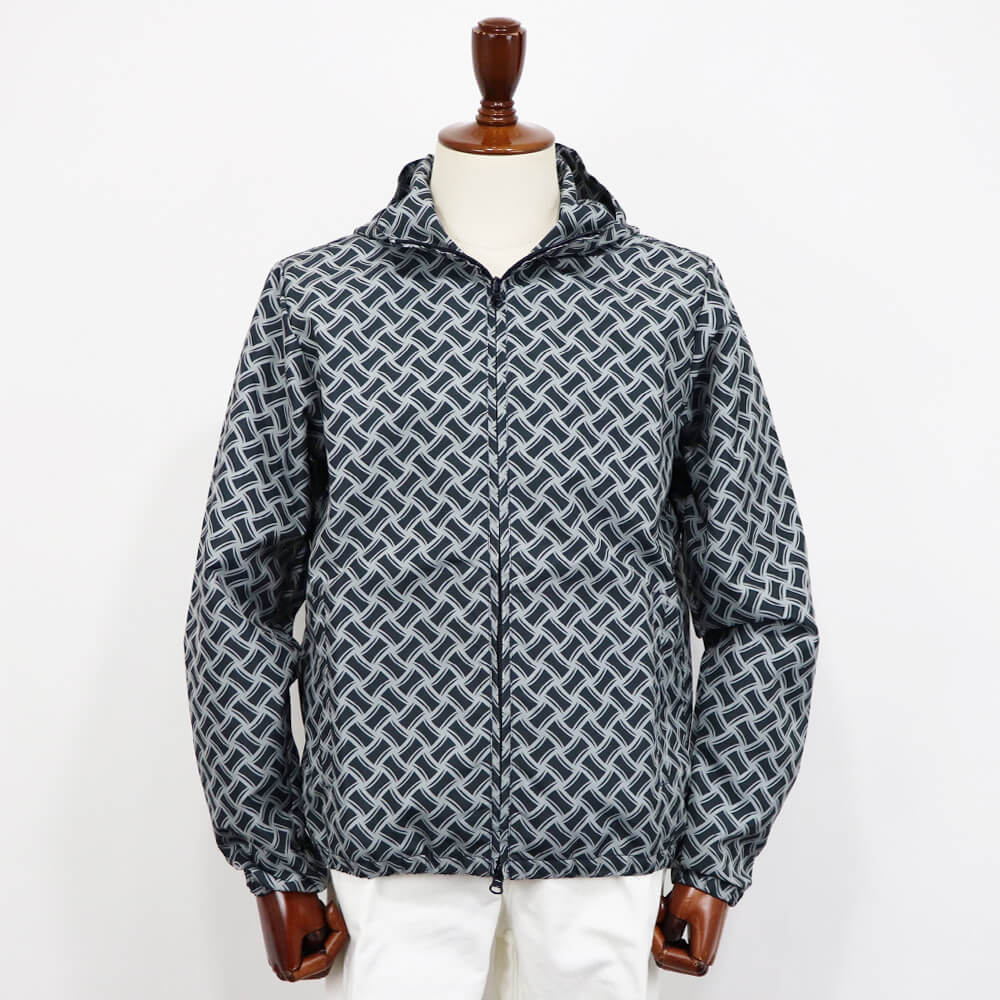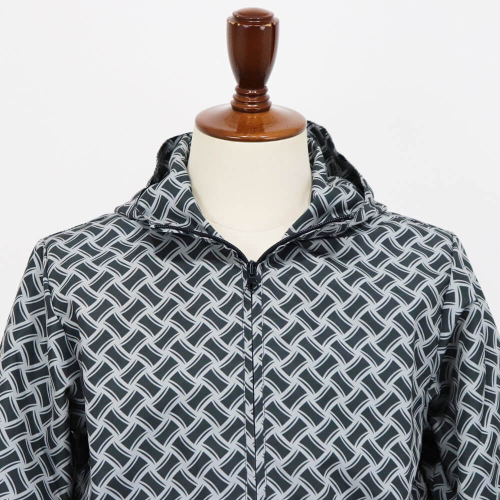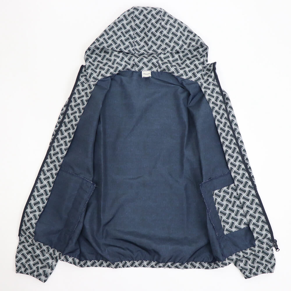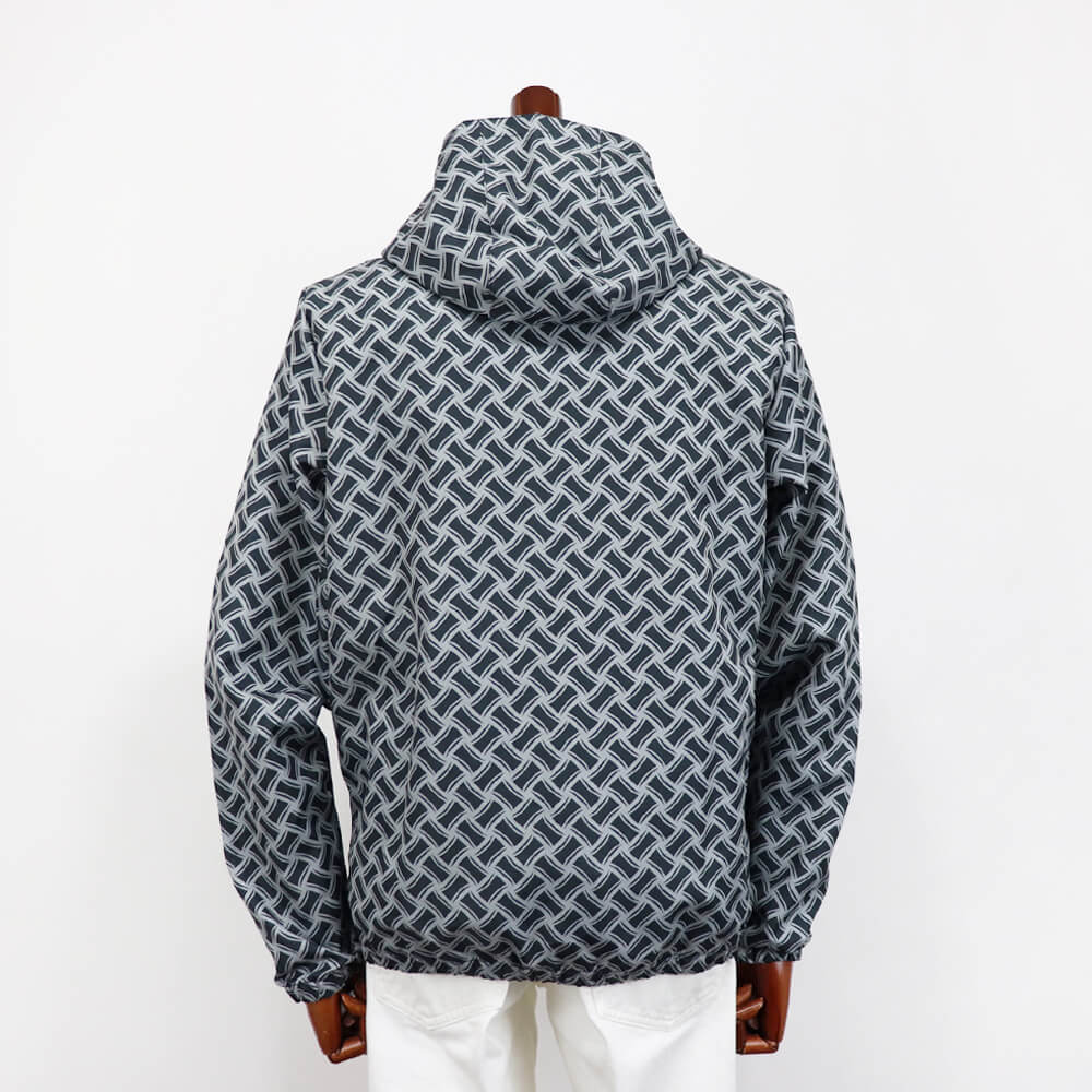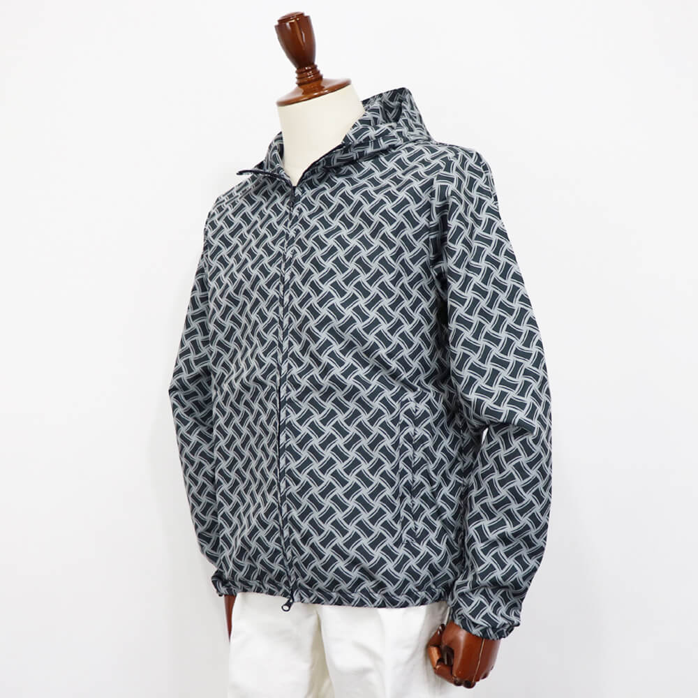 世界最古のニットブランドと言われるDrumohr(ドルモア)より、ブランドアイコンでもある、ビスコッティをモチーフにした柄をプリントしたナイロンパーカーがイタリアより届きました。素材はポリエステル100%。ハリとコシのある生地感で、夜の肌寒い時や、風をしのぎたい時の羽織物にピッタリ。