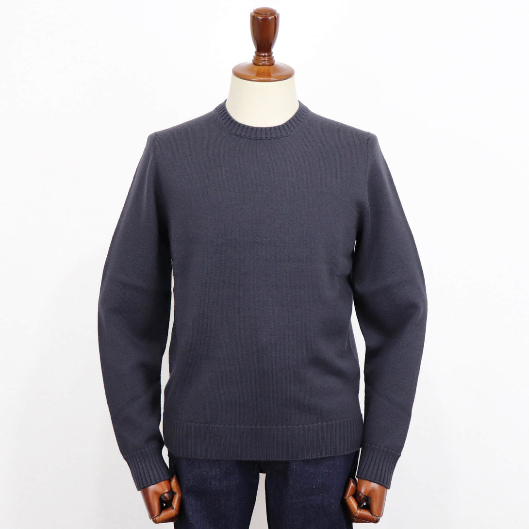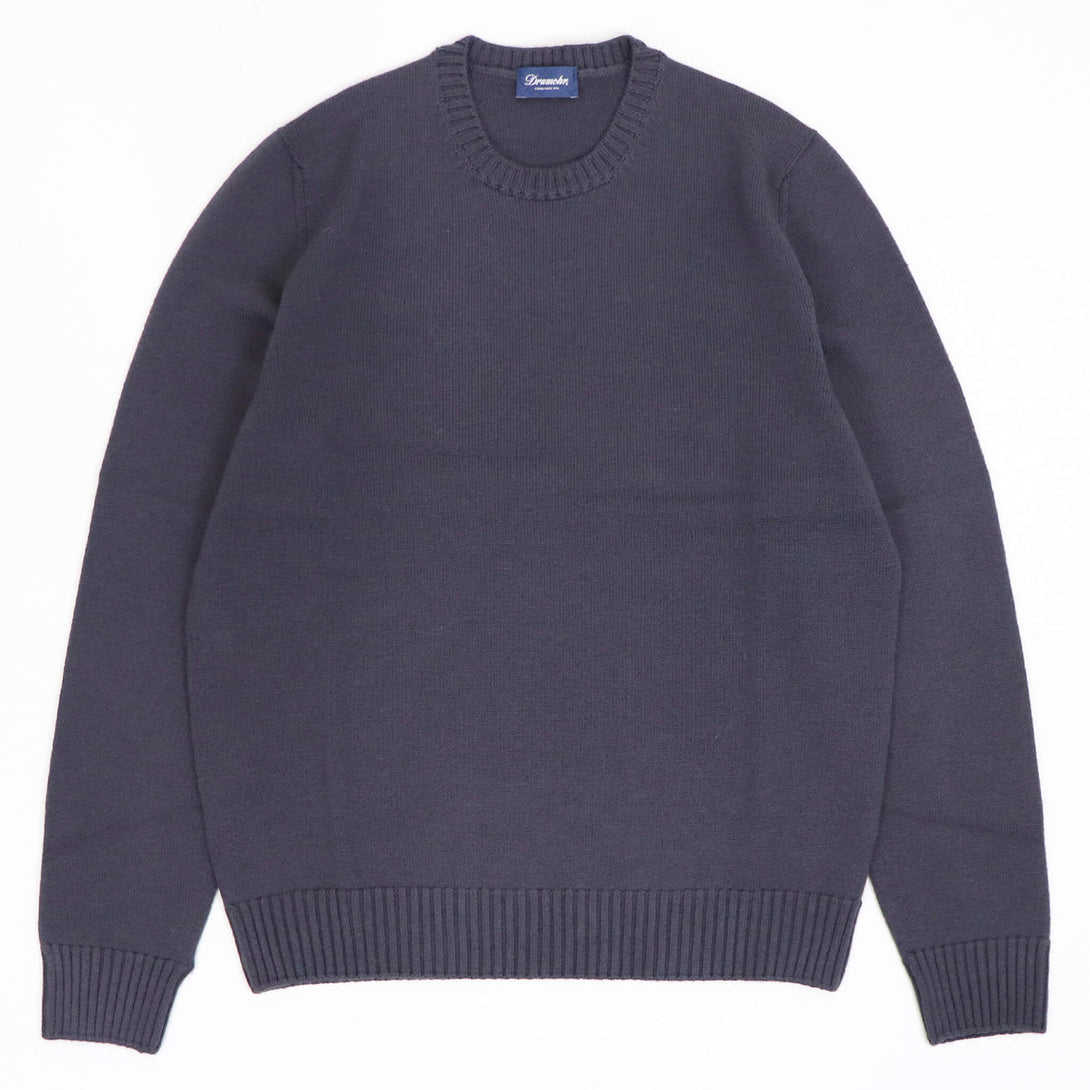 今季もDrumohr(ドルモア)の定番として毎シーズンご好評いただいている、“8ゲージ”シリーズのアイテムが入荷です。今回は、クルーネックで2色展開となります。ハイゲージよりも肉厚ではありますが、ジャケットのインナーにも使用できるフィット感で、汎用性は非常に高いアイテムとなります。アウターを脱いだ時の、安心感はもちろん、リブ部分の表情があるので、一枚で来ても様になります。室内では主役となるインナーですので、手は抜けないですね。カラーも、コーディネートし易く、長く使えるカラーをセレクトしていますので、ワードローブにプラスしていただきたいアイテムとなります。