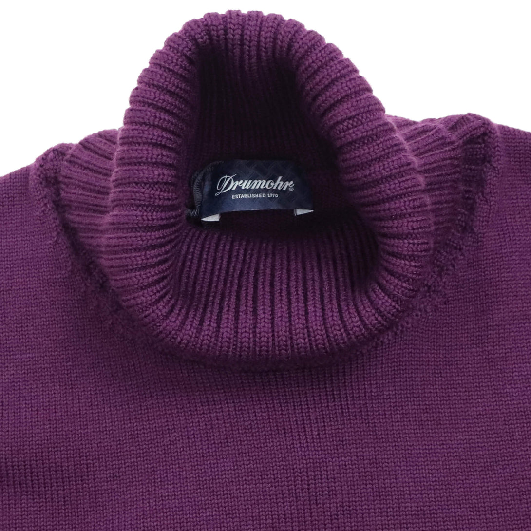 Drumohrの代名詞ともいえる、メリノウールを使用した“8ゲージ”シリーズ。ジャケットのインナーにも着用可能な少しライトなミドルゲージは、汎用性が高く、毎年人気のシリーズとなっています。様々なアウターとの相性のいいタートルネックニット。一枚で着ても良し、インナー使いでも良しと、一枚あればシーズン通して出番は多いのではないでしょうか?!メリノウールの毛糸の最大の特徴は、その柔らかさと滑らかさです。一般的なウールに比べて繊維が細いため、編んだアイテムは肌触りが良く、かゆみを引き起こすことが少ないと言われています。これは特に敏感肌の方にもおすすめできるのではないでしょうか?!