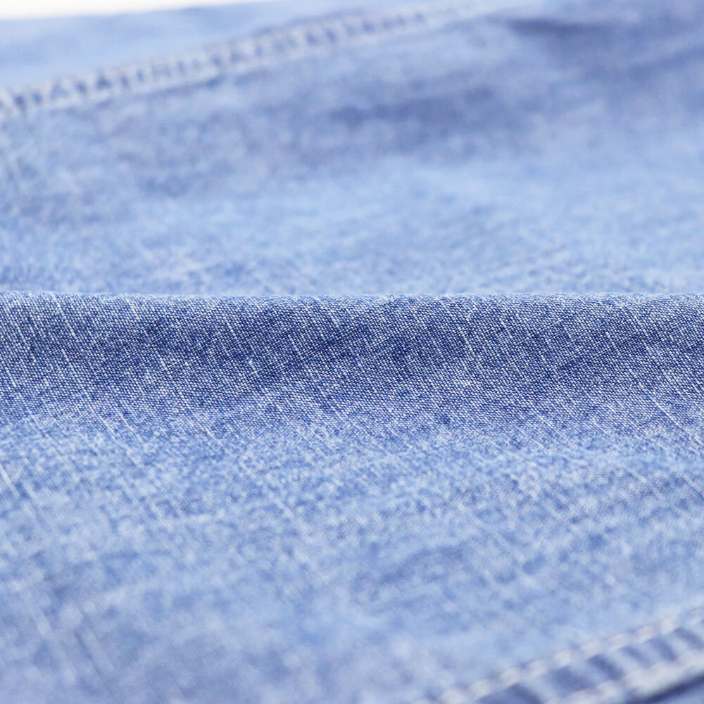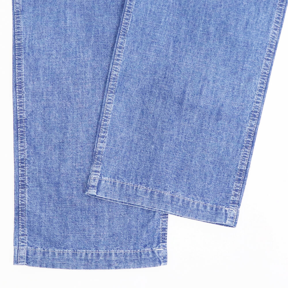 デニムのような見た目ながら、軽やかな素材感で春〜夏にかけてぴったりの一本です。