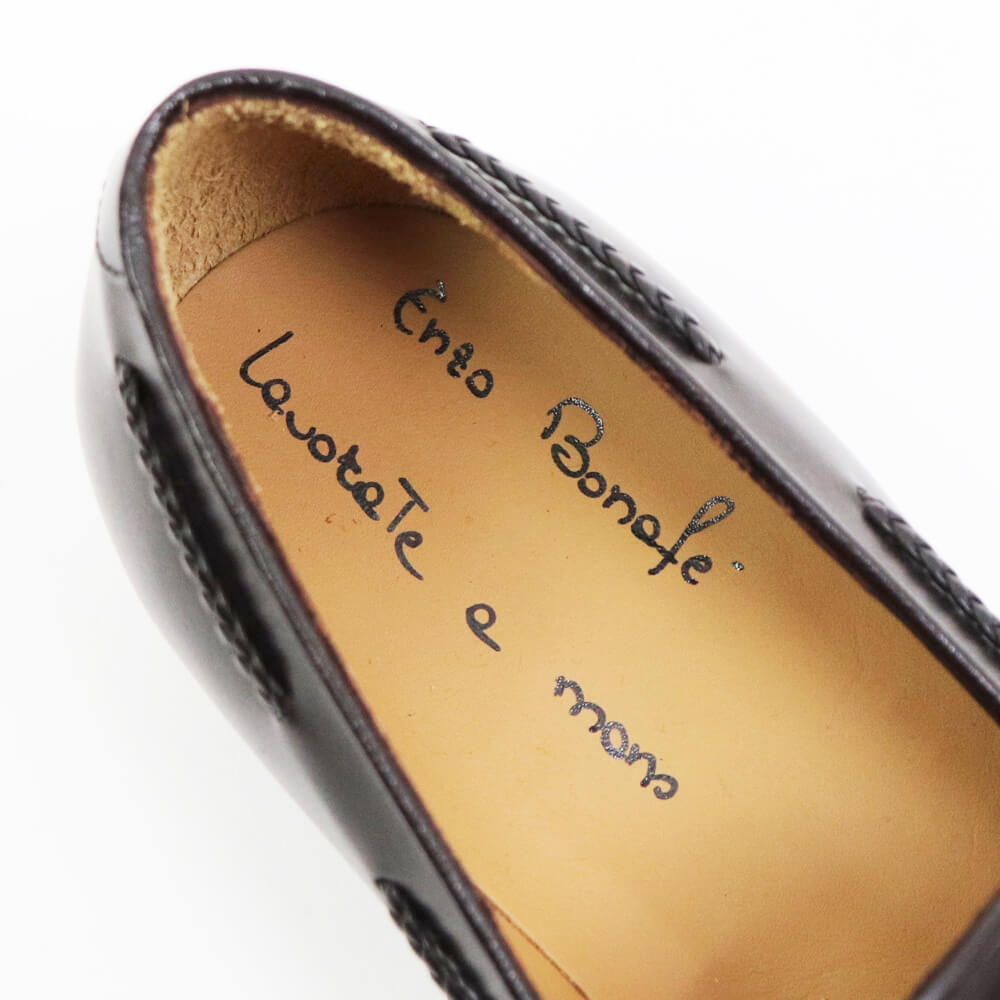 1963年に創立された「Enzo Bonafe(エンツォ ボナフェ)」。50年以上もの間、靴の世界に携わる職人であるエンツォ・ボナフェ氏は、イタリアの有名な靴メーカーである「ア・テストーニ」で靴づくりの修行と経験を積んだ後、1963年に自らの名前をブランド名に冠し靴づくりを開始しました。ボローニャに工房を持ち、高いクオリティと靴づくりに対する真摯な姿勢は老舗の名に相応しいものです。