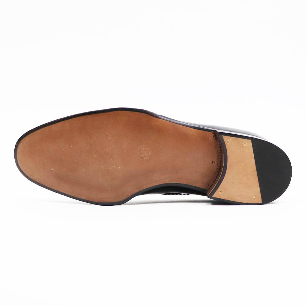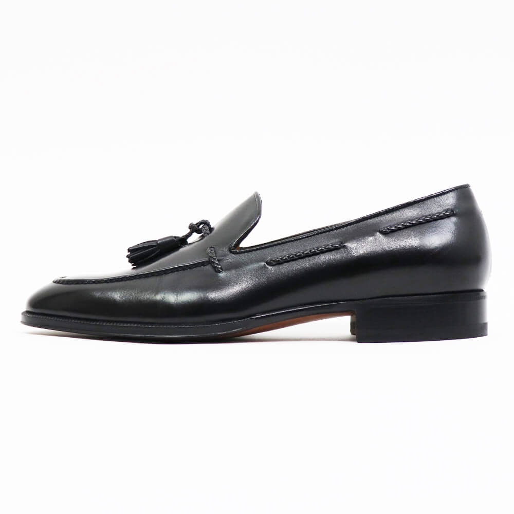 老舗英国タンナー〈ANNONAY(アノネイ)〉社の上質なカーフレザーを採用した〈ENZO BONAFE〉のタッセルローファー『LIPPI 』。本モデルは、タッセルの腰ベルトをメッシュベルトに変更した別注品です。出し縫い以外を手作業で丁寧に作り、既製靴ながらビスポークシューズのような仕上がりが魅力。控えめなモカ縫い、素材の上品な艶感としなやかさによるエレガントな表情は同ブランドならではの佇まいです。クラフトマンシップ感じる、ドレススタイルに取り入れたい1足です。