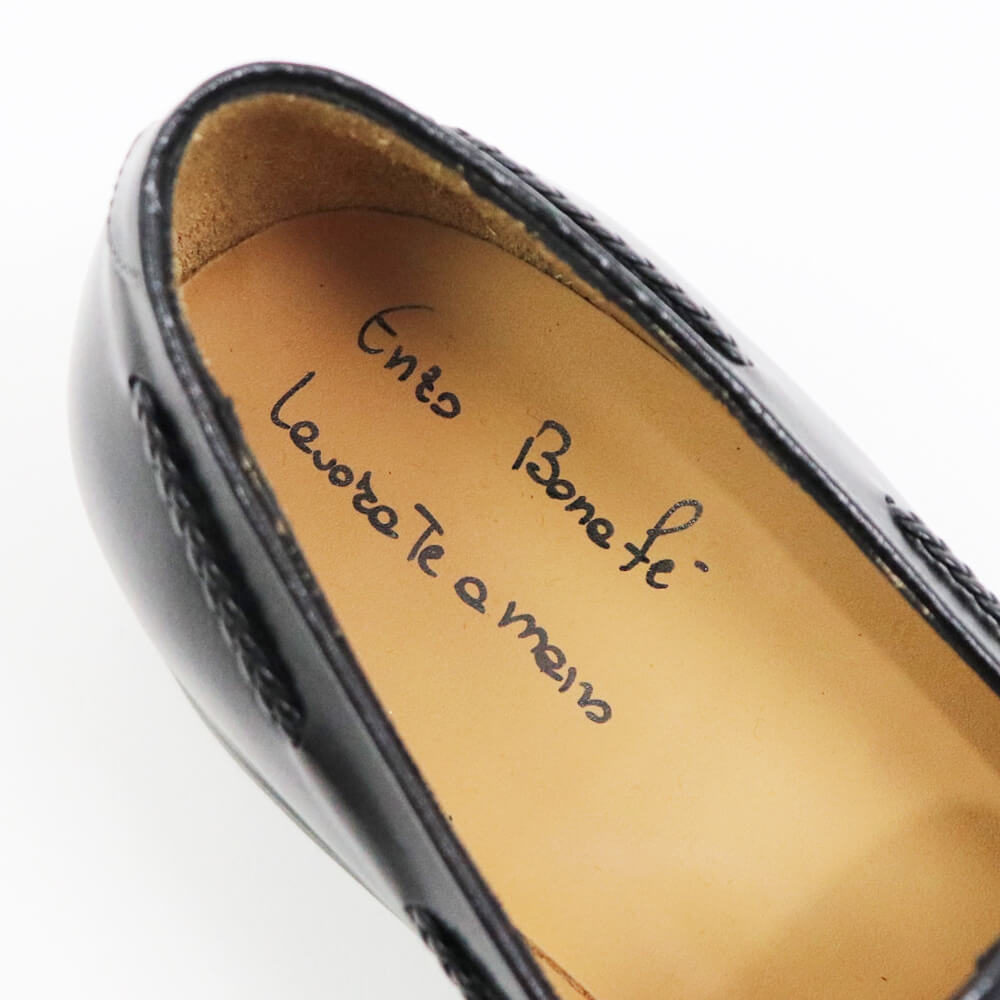1963年に創立された「Enzo Bonafe(エンツォ ボナフェ)」。50年以上もの間、靴の世界に携わる職人であるエンツォ・ボナフェ氏は、イタリアの有名な靴メーカーである「ア・テストーニ」で靴づくりの修行と経験を積んだ後、1963年に自らの名前をブランド名に冠し靴づくりを開始しました。ボローニャに工房を持ち、高いクオリティと靴づくりに対する真摯な姿勢は老舗の名に相応しいものです。