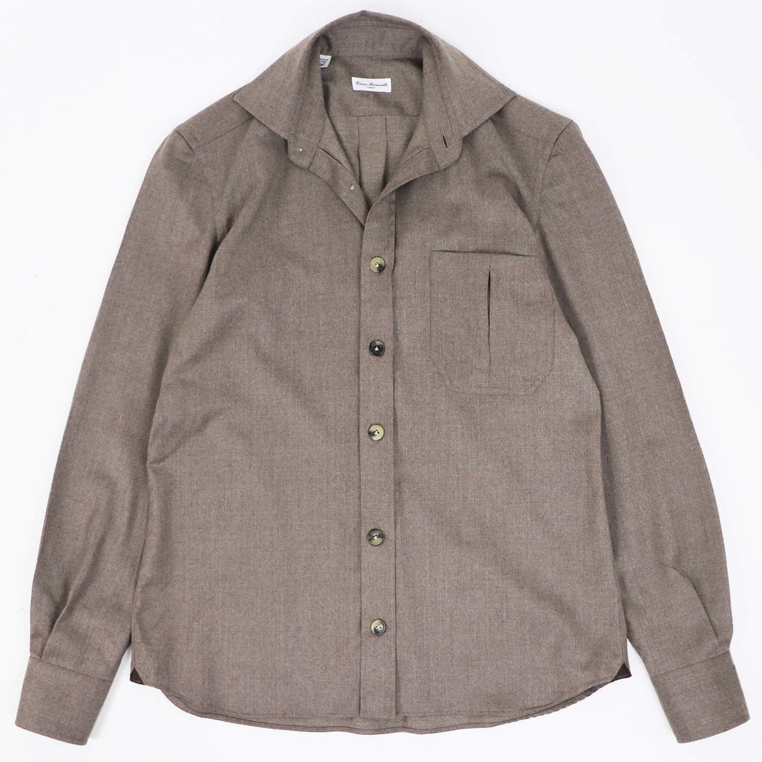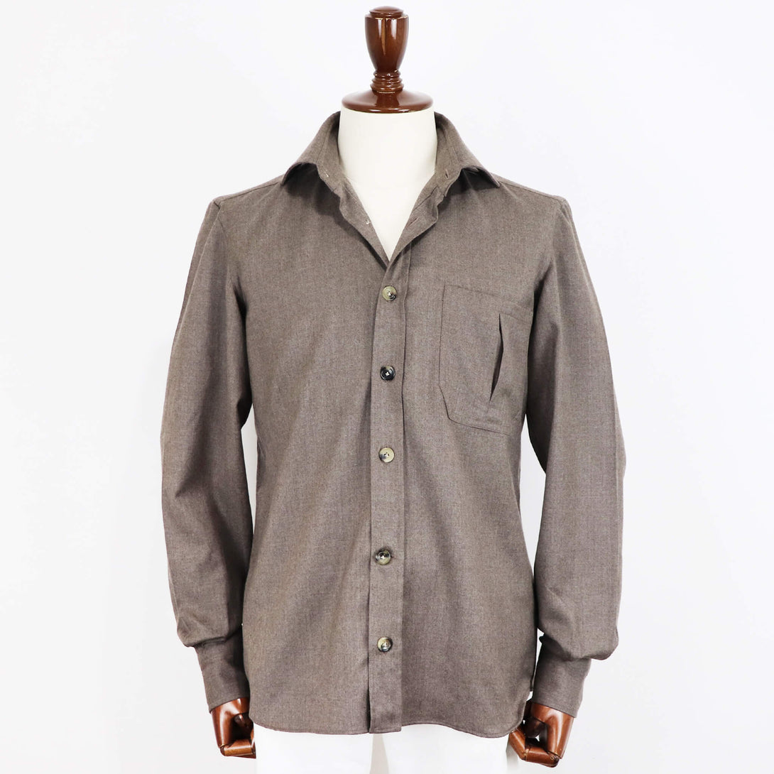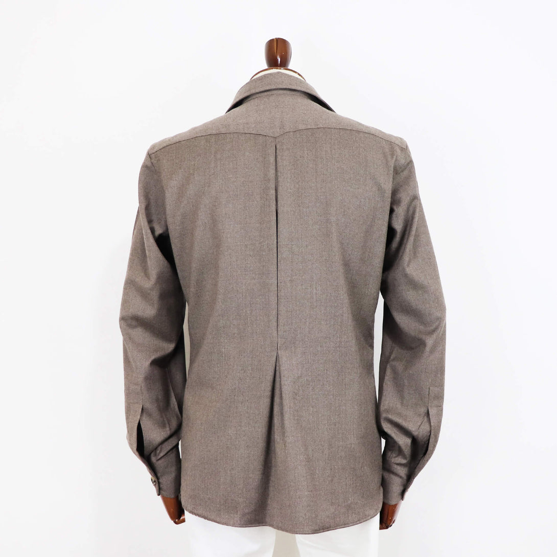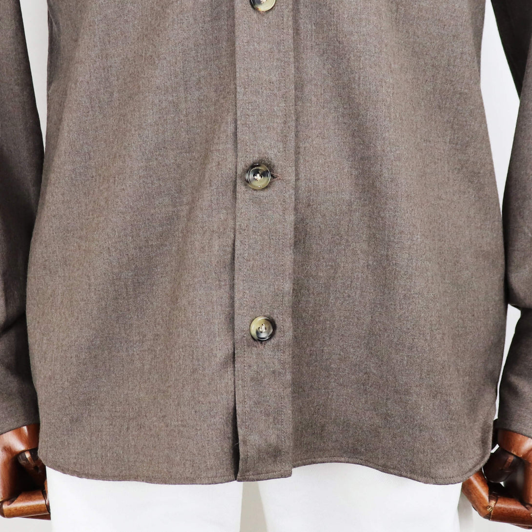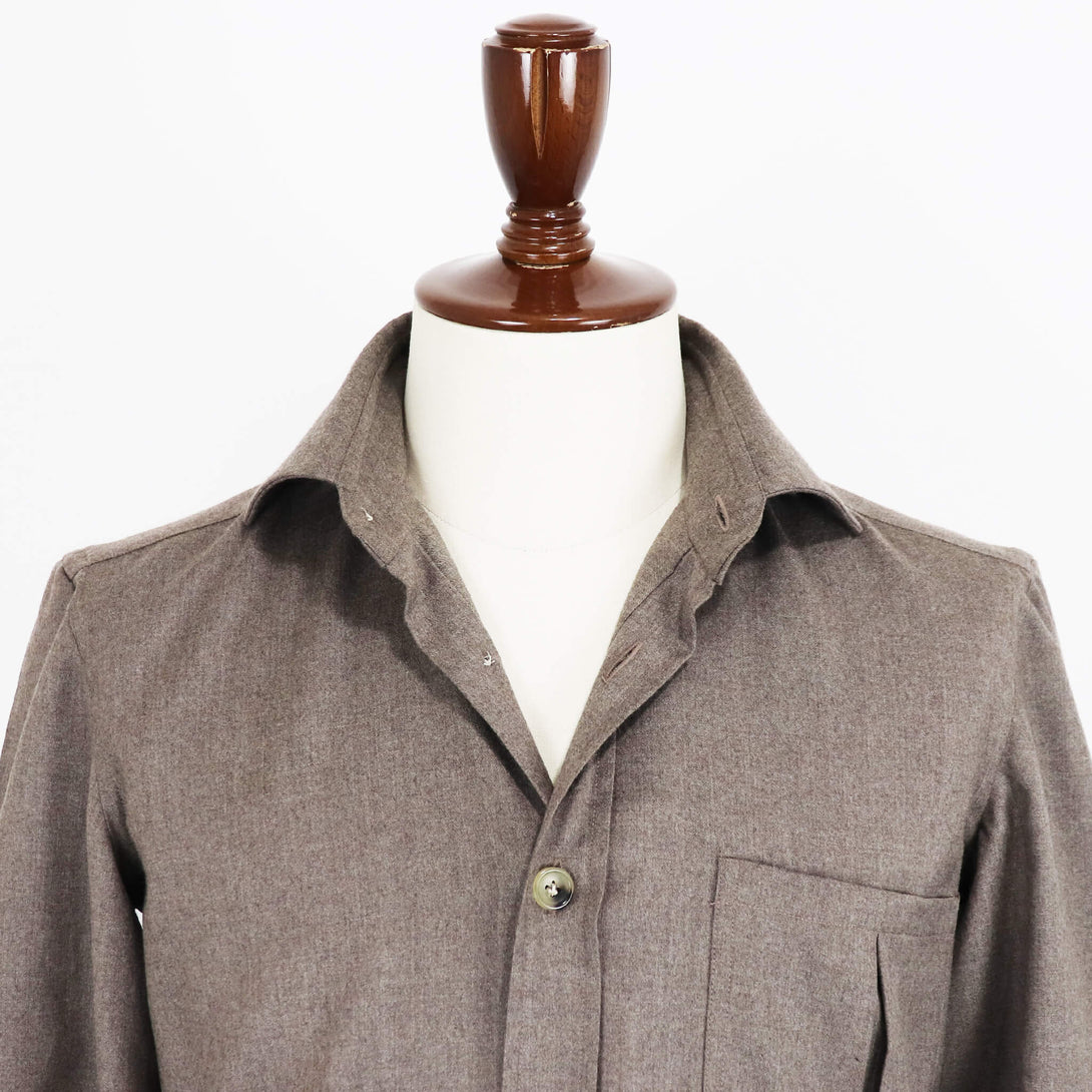 イタリアを代表する自動車メーカー、フィアットの元名誉会長であるGianni Agnelli(ジャンニ・アニエッリ)さんが好んでオーダーしていたシャツを再現したその名もGianni。ウール素材に大きめなボタンを付けシャツアウター的にきれるアイテムになっています。裾をタックインして着てもよし、インナーにハイゲージのニットを着てバサっと羽織るもよし、色々なコーディネートが楽しめる一着となっております。