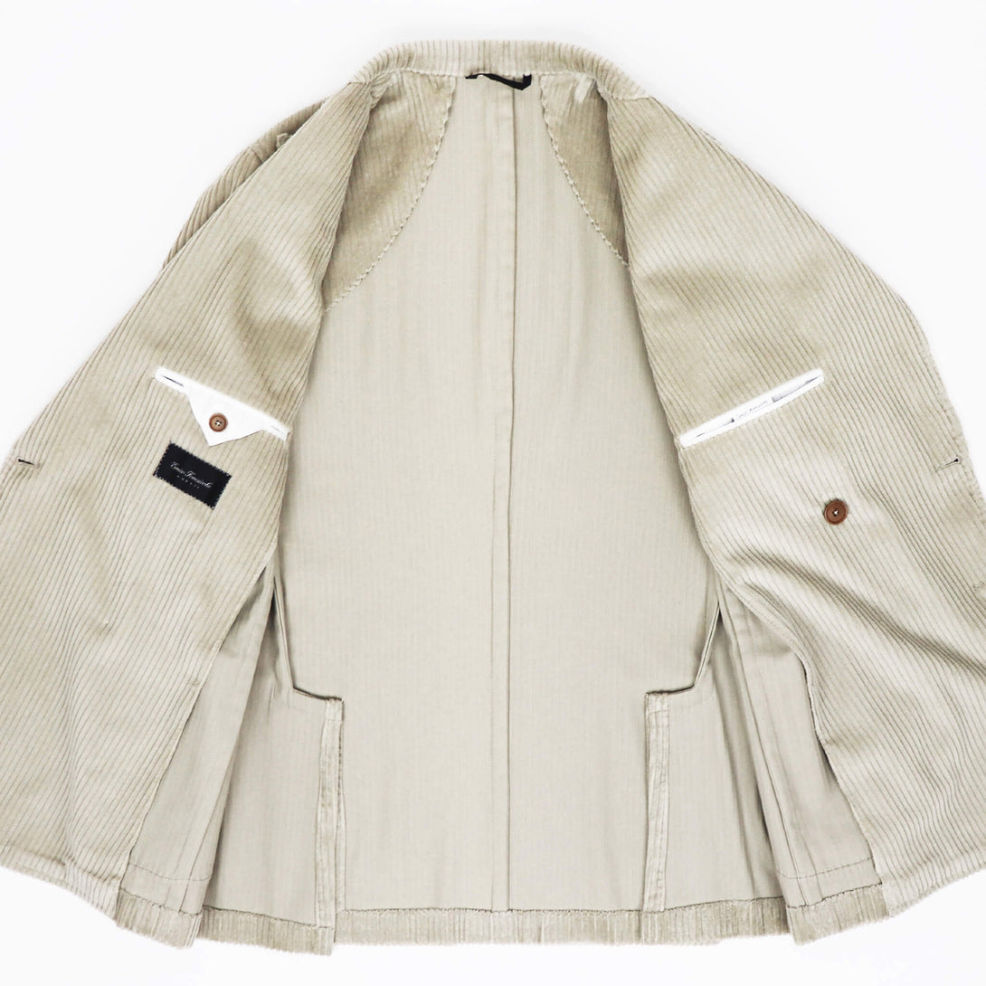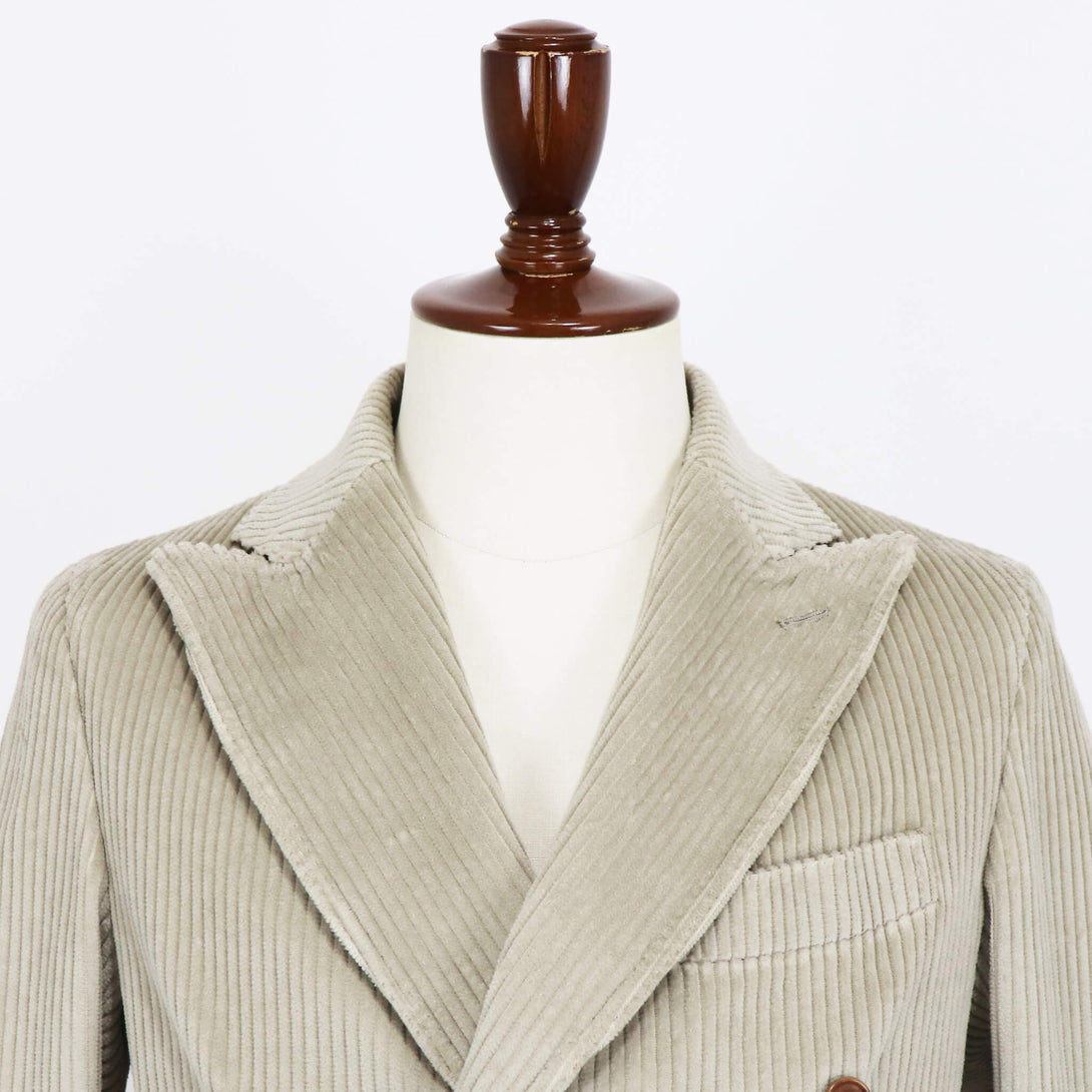 今季はMARCO DPに程よく光沢感のある太畝コーデュロイをチョイス。太畝と存在感のあるカーブした11cmの太ラペルがマッチしたカジュアル感と艶っぽさを兼ね備えたハイブリドなジャケットに仕上がっています。