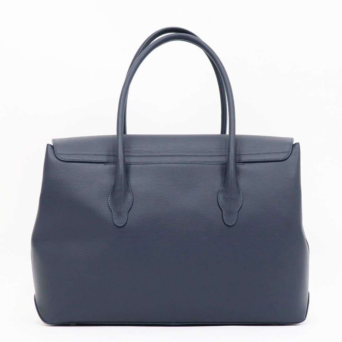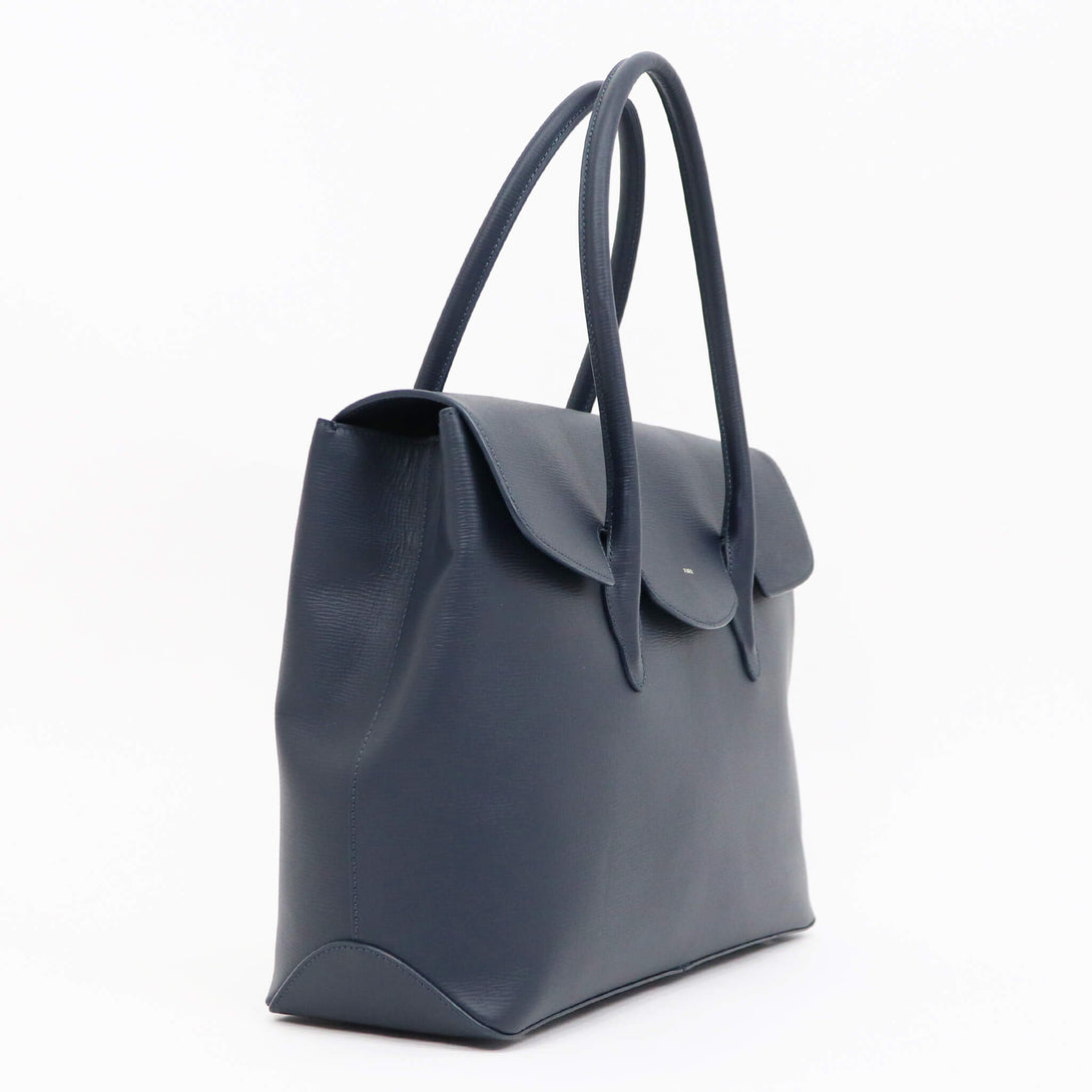 ビジネスシーンに対応するほどよいクラシックさと、ナチュラルで上品な印象を持ち合わせたフラップトートバッグ。オンオフに馴染むデザインと実用性の高いサイズ感で、日常のメインバッグとして最適なバランスです。しっかりマチのある作りは収納力も高く、一泊程度のトラベルシーンにもおすすめです。
