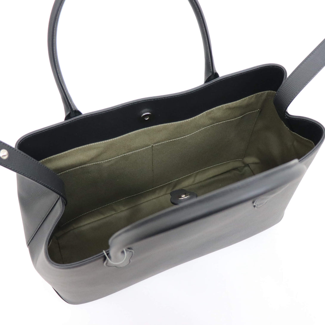 ビジネスシーンに対応する程よいクラシックさと、ナチュラルな印象を持ち合わせた広口のトートタイプ。オンオフに馴染むデザインと実用性の高いサイズ感で、日常のメインバッグとして最適なバランスです。しっかりマチのある作りは収納力も高く、一泊程度のトラベルシーンにもおすすめです。