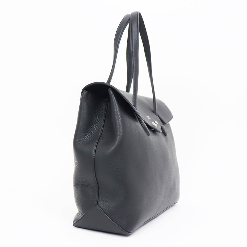 素材の良さと仕立ての良さを感じられるシンプルなフラップトートバッグ。メイン収納部はB4サイズに対応し16インチ程度までのPCの収納も可能。1泊程度の旅行や出張にもお勧めです。フラップは片手で簡単に脱着が出来る金具を採用。クラス感のある重厚な雰囲気と機能性を融合させました。