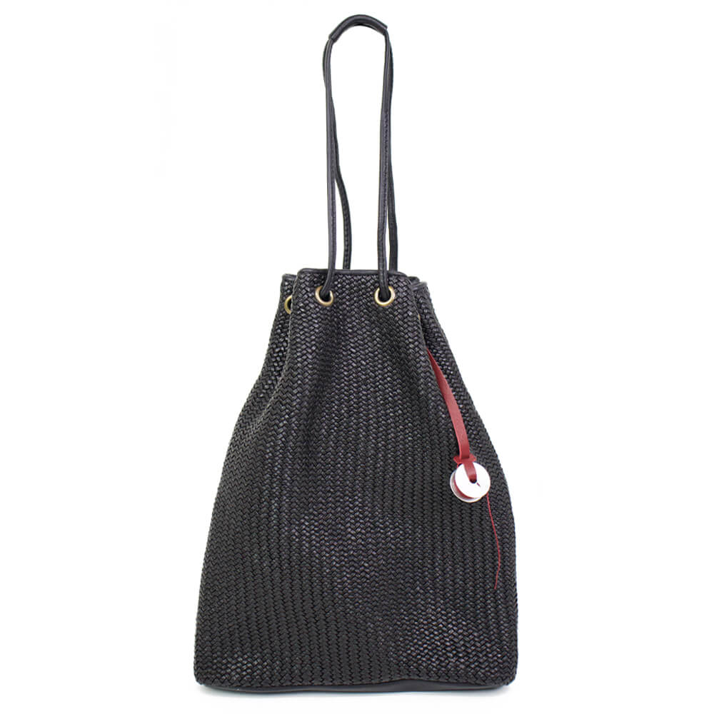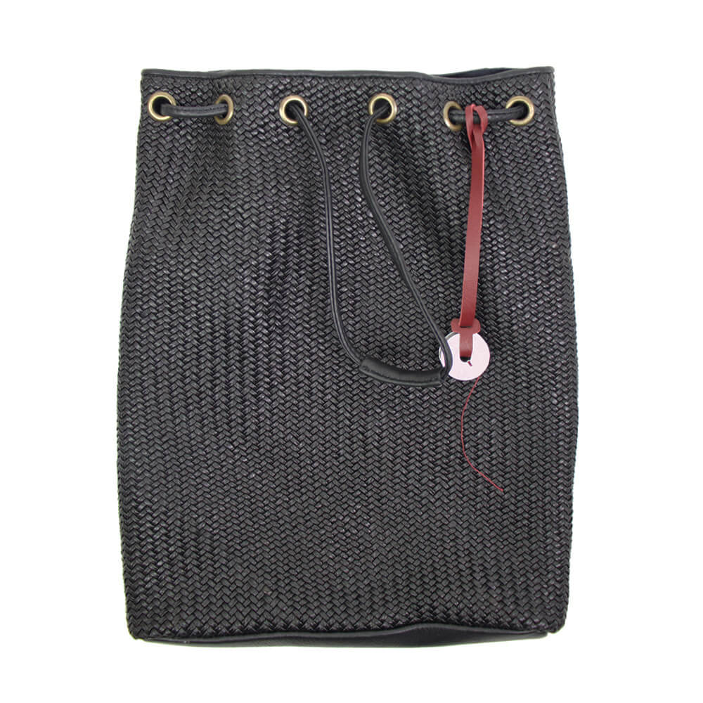 FATTORIA del CUOIO(ファットリアデルクオーイオ)イントレチャート 巾着 レザーバッグ【ブラック】国内正規品