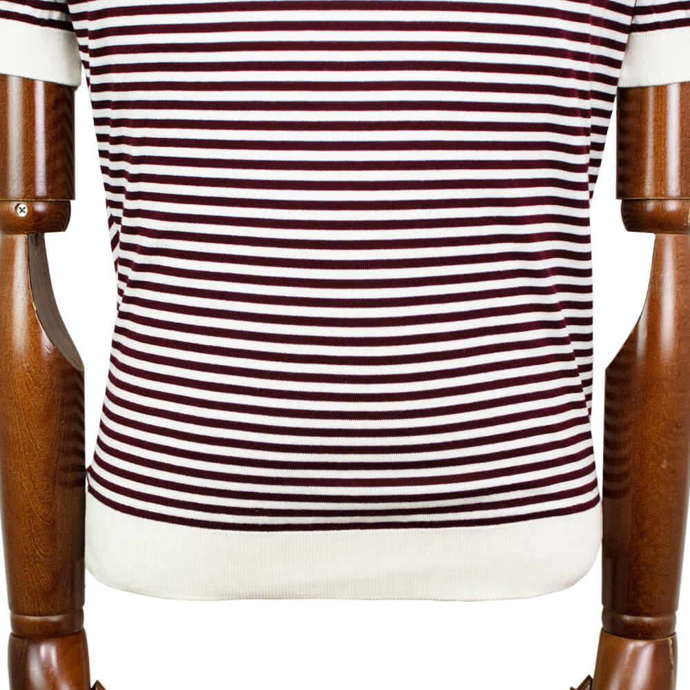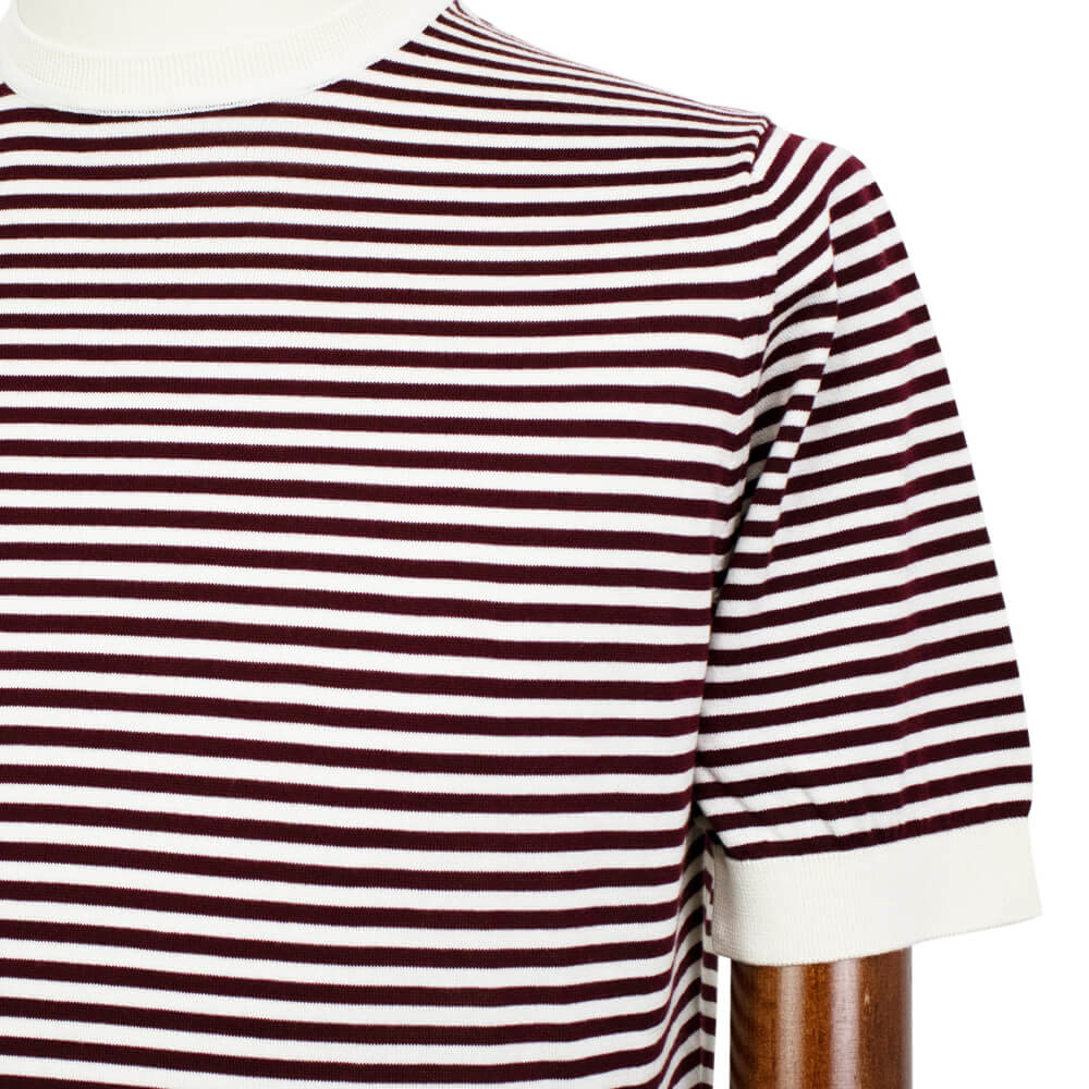 FILIPPO DE LAURENTIIS(フィリッポ デ ローレンティス)ボーダー柄 ハイゲージ コットン ニット Tシャツ【ホワイト×テラコッタ】国内正規品
