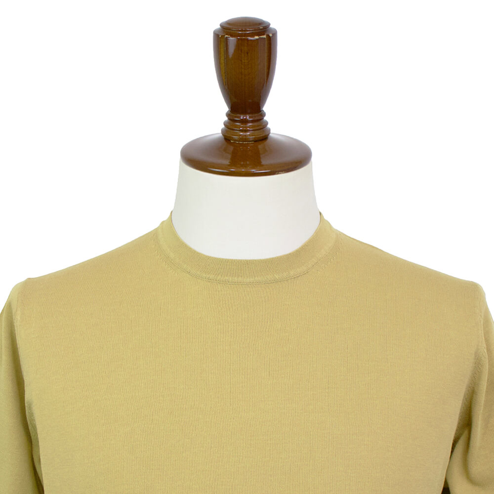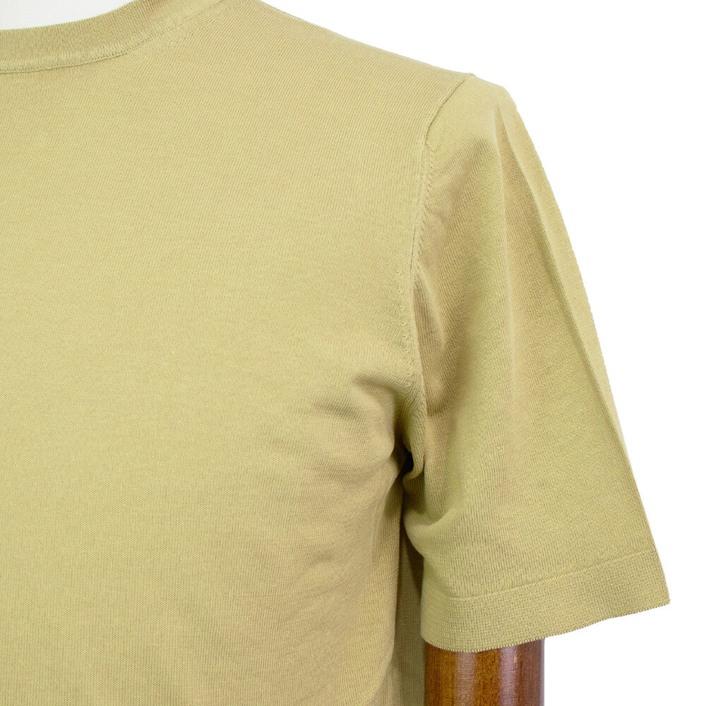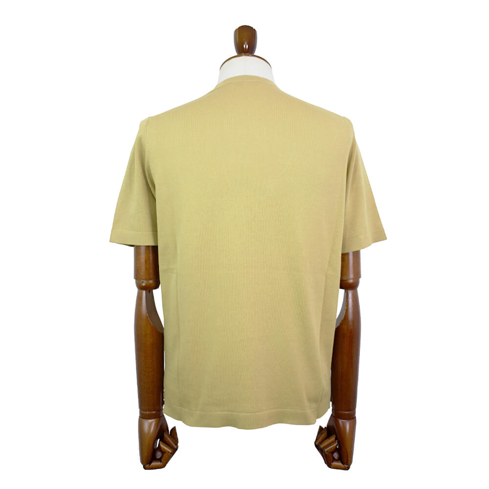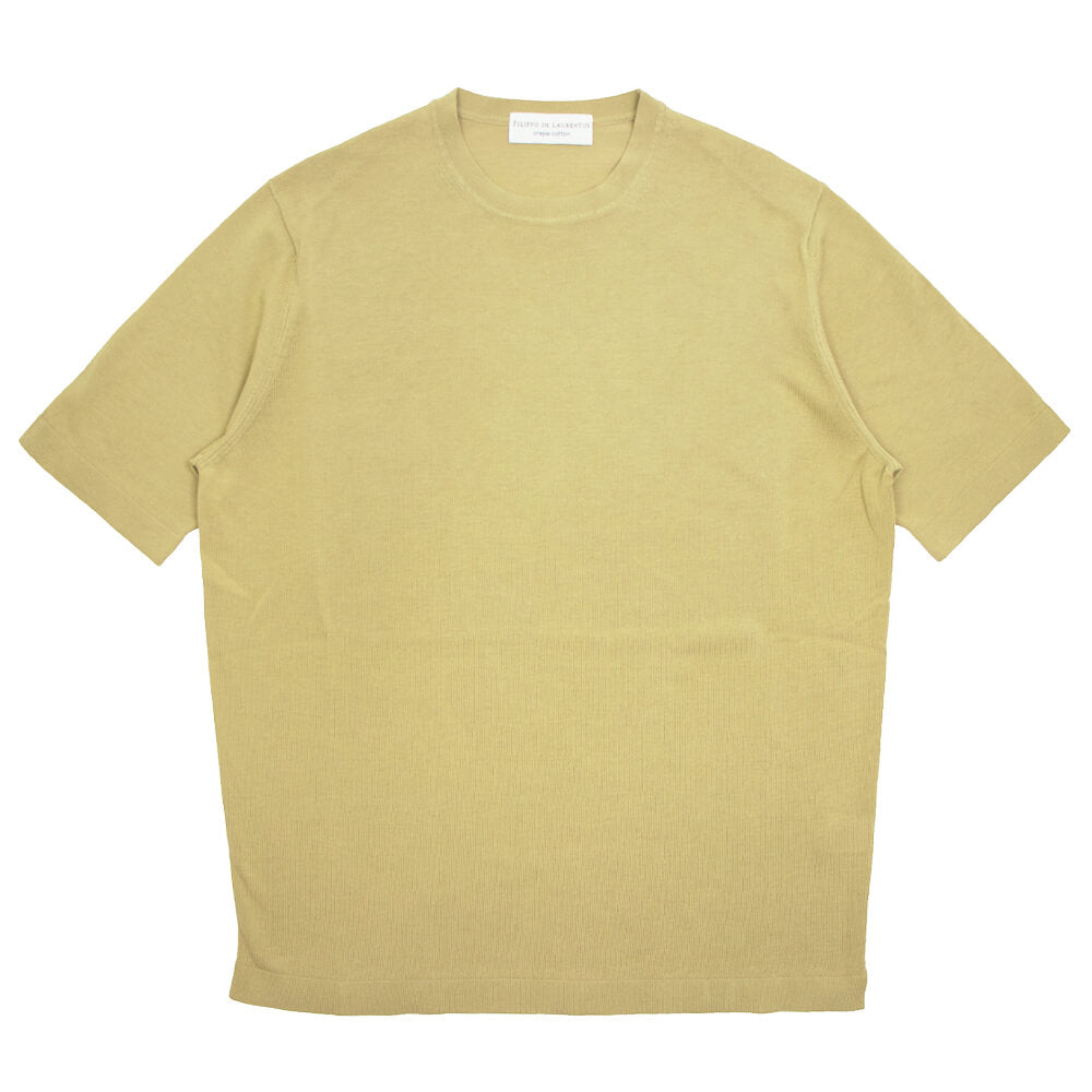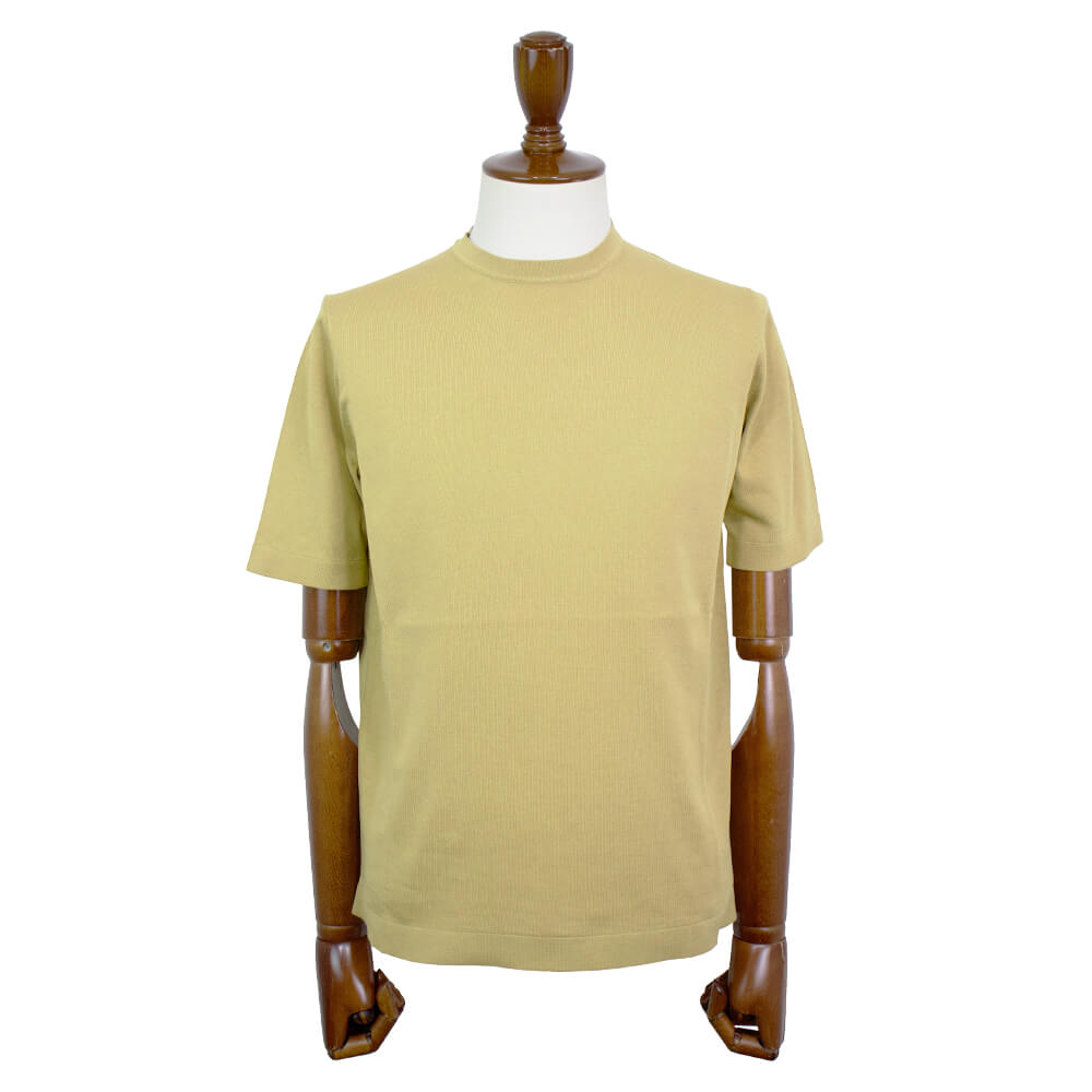 Tシャツスタイルを大人のスタイルに格上げしてくれるニットTシャツが届きました。細く強撚りされた上質なコットン糸で編まれた、サラリとした質感が魅力の「クレープコットン」と呼ばれる生地で仕上げられたシンプルなニットTシャツ。上質なコットン糸を使うことで素材の持つ艶感と柔らかな質感が合わさり、ラグジュアリーな雰囲気を作り上げてくれます。ニットならではの通気性の良さとサラリとした質感で、真夏でも涼しく着ることができるTシャツに仕上がっています。