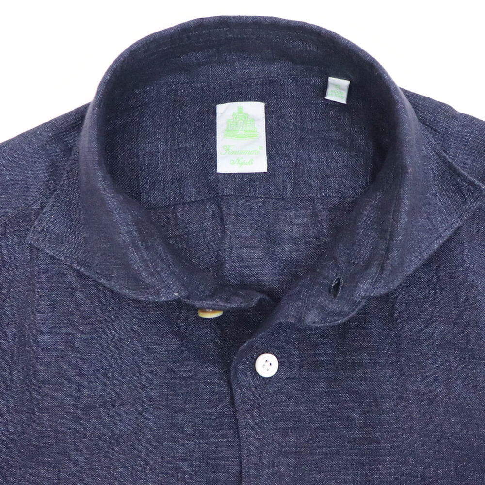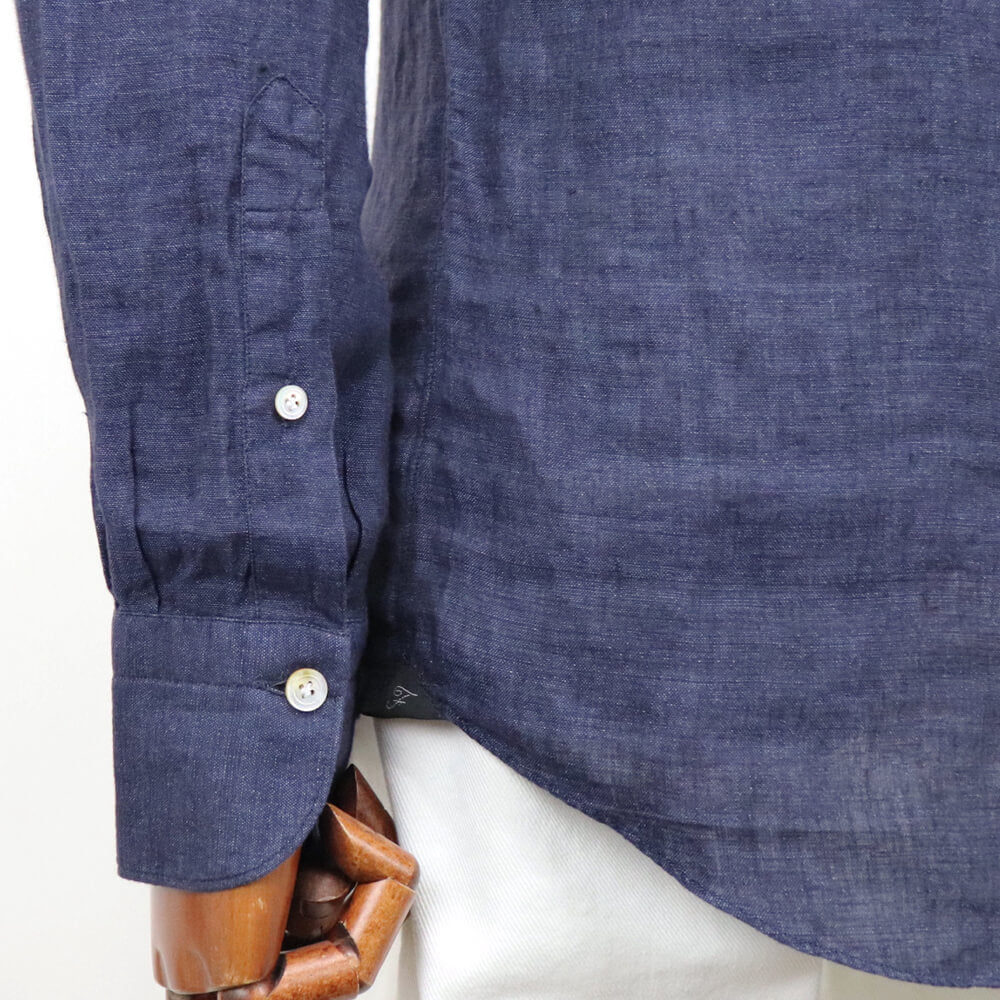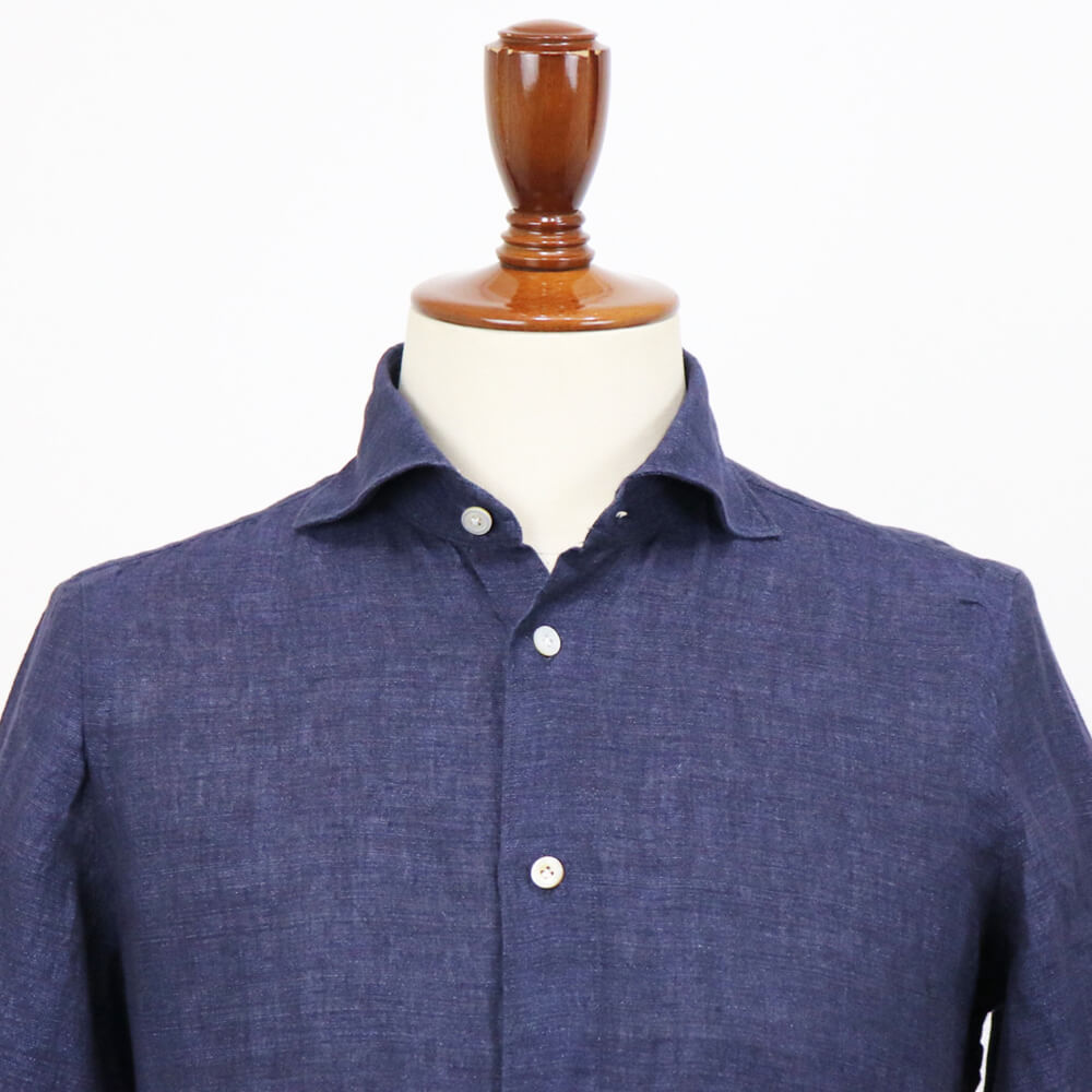 夏にピッタリな、リネン100%を使用したFinamoreのシャツがイタリアより届きました。襟型は、ブランドを代表するカッタウェイ「SIMONE」をセレクト。イタリア、ナポリらし襟型は、大人が着て一枚でサマになる、大人が着るべき一着となています。シルエットは、スリムなフィット感で男性的な美しいボディラインとなっています。