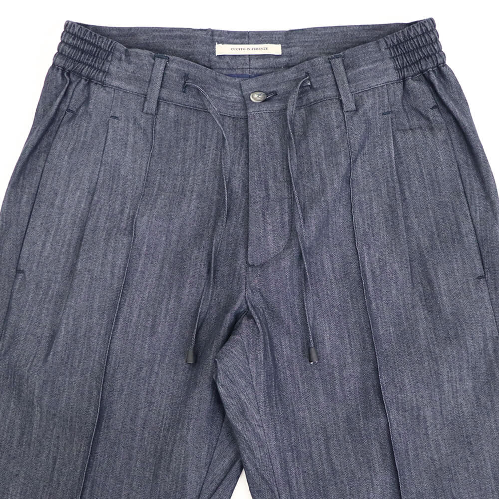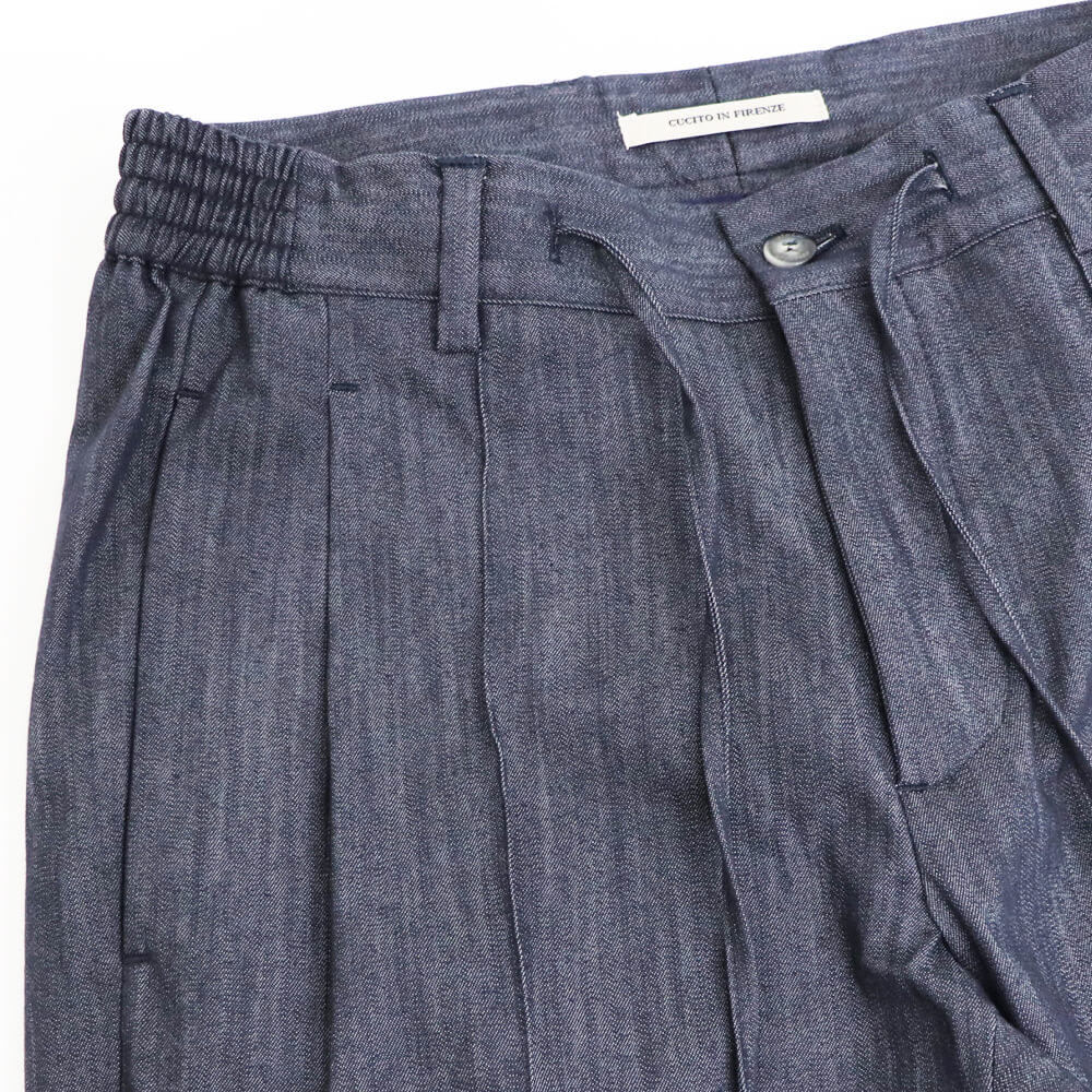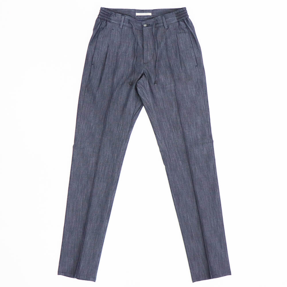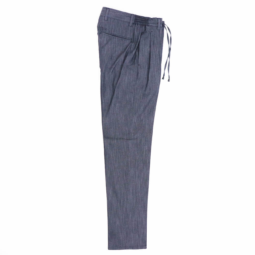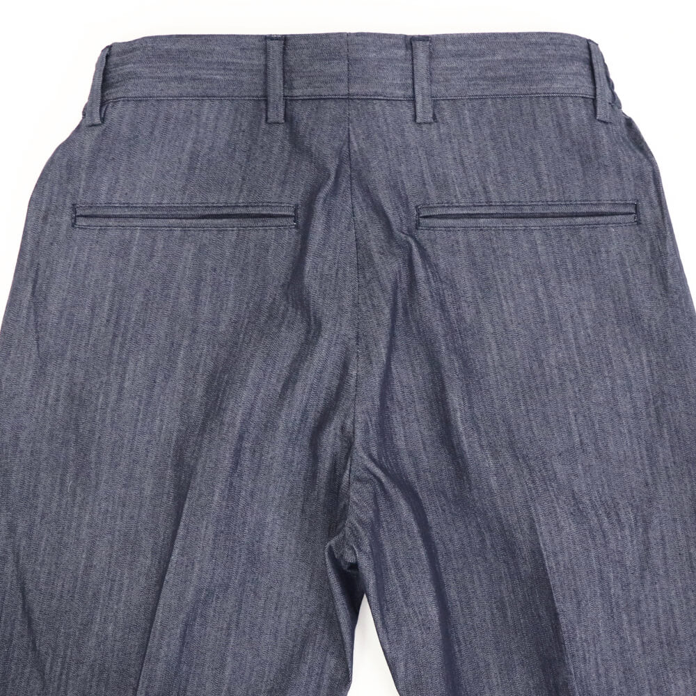 定番のマサッチョをモデルにしたマサッチョR1モデル。マサッチョを1プリーツにしたモデルです。綺麗なシルエットはそのままに、腰回りに程よいゆとりをもたせ大人が履きやすいシルエットになっています。ドローコードを中に落とせばベルトをしての着用も可能。ウエストシャーリングもリラックスして着用できます。センタークリース付きなのも足が綺麗に見えますね。
