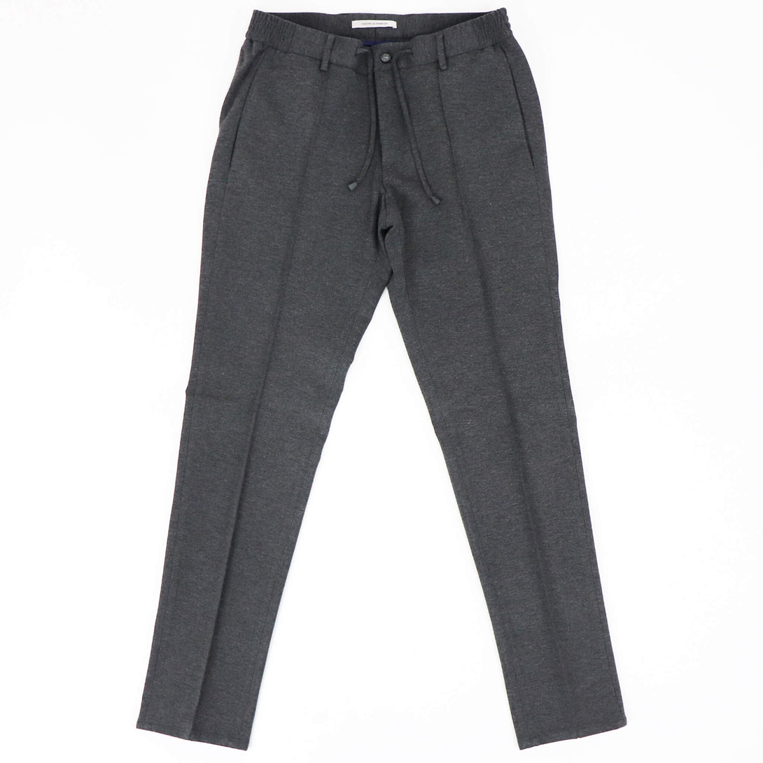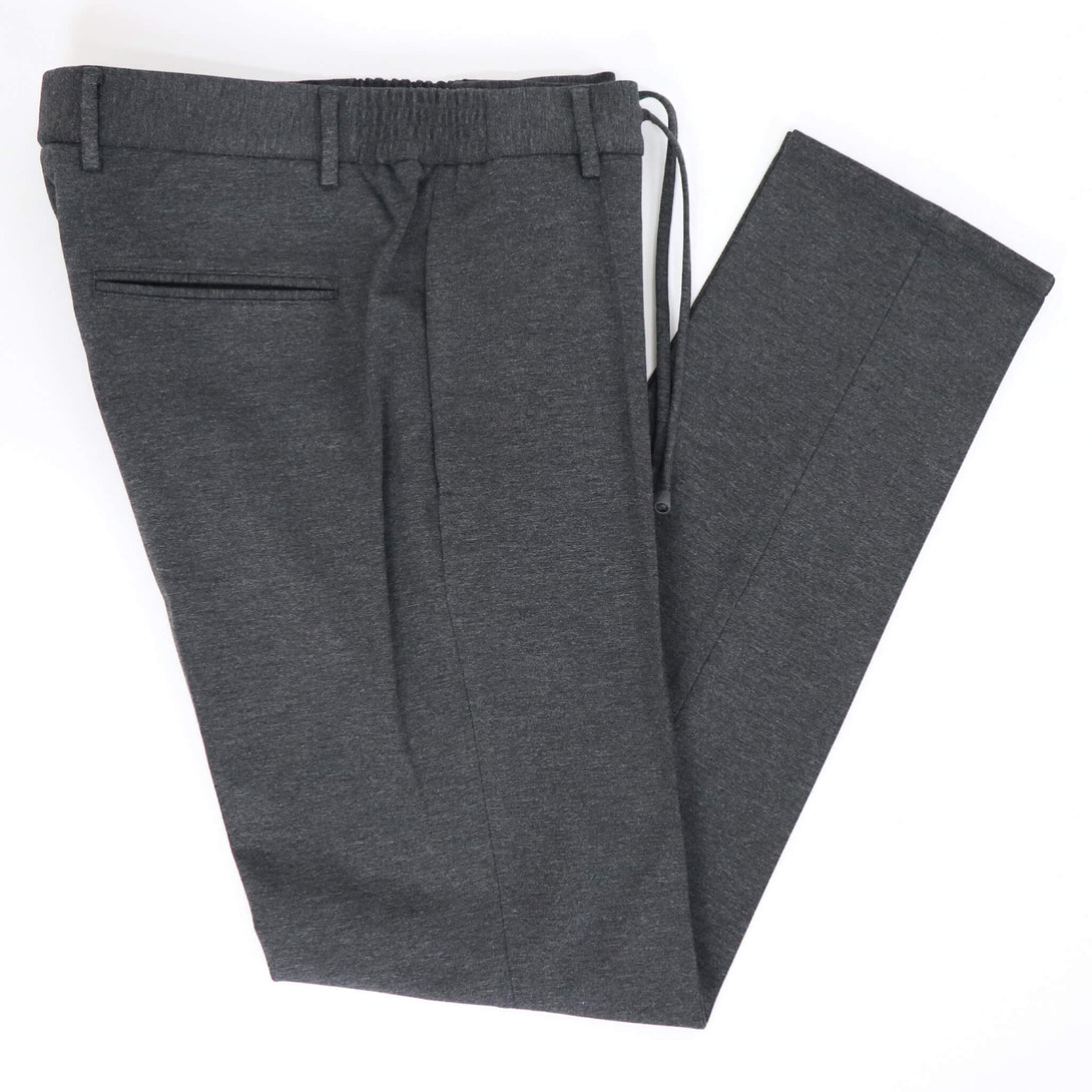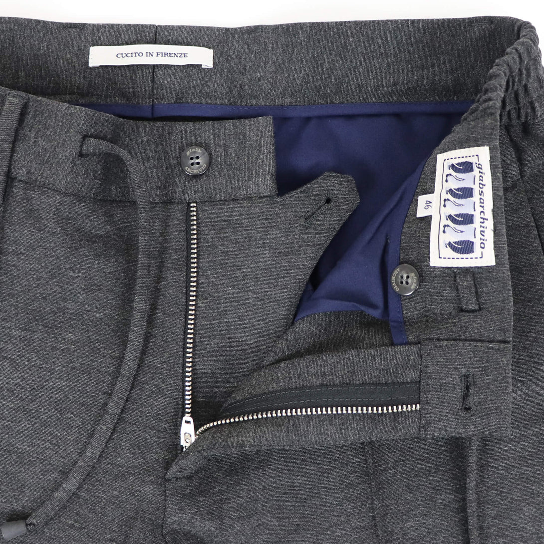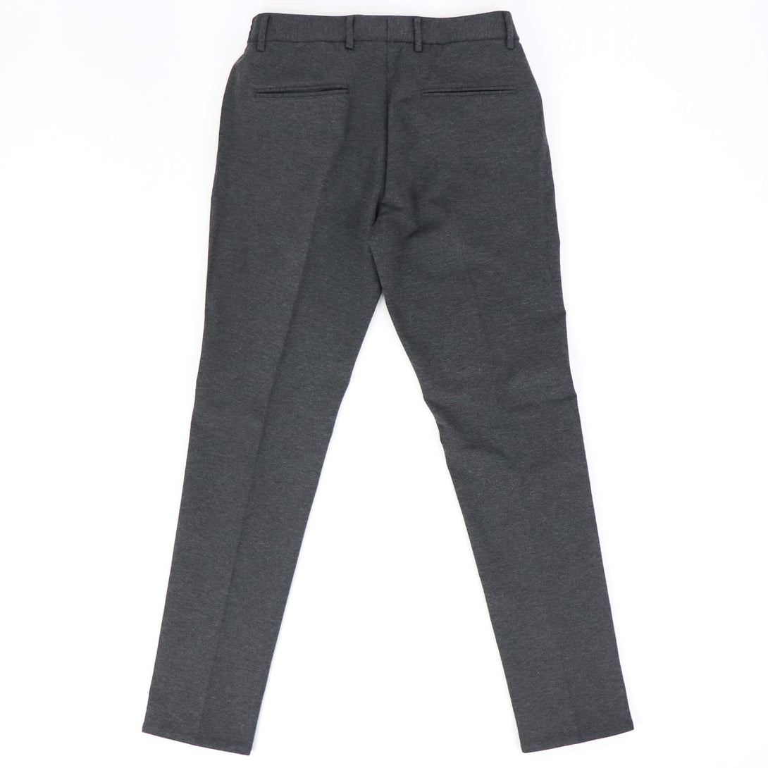 giabsarchivio(ジャブスアルキヴィオ)の人気モデル「MASACCIO / マサッチョ」生地はgiabsではお馴染みの、打ち込みがしっかりしているので適度な肉感と張り感があり、ジャージー素材特有の高い伸縮性も実現しています。これによりストレスを感じる事なく快適な穿き心地に仕上がっています。ジャージー素材によくある膝が出やすいという難点は抜群のキックバックにより解消されています。このモデルの最大の特徴はやはりフロントに入ったクリースですね。このクリースにはタタキが施されているのでアイロンをかけなくても半永久的にクリースが入ったままです。これにより縦のラインが強調され、スリムテーパードの美しいシルエットがより際立ちます。さらに脚を長く見せる効果もあり穿くだけでスタイルアップに一役かってくれます。