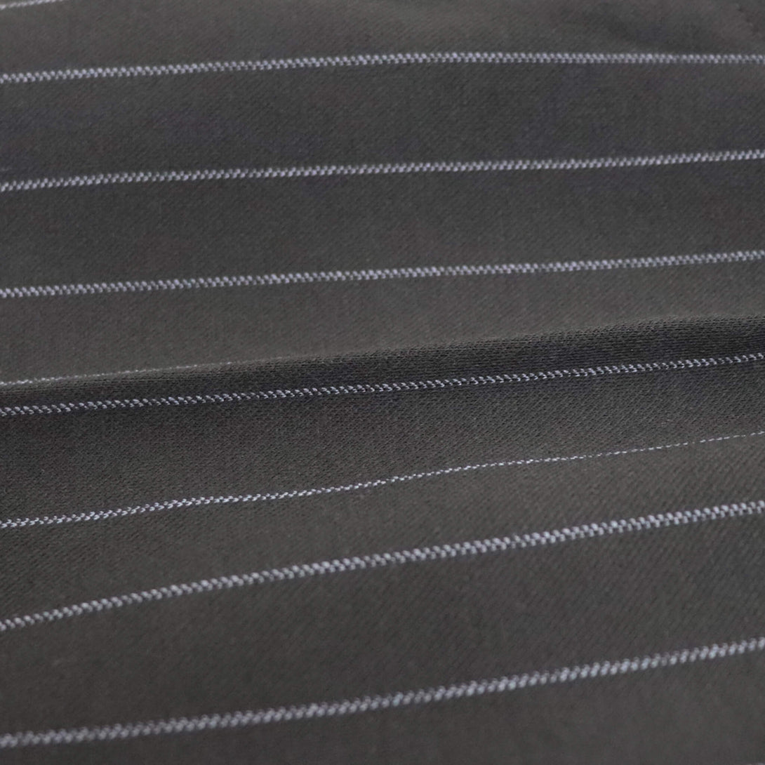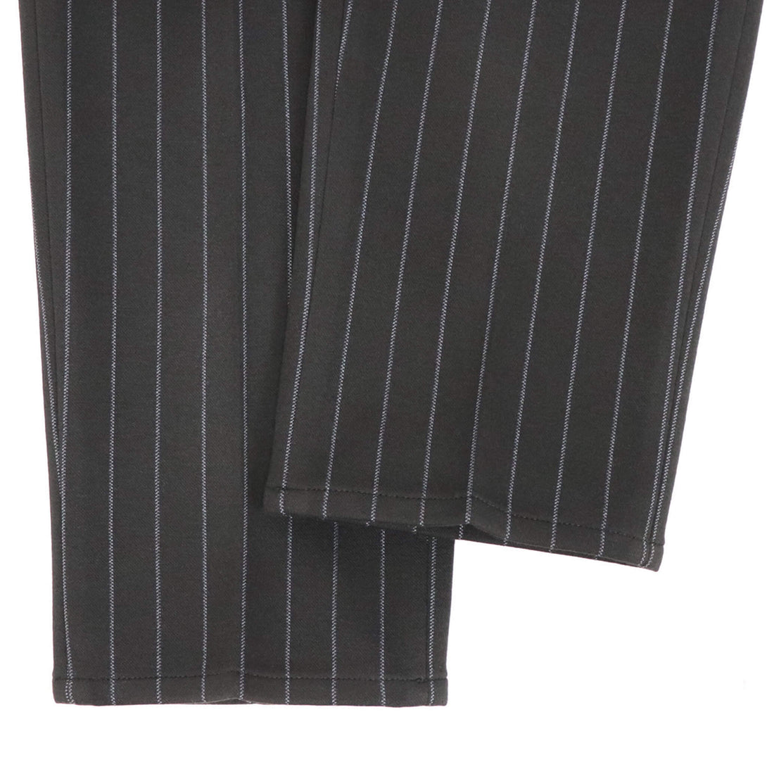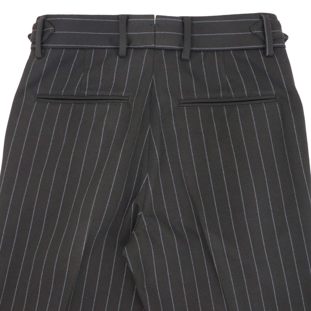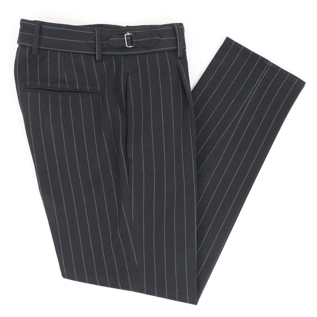 giabsの数あるモデルの中で、あまり聞き馴染みがないと思われる、VIRGILIO(ヴィルジリオ)今季は、クラシックなディテールに、機能性のあるジャージー素材を使用したモデルとなっています。ホールド感のある太めのウエスト部分に、両サイドのサイドアジャスター付き、ウエストフロント部分にはワンプリーツ、腰回りと太ももはややゆったり目のフィッティングと裾にかけてのテーパードシルエットが特徴のエレガンで美脚効果抜群のパンツとなっています。素材はgiabsと言えばのジャージー素材で、今季は特に注目のストライプ柄。スーツでは馴染みのあるチョークストライプをジャージー素材で表現。カジュアルで大人なスタイリングにキマる一本です。