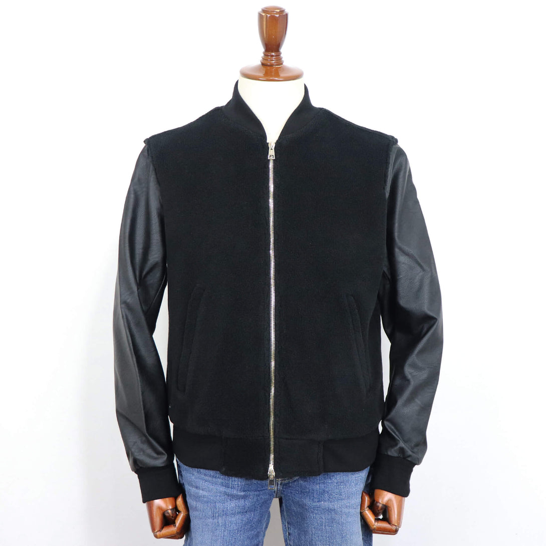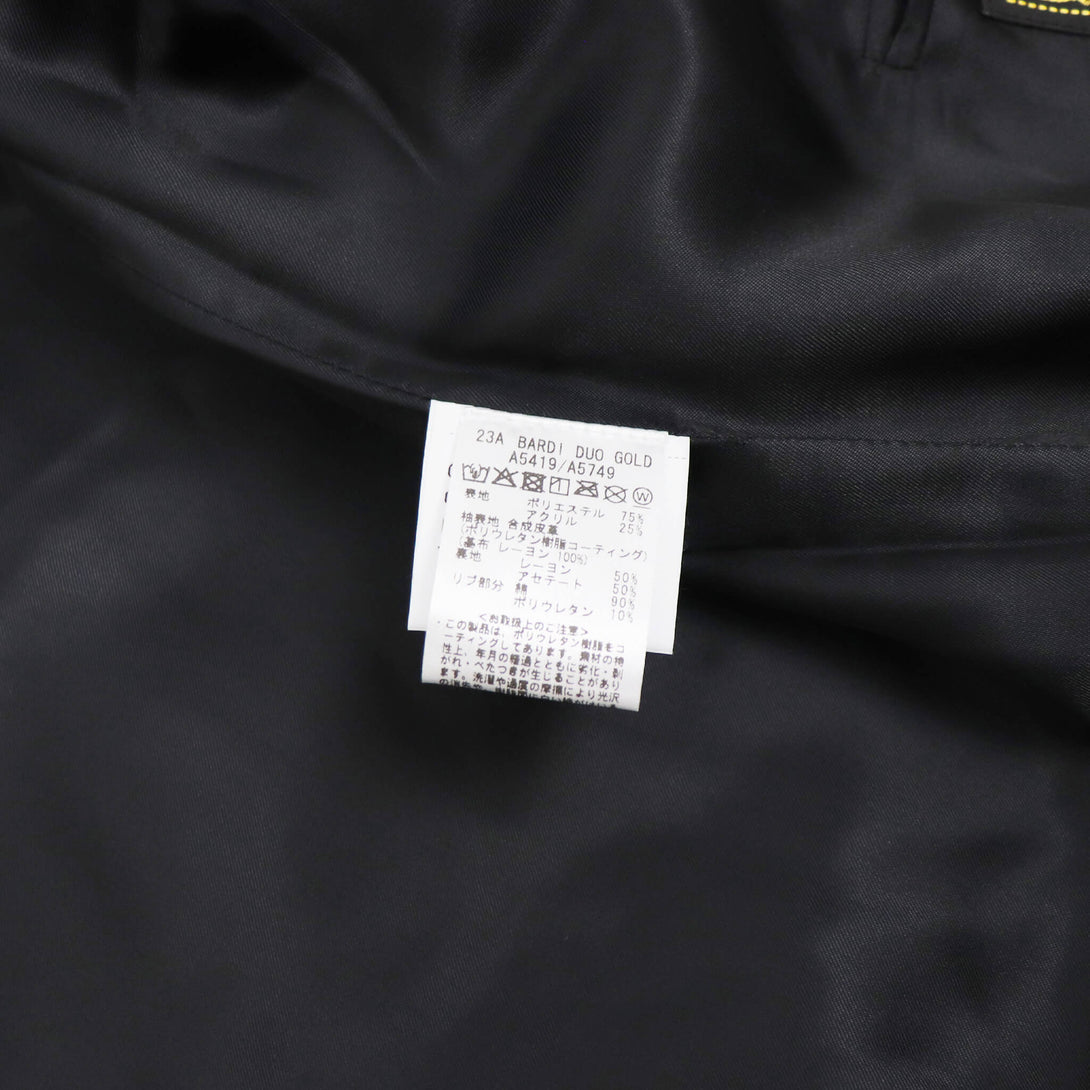 - 素 材:表地:ポリエステル75% アクリル25% 袖表地:合成皮革 裏地:レーヨン50% アセテート50% リブ部分:綿90% ポリウレタン10%