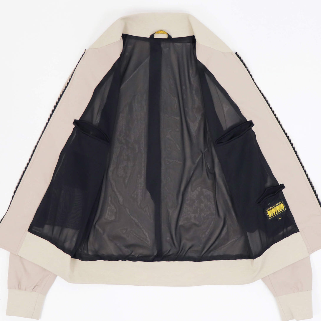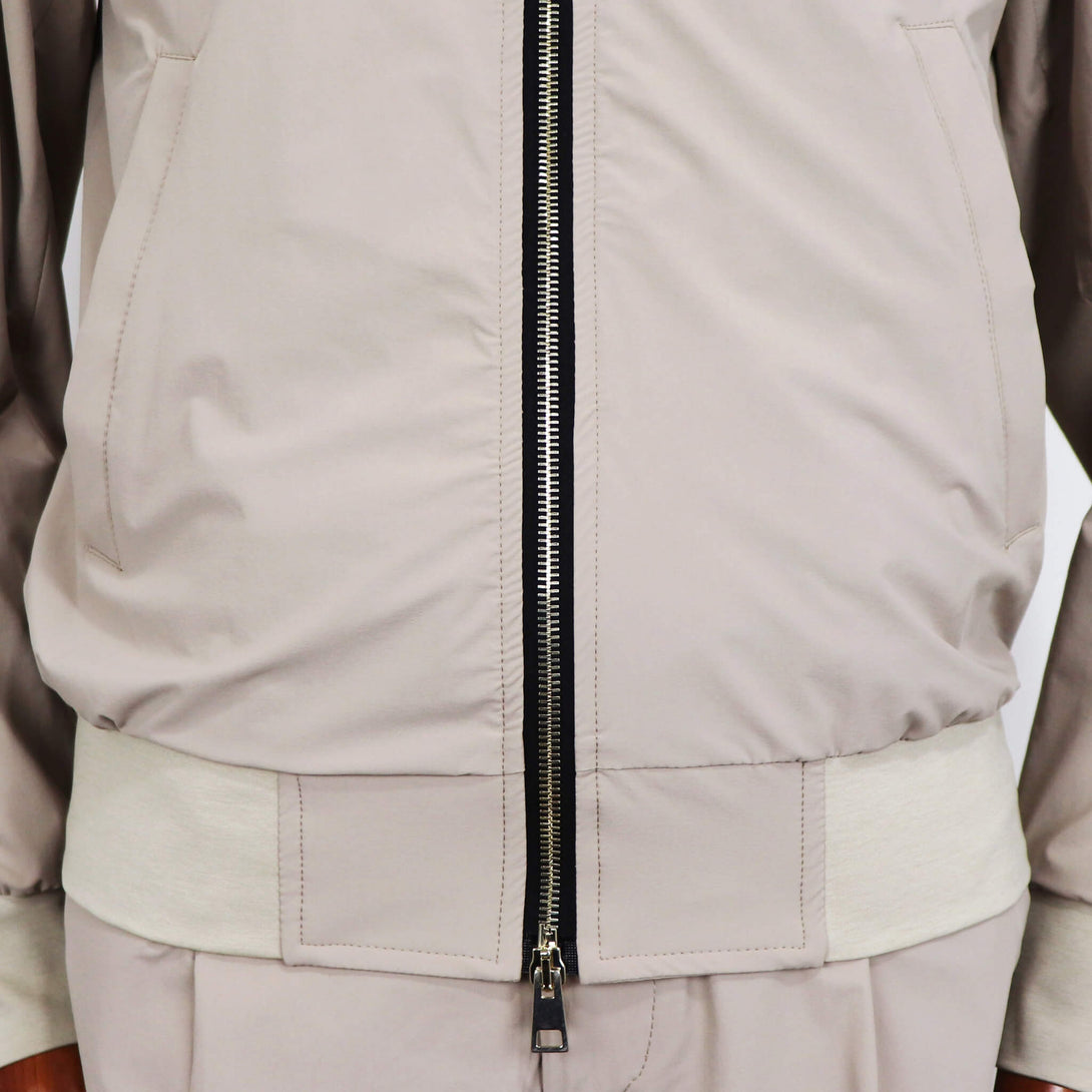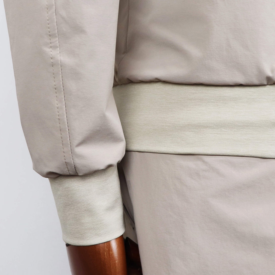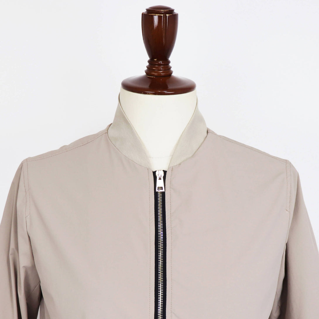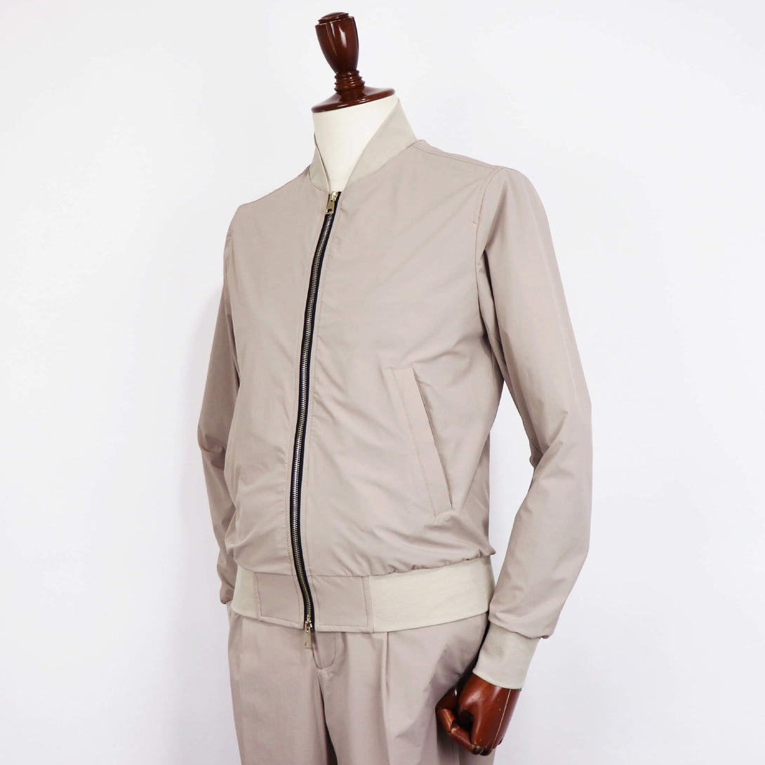 この春注目のセットアップ。ドライタッチナイロンを使用したMA-1タイプのブルゾン。上品且つシンプルにMA-1をアップデート、裏地は通気性のいいメッシュ素材に。重ね着もストレスなく着用が可能となってています。ナイロンでもストレッチが効いているので、ストレスフリー。春のシーズン立ち上がりから着用できる、春、秋シーズンに欠かせない1着となります。またジップのカラーがゴールドになりますが、悪目立ちしない上品さがあるので、コーディネートにしっかりと馴染みます。大人の休日に欠かせないセットアップブルゾンになるのではないでしょうか?!
