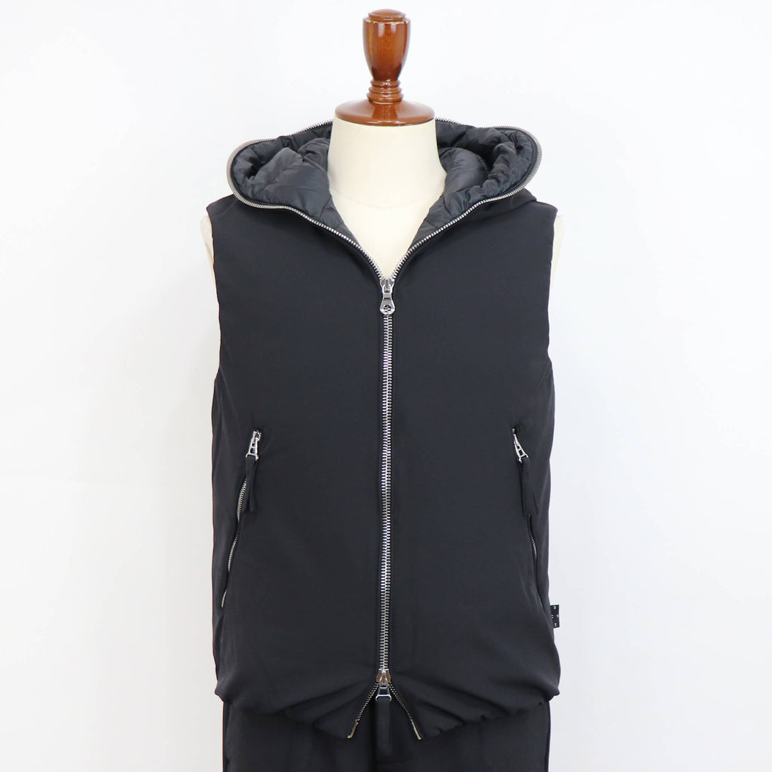 今季注目のアイテム、ハイグレードダウンブランドDUVETICAとコラボレーションした進化系ダウンコレクション。Giabsarchivioらしいテクニカルなナイロンファブリックを採用。フロントのメタルファスナーをキーアクセントに、表にはダウンステッチを一切見せない、軽快感あふれる一着になっています。生地には、A5772 SILENT TWILL サイレントツイル。ブランドらしいテクニカルなコンフォートナイロンストレッチ素材。薄手ながらふっくらとしたソフトなタッチが秋冬らしく、縦横ストレッチが様々な動きに追従します。また、無地調の静かなツイル目面が強度を高めつつカジュアル感を軽減し、シーンを選ばず大人らしいシャープさを演出します。