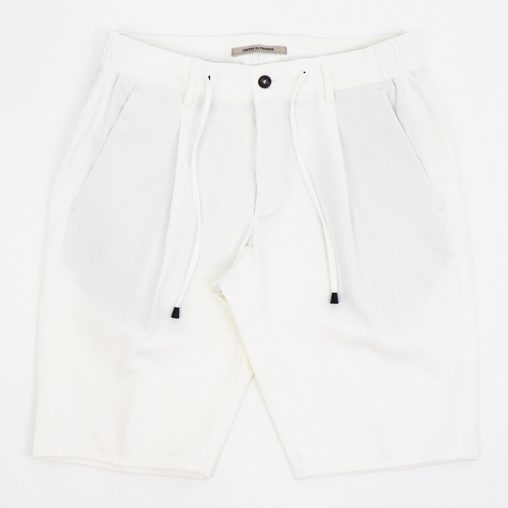 定番のジャージー素材を使用したショーツ。ウエストのドローコードと両サイドのゴムシャーリングディテールによる快適な腰回り、フロントのワンプリーツによりデザインにニュアンスを加えつつ、ゆとりのあるヒップ周り、絶妙なバランスで膝上丈に仕上げられた大人顔エレガントショートパンツに仕上がっています。