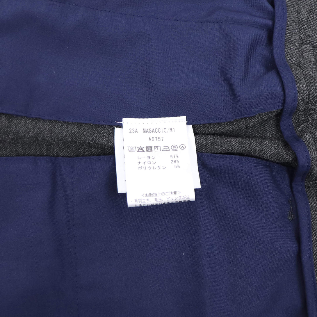 giabsarchivio(ジャブスアルキヴィオ)から夏以外のシーズンに適した MASACCIO / マサッチョが届きました。「カルゼジャージー」と言われる素材は綾目の立ったウールサキソニー素材風で、強度が強くパンツのシルエットを綺麗に見せてくれます。柔らかくストレスを感じない履き心地ですが、型崩れしにくい素材が特徴的で、素材としてはレーヨンとナイロン、ポリウレタンを混紡しておりハリコシの中に適度な柔らかさがあり穿き心地は定番ジャージーと遜色ない仕上がりとなっています。スポーティなスタイリングだけど綺麗めに魅せたい方にはピッタリです。丈はスッキリジャスト丈が一番カッコ良くスタイリッシュに見えます。