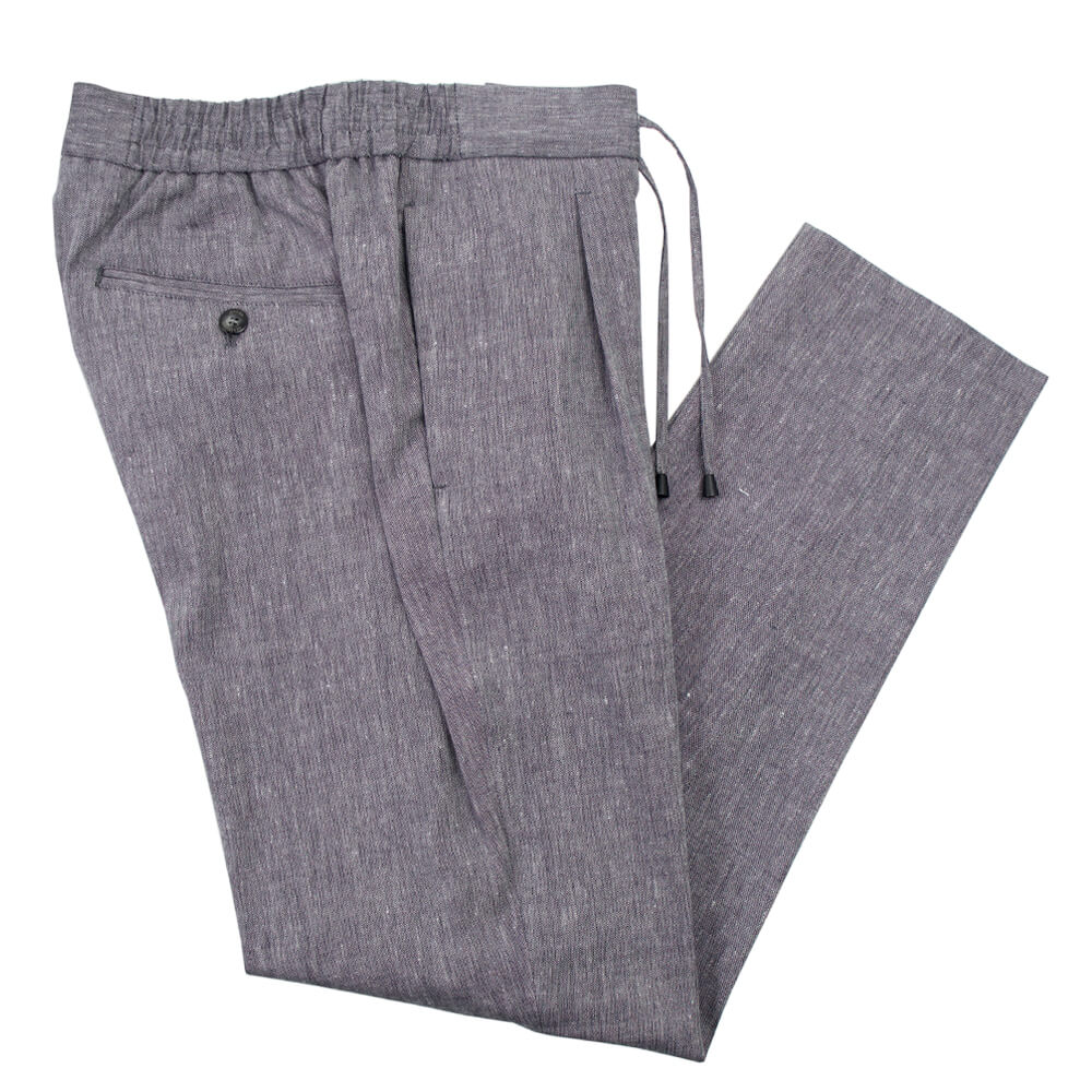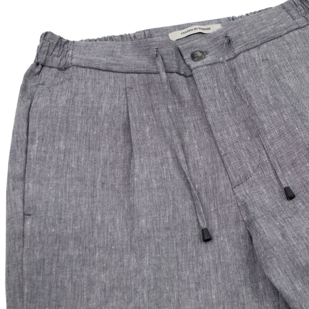 giabsarchivio(ジャブスアルキヴィオ)の新作アイテム、スペースフィットコレクション「TINTORETTO/ティントレット」モデルが入荷しました。ゴムシャーリングのウエストにドローコードを加え、ベルトレスで穿きこなせるリラックストラウザーズ。プリーツ入りのウエスト周り、やや膨らみのあるワタリに膝から裾にかけたのテーパードシルエット。計算されたシルエットによりエレガントな雰囲気も兼ね備えた進化形トラウザーズです。麻(リネン)ベースのストレッチ生地。春夏にピッタリな清涼感ある見た目とキレイな大人カジュアルスタイルや、リゾートスタイルにも合う仕上がりとなっています。
