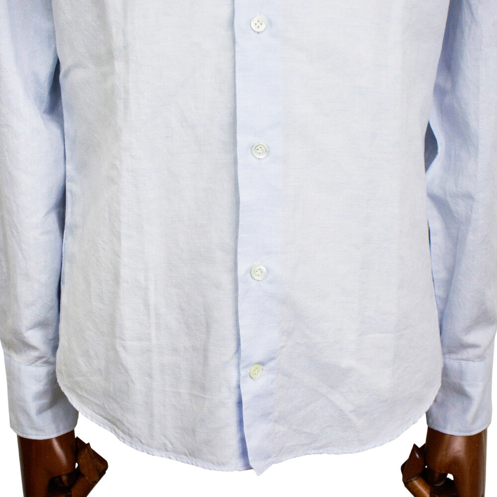 今シーズンも人気のgiannettoコットンリネンシャツが入荷です。コットンリネンのブルー。コットンの扱いやすさとリネンの通気性を併せ持つベーシックな夏の一枚。襟型はジャケットスタイルと良く合うワイドカラースタイルで、ノータイスタイルが良く合うジャケットスタイルの為の一枚。サイズ感は、ヴィンチフィットを採用していますので、着丈を出しての着用がキマる仕上がりとなっています。