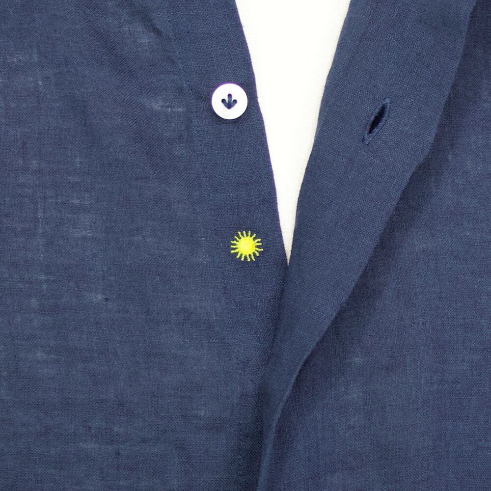 ふんわりと立体感のあるカッタウェイカラーの襟型は非常に表情豊かで、色気すら感じるあたりはさすが南イタリアのブランドと言った感じです。第二ボタンまで外せばお馴染みの太陽のアイコンが刺繍されており、ラフに着用する中にもワンポイントのアクセントになっています。