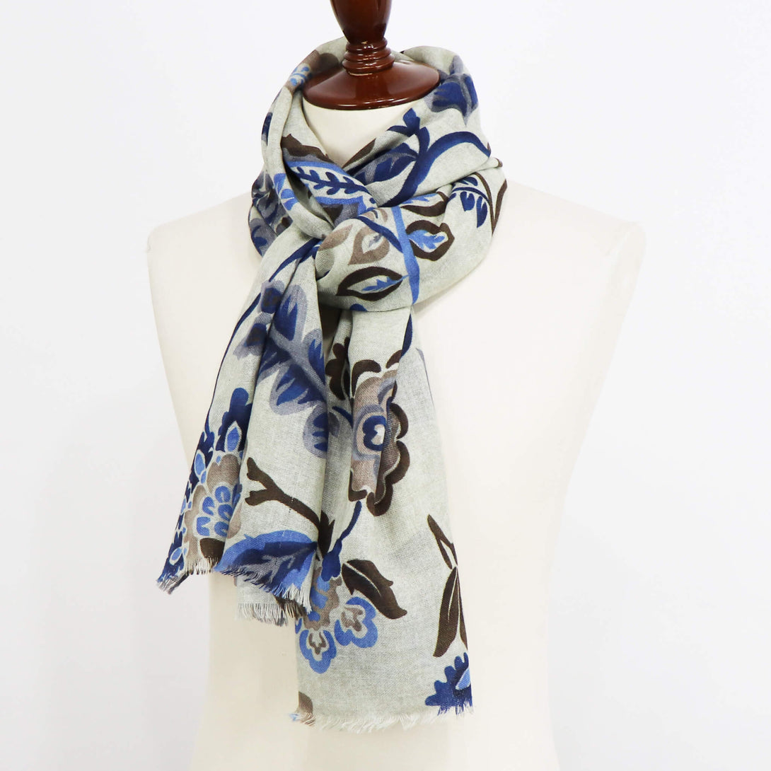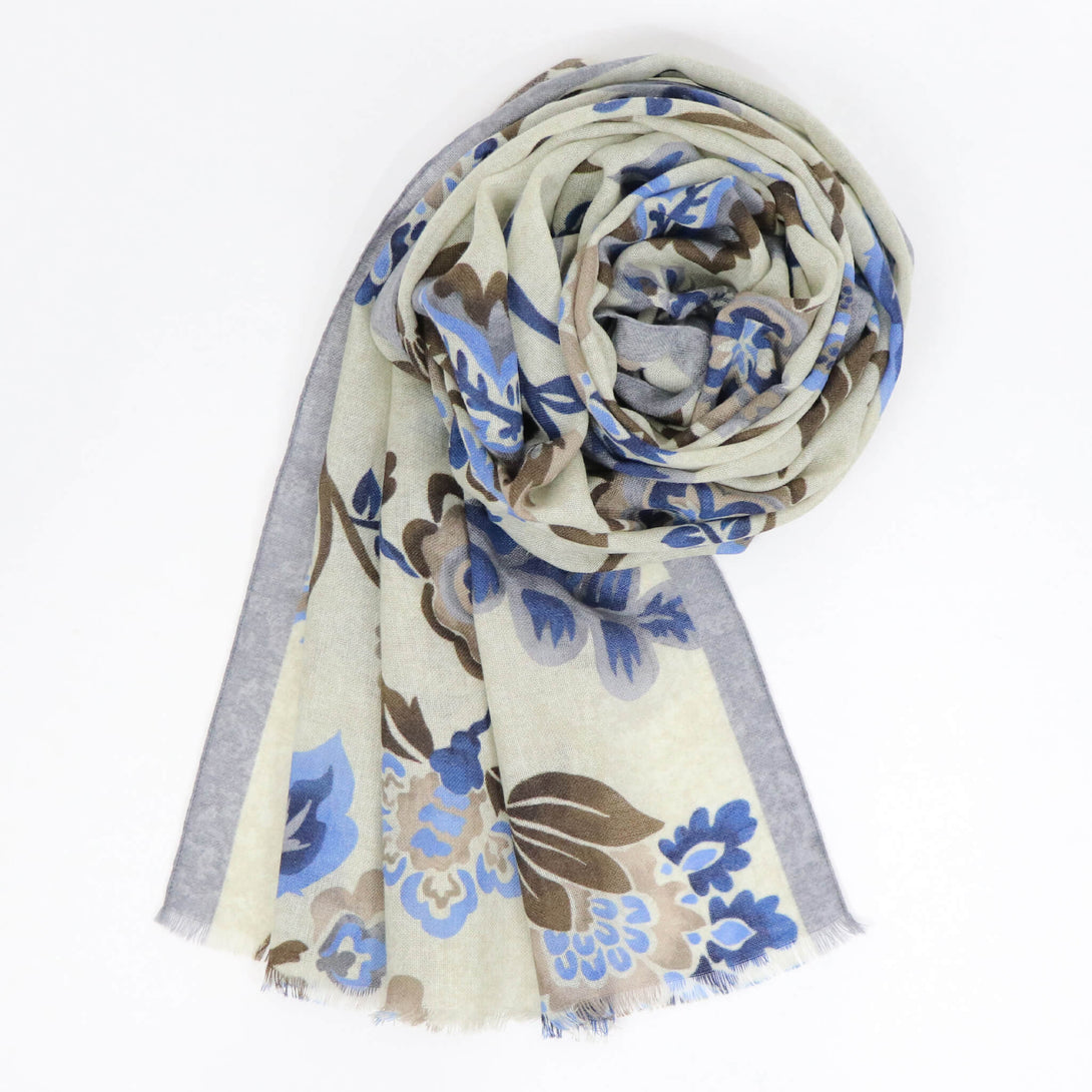肌触りのいいイタリアメイドのウールストール。さらっとしていてなおかつ滑り感もあり、大判でありながらボリュームがですぎないので使い勝手が大変よくクラシックな柄がコーディネートに華を添えてくれます。