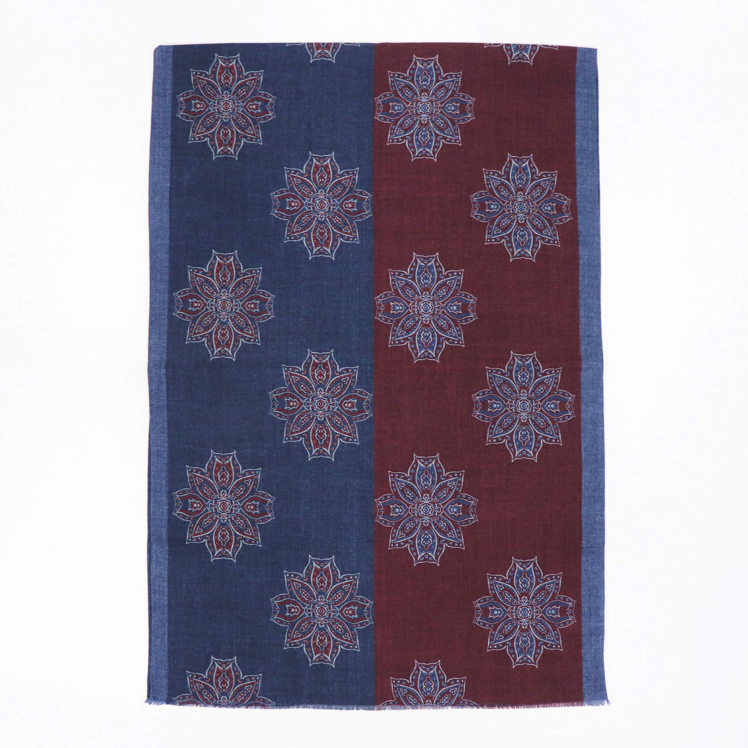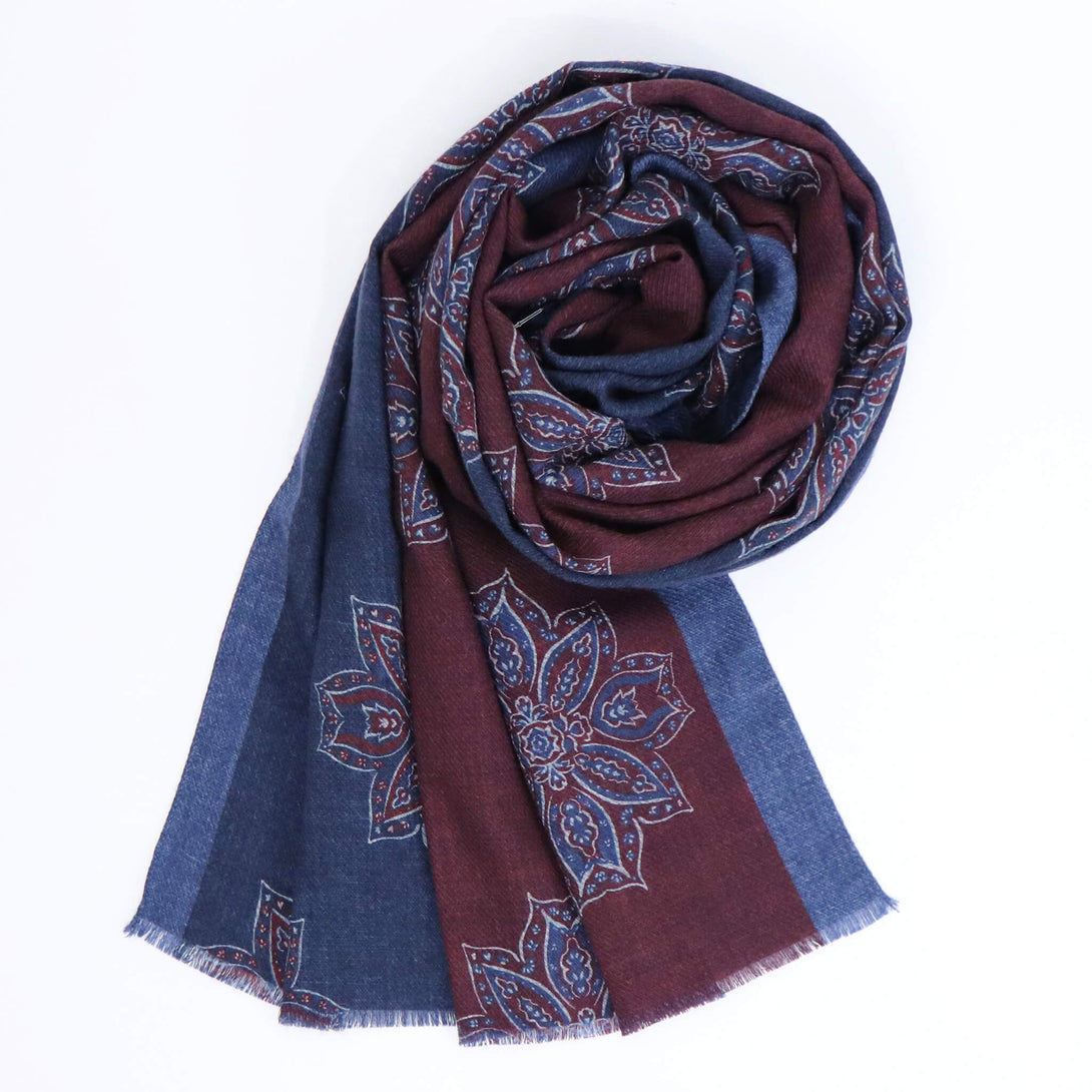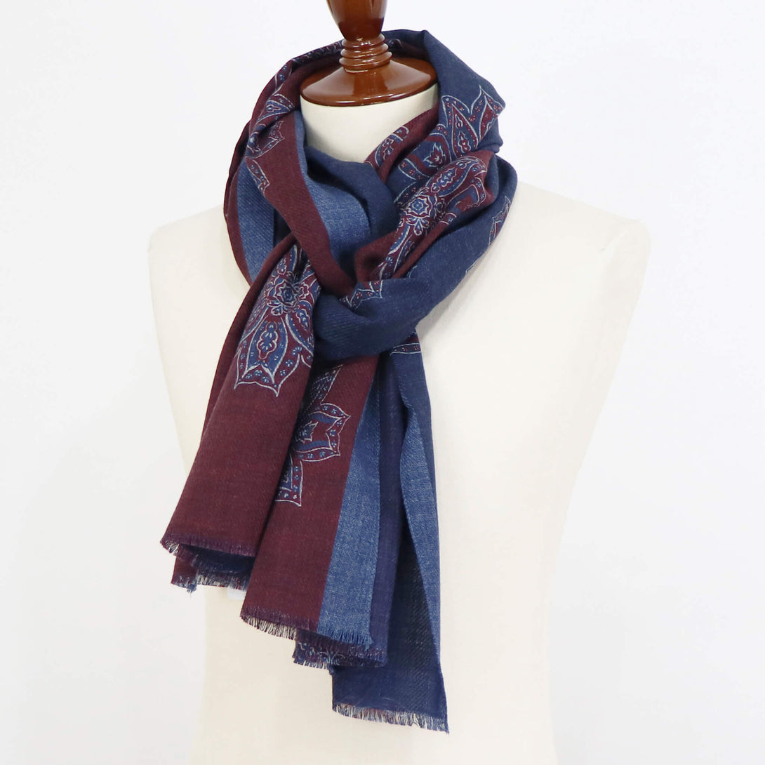 肌触りのいいイタリアメイドのウールストール。さらっとしていてなおかつ滑り感もあり、大判でありながらボリュームがですぎないので使い勝手が大変よくクラシックな柄がコーディネートに華を添えてくれます。
