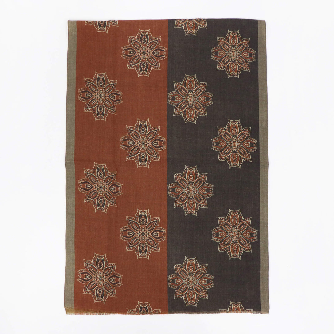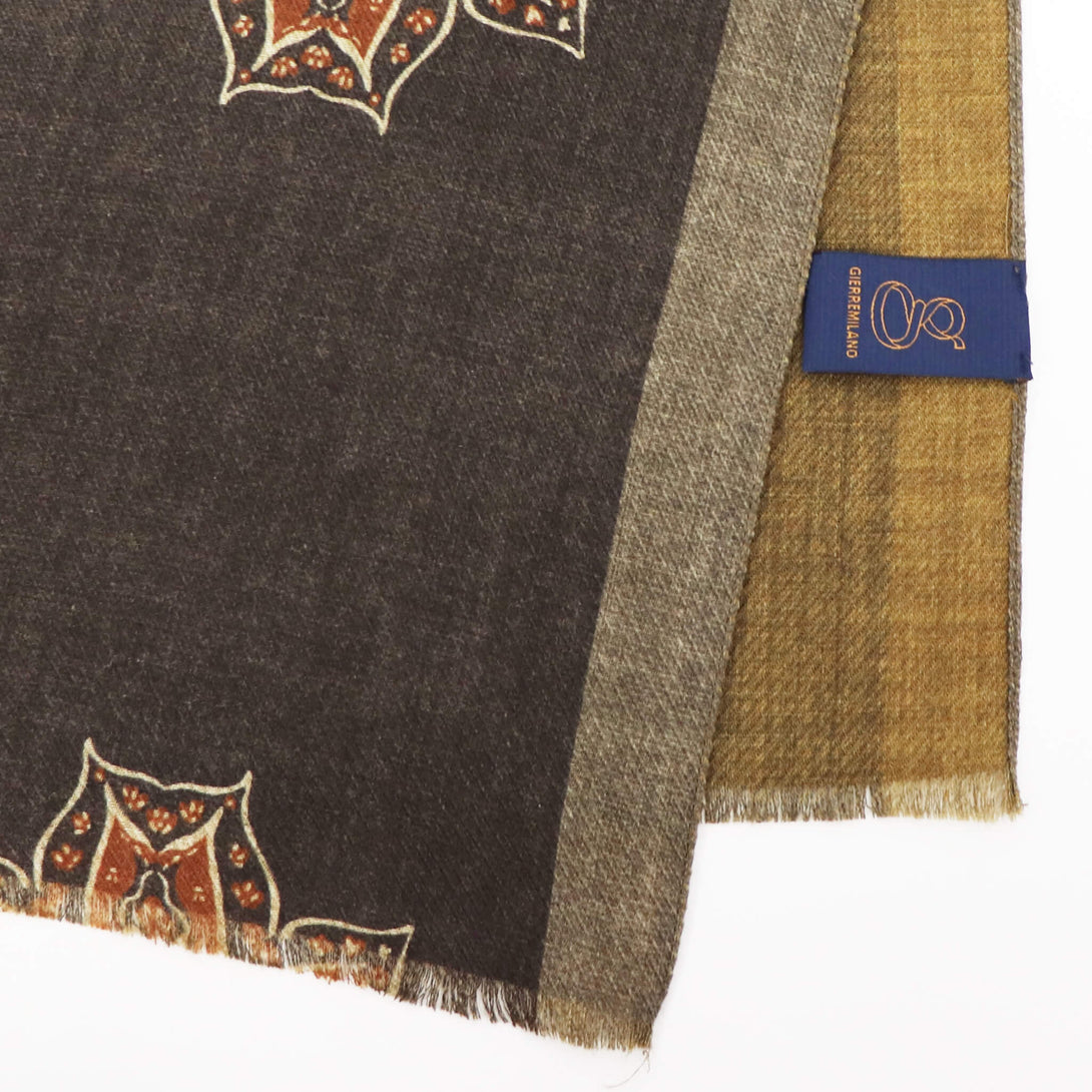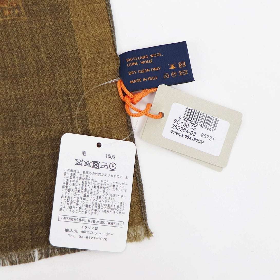 肌触りのいいイタリアメイドのウールストール。さらっとしていてなおかつ滑り感もあり、大判でありながらボリュームがですぎないので使い勝手が大変よくクラシックな柄がコーディネートに華を添えてくれます。
