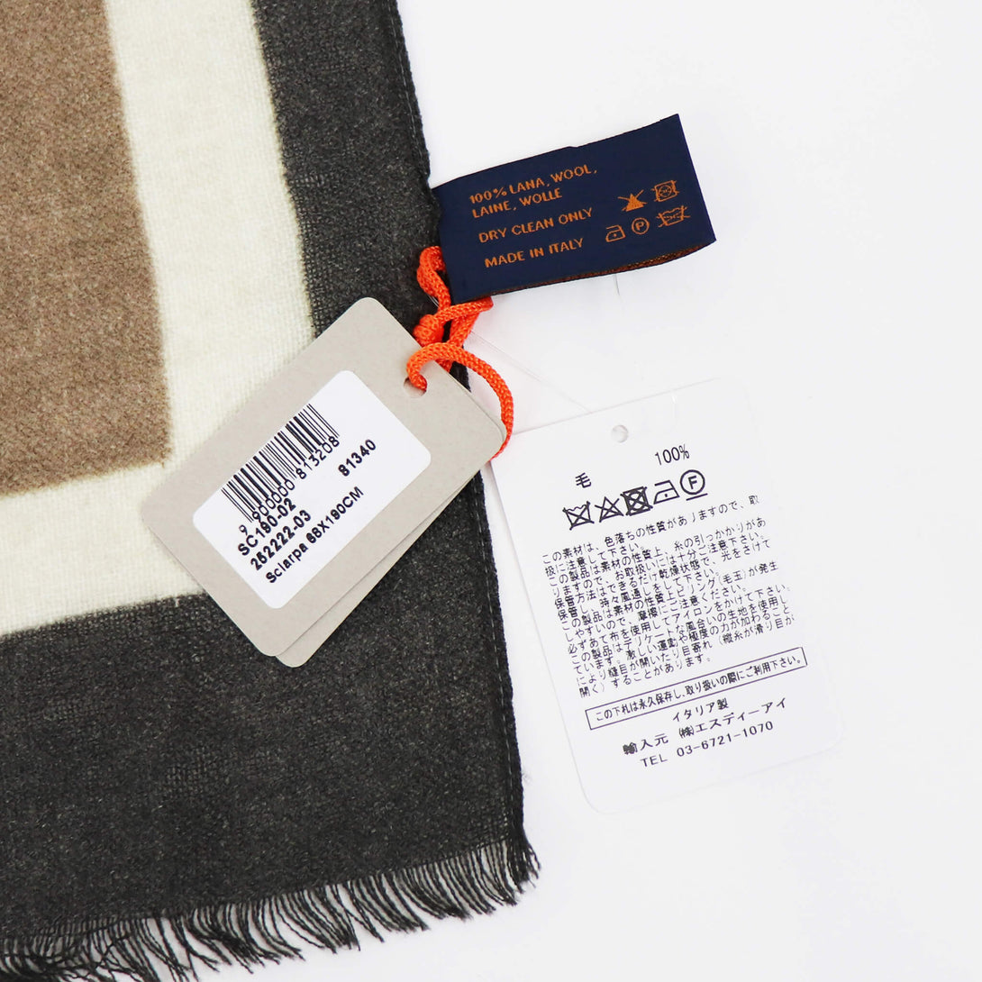 肌触りのいいイタリアメイドのウールストール。さらっとしていてなおかつ滑り感もあり、大判でありながらボリュームがですぎないので使い勝手が大変よくクラシックな柄がコーディネートに華を添えてくれます。