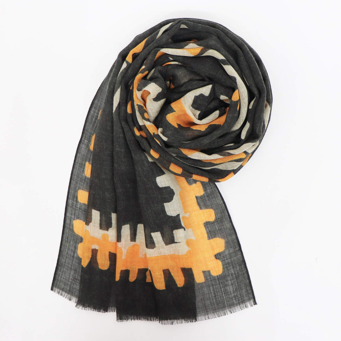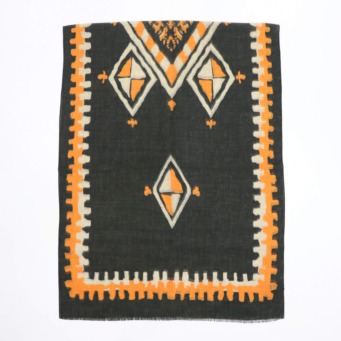 肌触りのいいイタリアメイドのウールストール。さらっとしていてなおかつ滑り感もあり、大判でありながらボリュームがですぎないので使い勝手が大変よくクラシックな柄がコーディネートに華を添えてくれます。