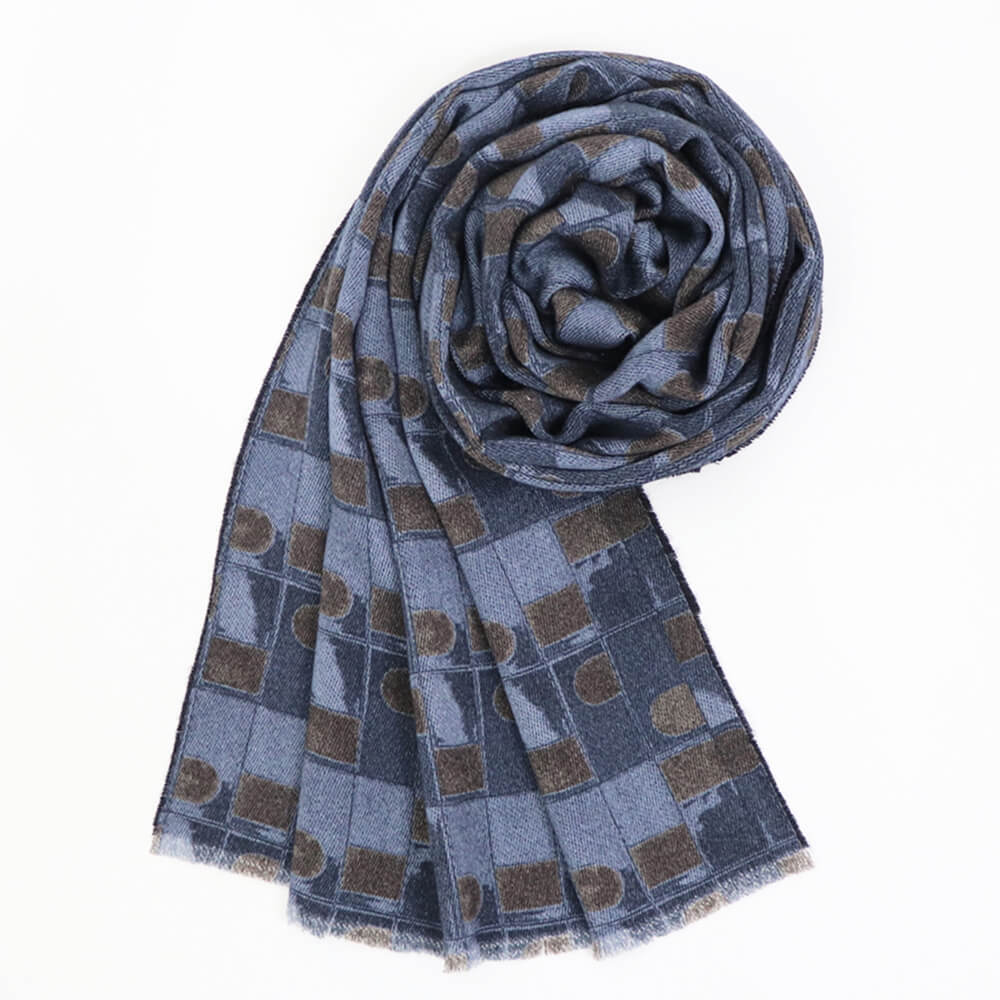 肌触りのいいイタリアメイドのウールマフラー、さらっとしていてなおかつ滑り感もあります。ボリュームのですぎないサイズ感であわせやすく、表側はクラシカルな柄に裏地は無地になっているので無地の面を表にして少しだけ柄を出すなど、コーディネートの幅が広がります。