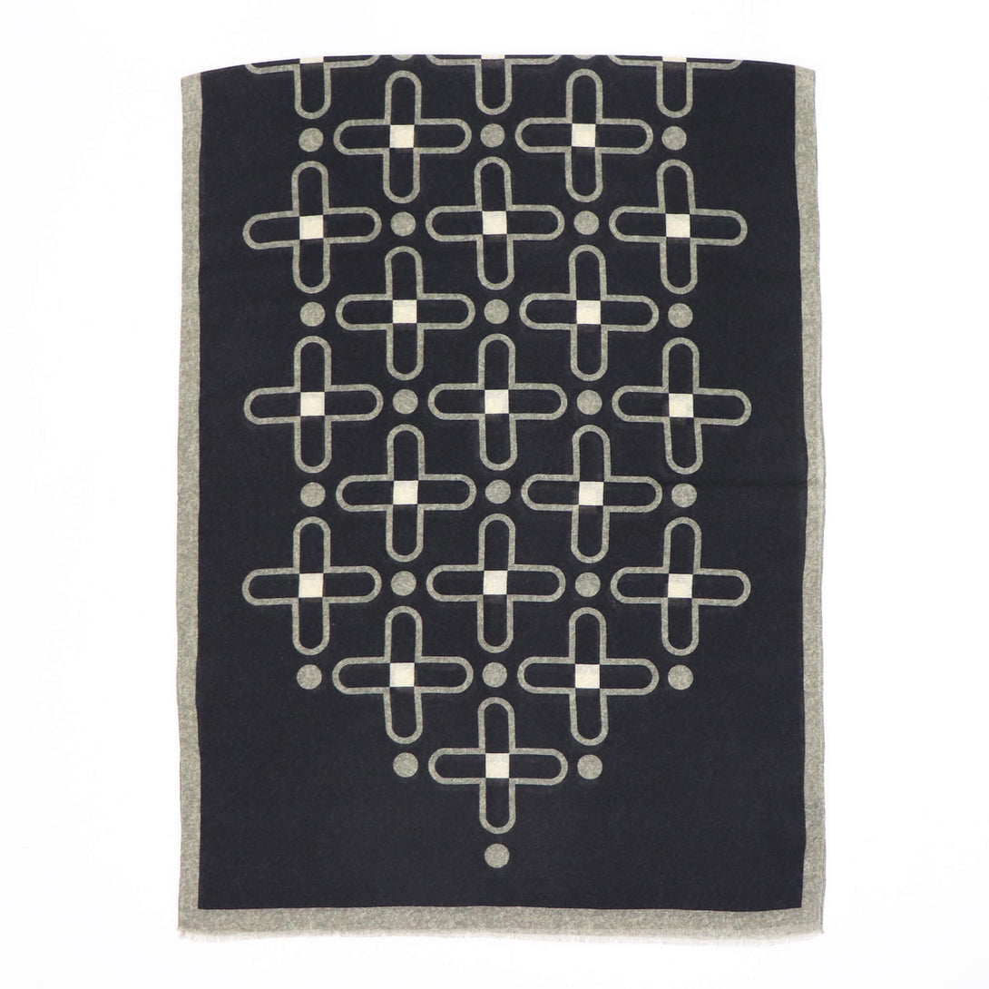 肌触りのいいイタリアメイドのウールストール。さらっとしていてなおかつ滑り感もあり、大判でありながらボリュームがですぎないので使い勝手が大変よくクラシックな柄がコーディネートに華を添えてくれます。
