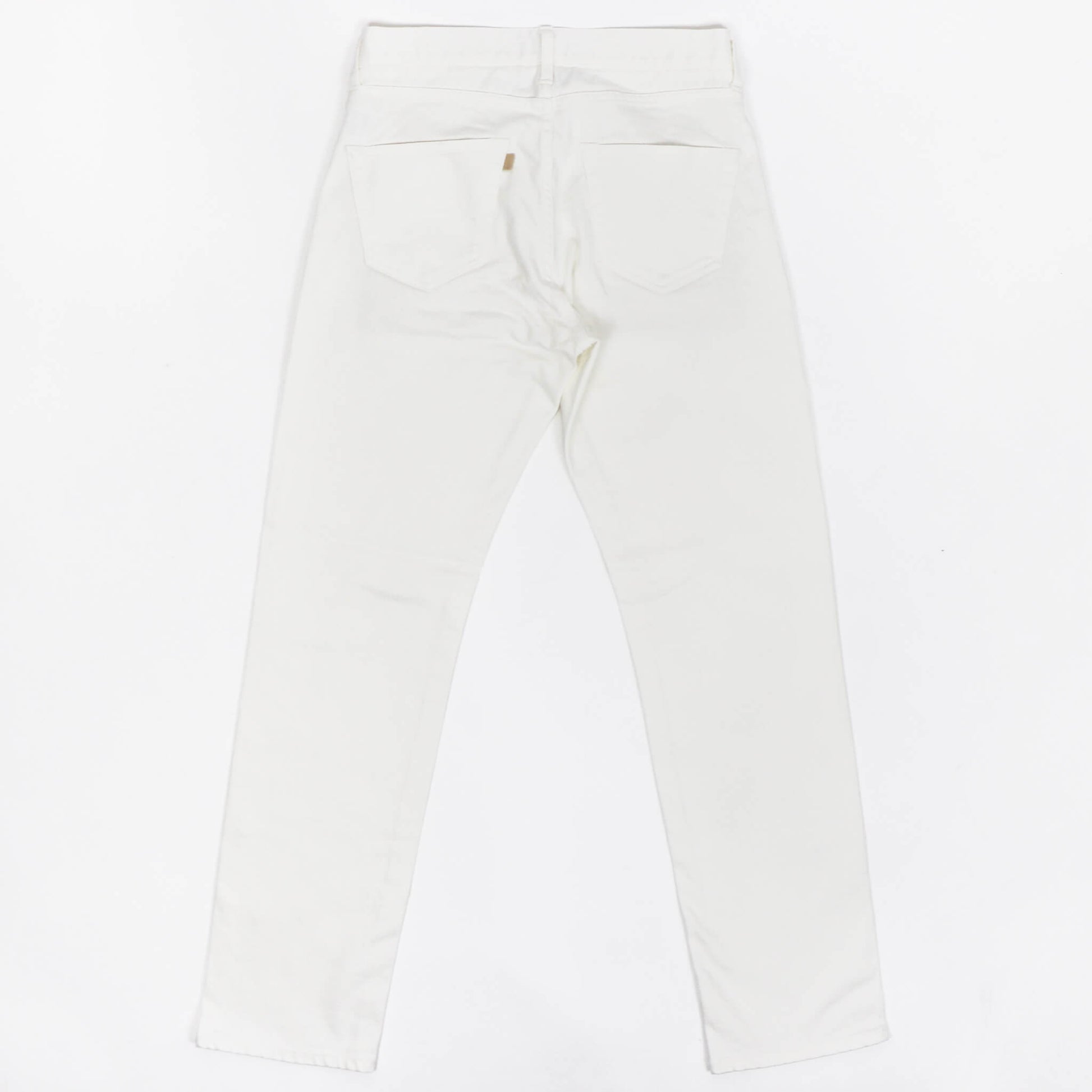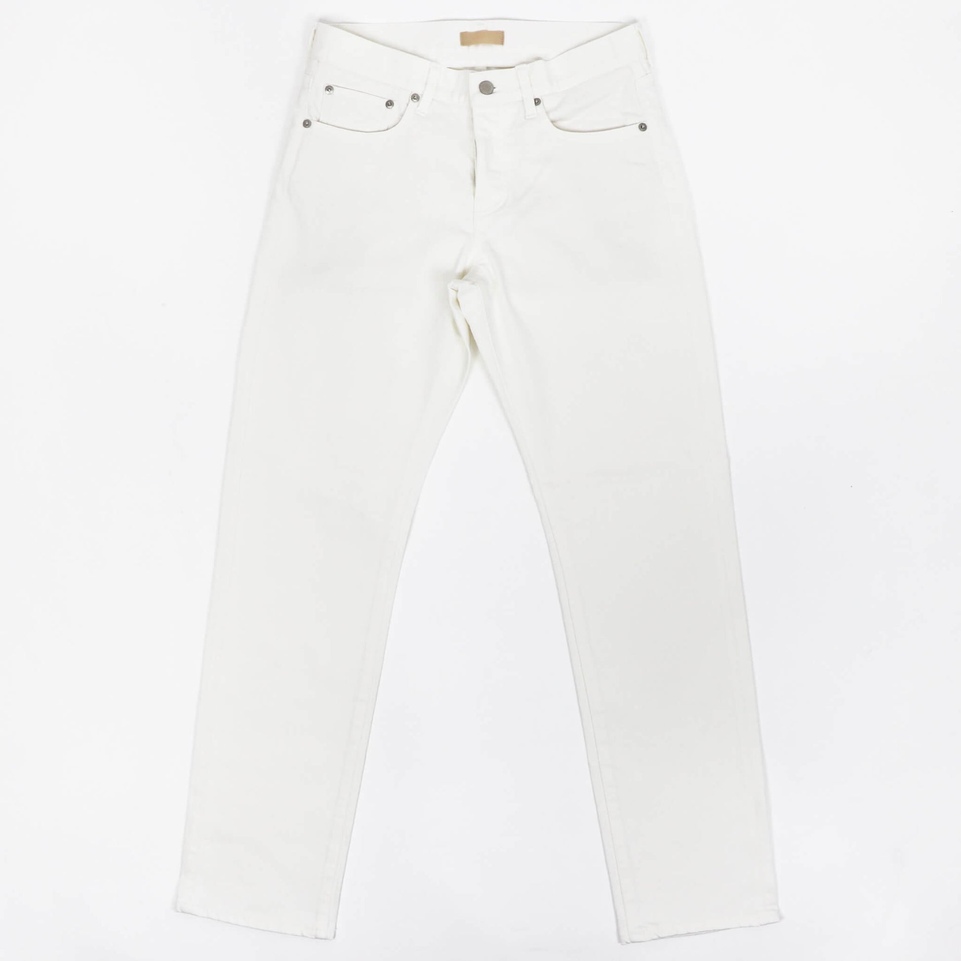 シルエットは緩やかなテーパードではありますが裾幅をあまり細くせずストレート寄りの見え方にこだわりました。股上は後ろを深く取り優しくヒップを包み込むようにし、履き心地の良さはもちろん脚長効果抜群です。前側はそこまで深くせず絶えずパンツを上げる動作をしなくても定位置に収まるような設計になっています。リベットもクリーンな印象のYKKを使用。革パッチも省き極力プライスがあがらないようにいたしました。