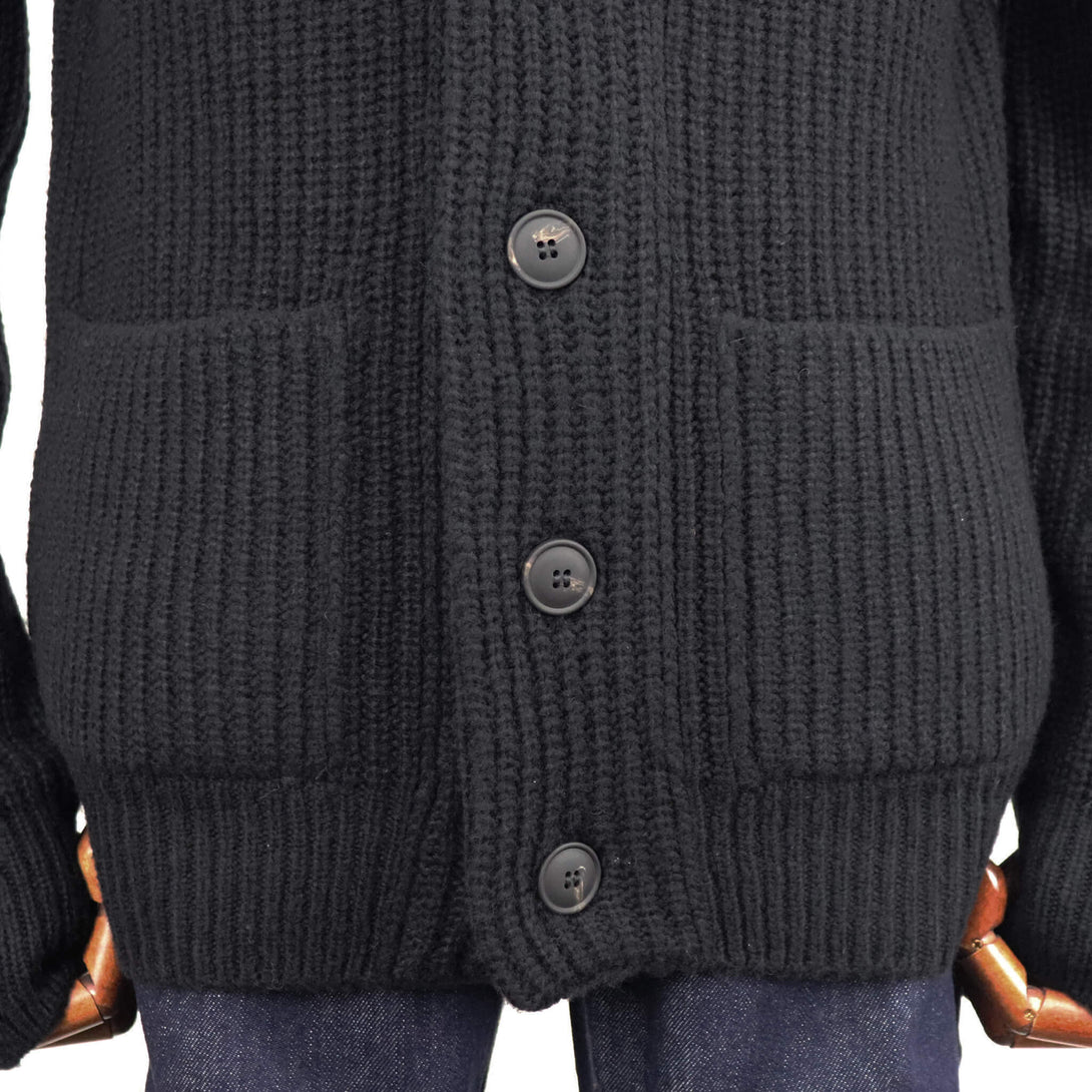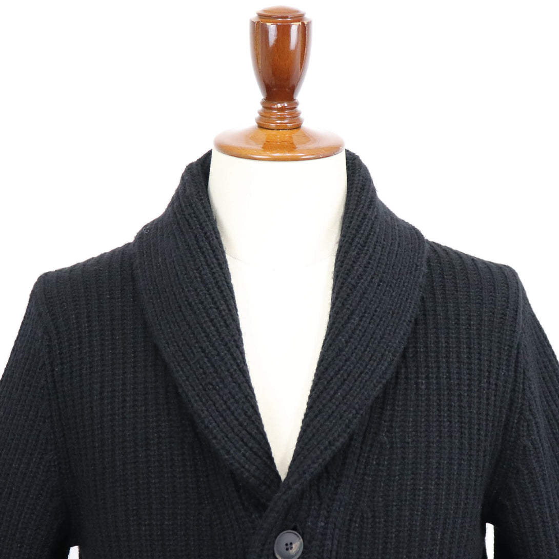 GRAN SASSO(グランサッソより、ジャケット感覚で羽織れるカーディガンが届きました。程よい肉感ニットで、Tシャツやシャツはもちろん、ハイゲージのニットの上か羽織ったりとコーディネとの幅は広く、シーズン通して長く使えるアイテムではないでしょうか。本格的な寒さの時は、上から、ダウンベストや、コートを合わせる着こなしもお楽しみいただけます。肉感のあるニットですが、素材はバージンウールとナイロン(ポリアミド)の混紡。バージンウールは、今までに一度も毛を刈ったことがない子羊から採る最初のウールで、羊の一生で一度しか採れない貴重な素材。毛羽感のあるふんわりとした風合いでありながら、ウール特有のチクチクもほとんど感じない肌触りです。軽量で摩擦に強いナイロンが30%混ざっているので、一般的なローゲージのカーディガンより軽く、耐久性があるのもいいですね。シンプルなブラックで、大人の着こなしを楽しんでみてはいかがでしょうか?!