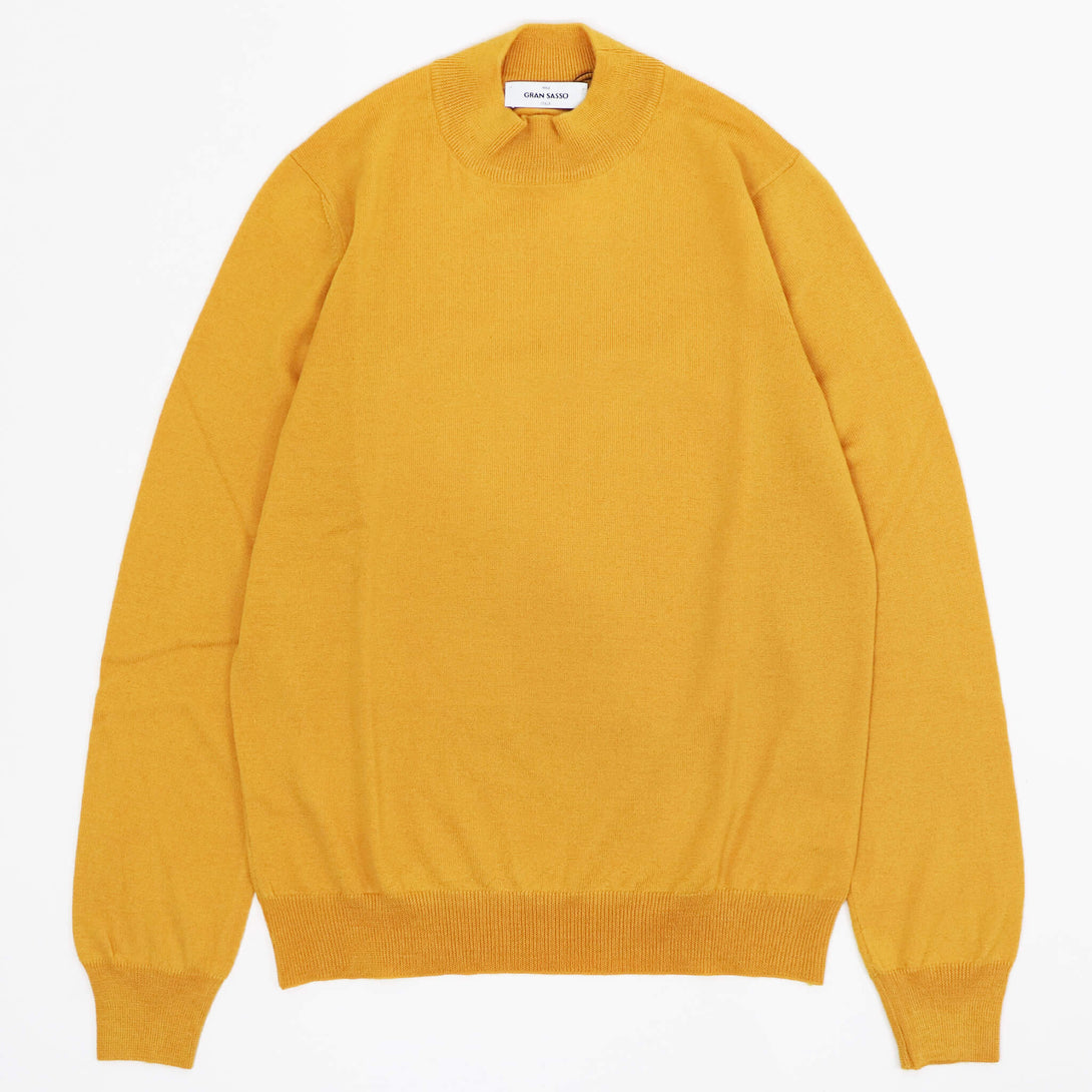 今季も、GRAN SASSO(グランサッソ)より12ゲージモックネックニットがイタリアより届きました。素材はメリノウール100%で、秋冬の定番素材となります。秋冬には欠かせない、長袖モックネック。滑らかな肌触りや優れた保温性で、デザインは非常にシンプル。名脇役といったところでしょうか。秋が深まる頃から、ジャケットやアウターのインナーに最も最適なアイテムで、季節感を表現するにはピッタリな一枚。袖はリブ仕様で、裾もリブ仕様。インナーとしては一番使い勝手のいいタイプのアイテムです。