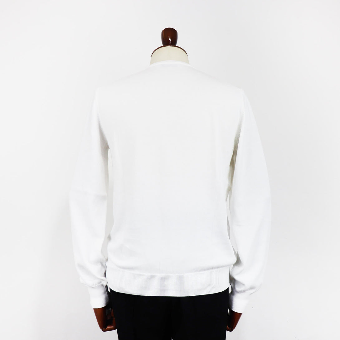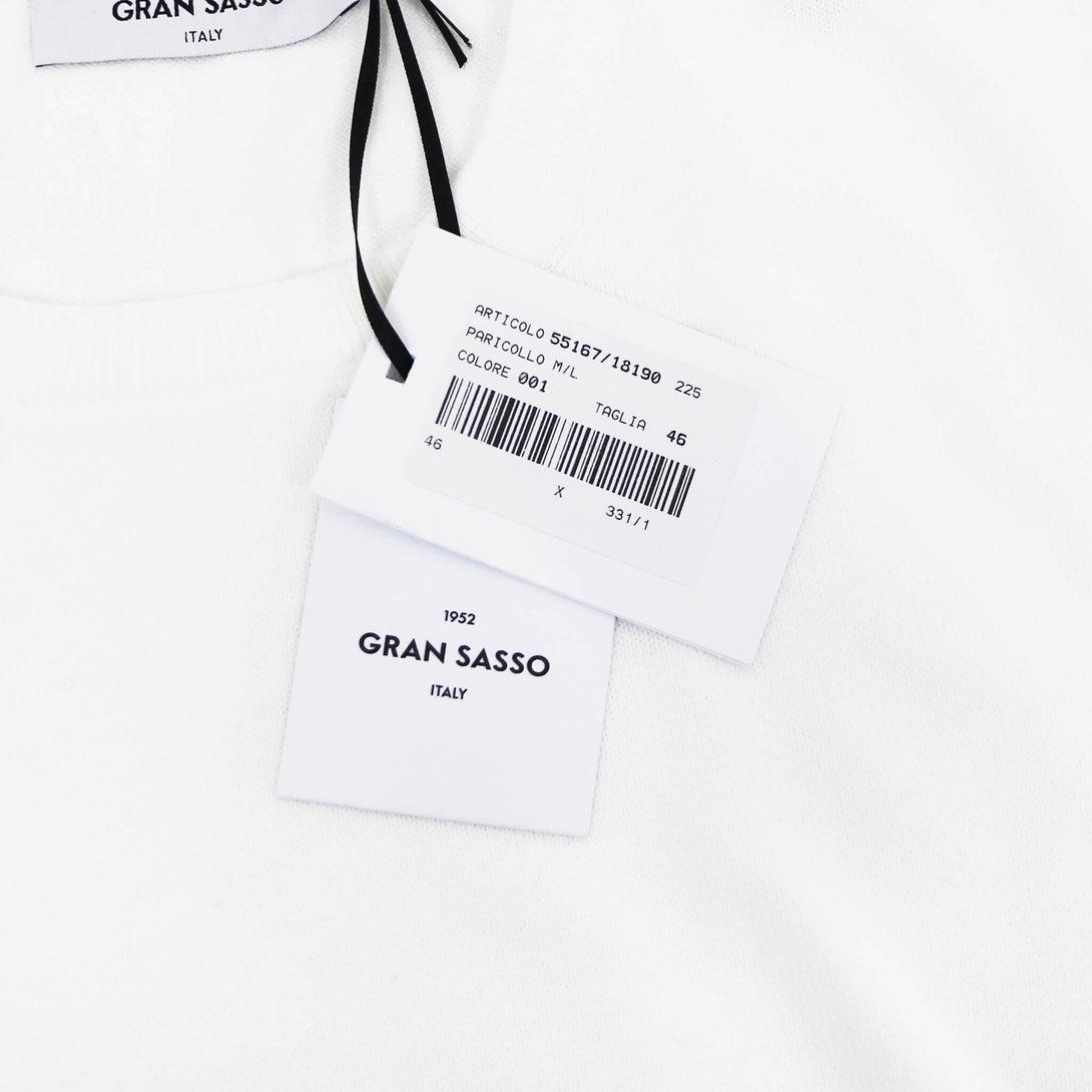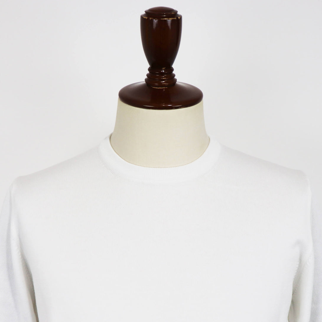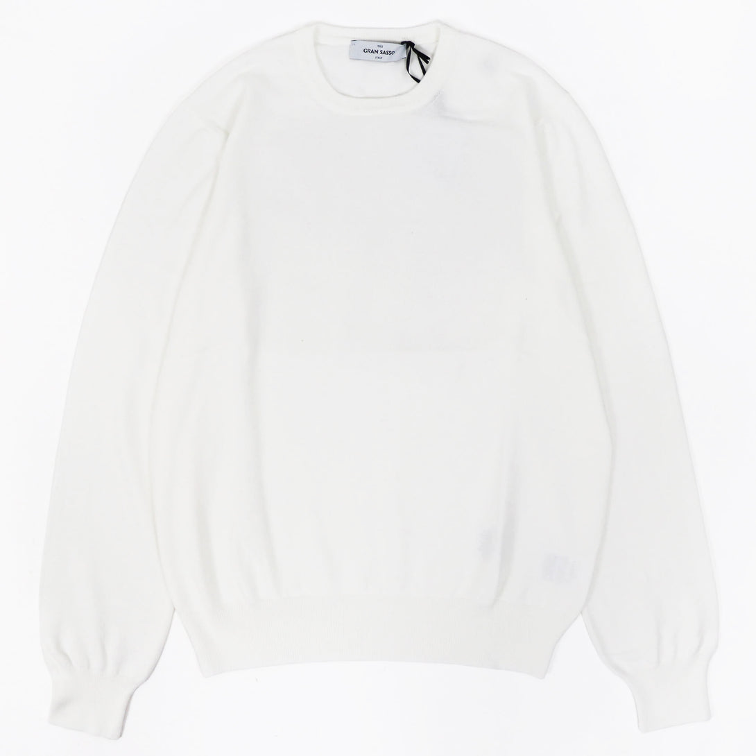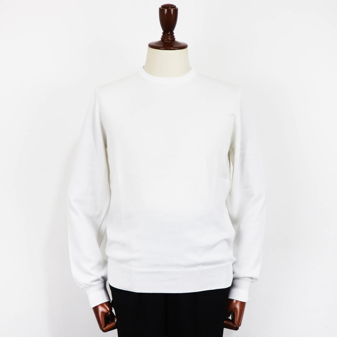今季も、GRAN SASSO(グランサッソ)より12ゲージ クルーネックコットンニットがイタリアより届きました。素材はコットン100%。通称"ニットT"と呼ばれるグランサッソでは定番素材となります。秋冬には欠かせない、長袖クルーネック。デザインは非常にシンプルで、上品に見えるカットソーといった雰囲気です。秋の立ち上がりから、ジャケットやアウターのインナーに最も最適なアイテムで、長袖となりますので、夏以外の3シーズンで着用可能です。袖と裾はリブ仕様で、品良くまとまりますので、何枚あっても困らない名作です。